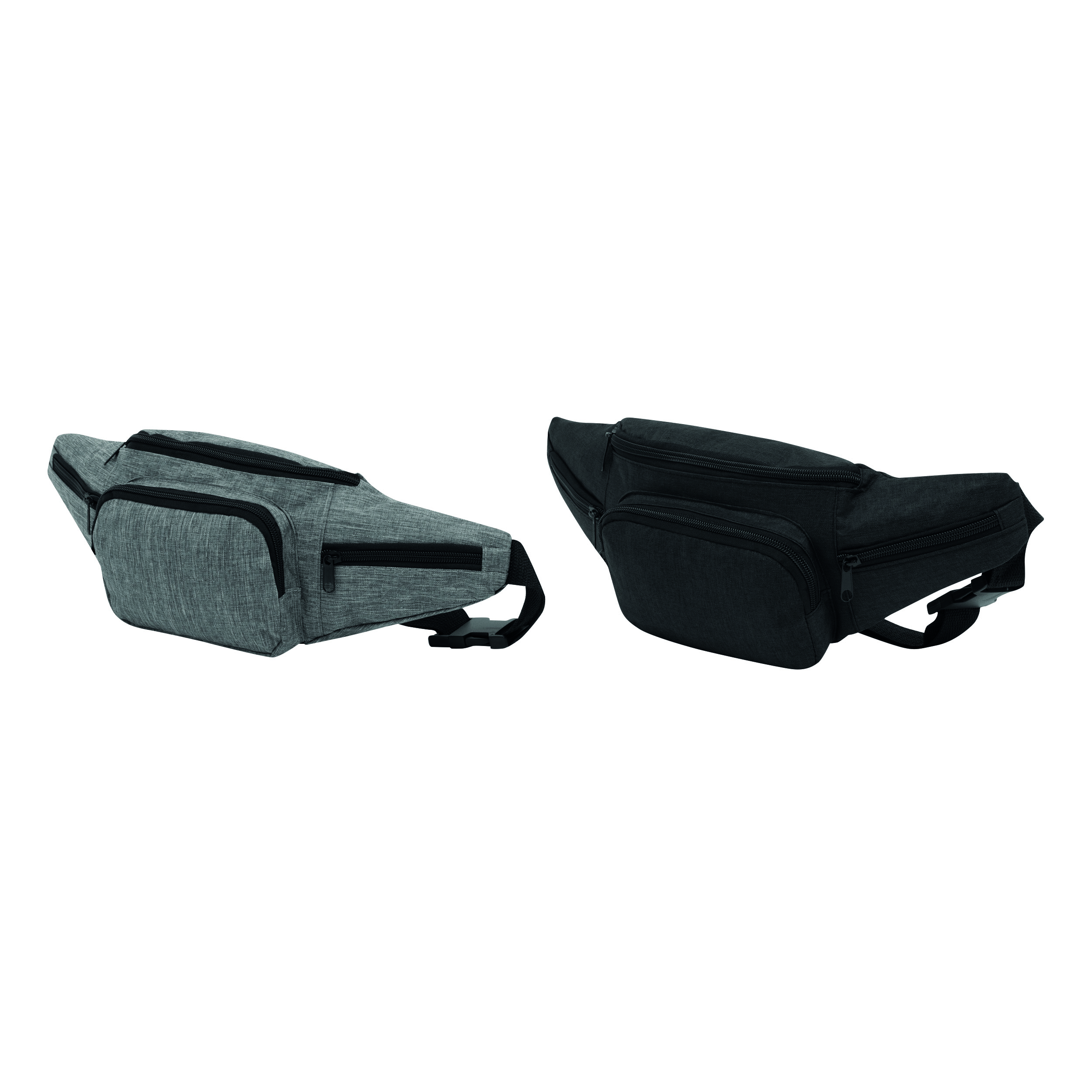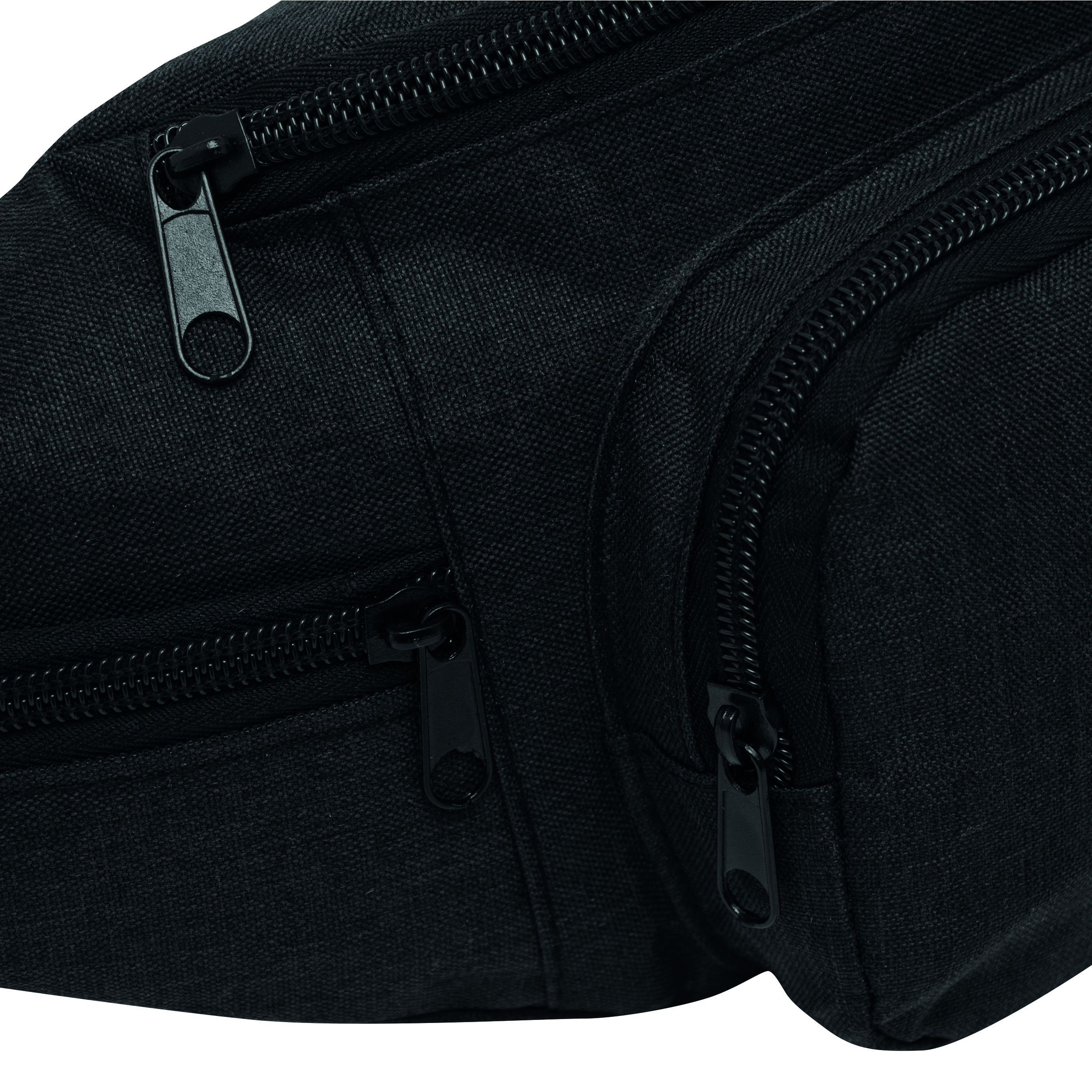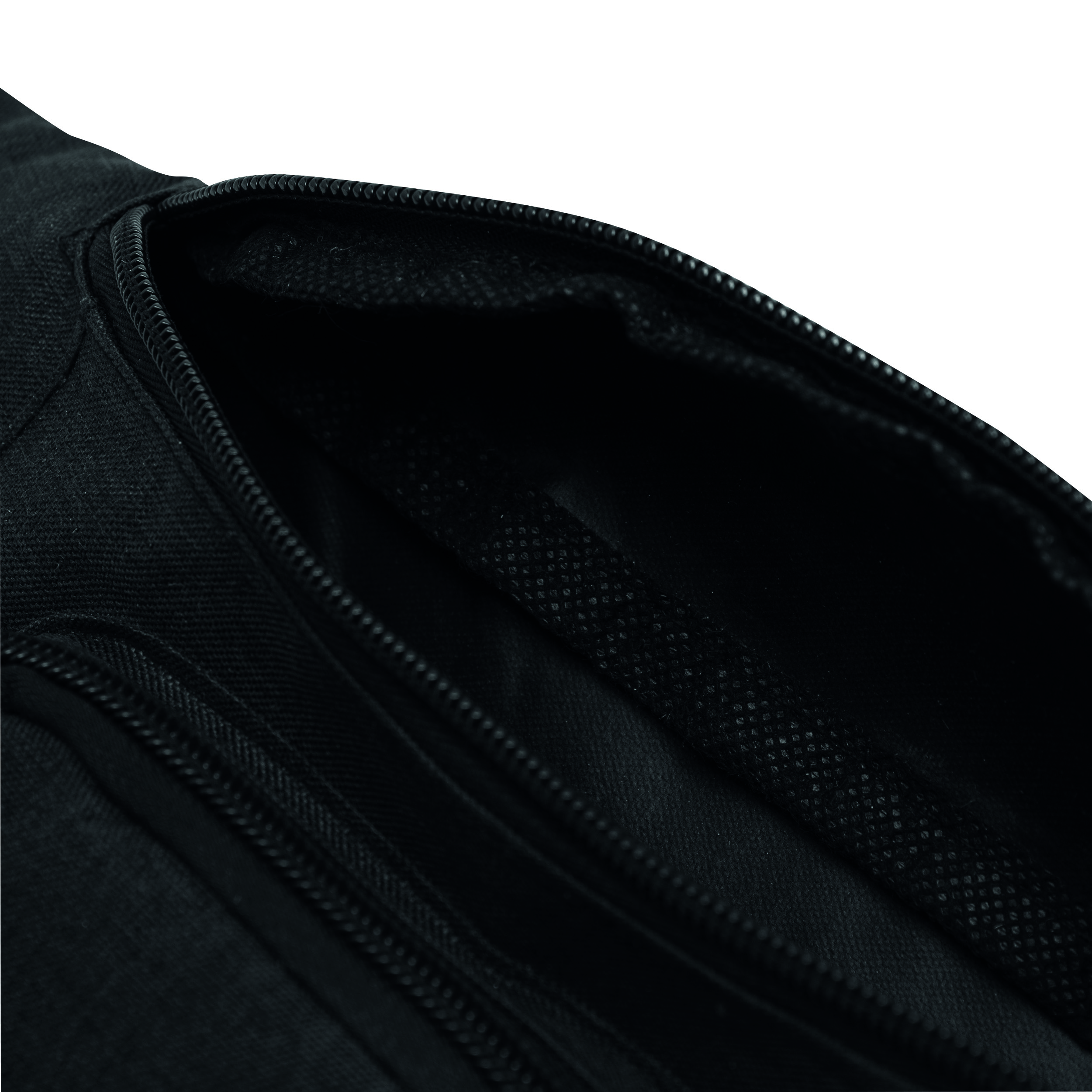 Nerka QUAD z przestronną komorą główną, kieszenią przednią oraz 2 kieszonkami bocznymi zapinanymi na zamek błyskawiczny. Regulowany pasek z klamrą.