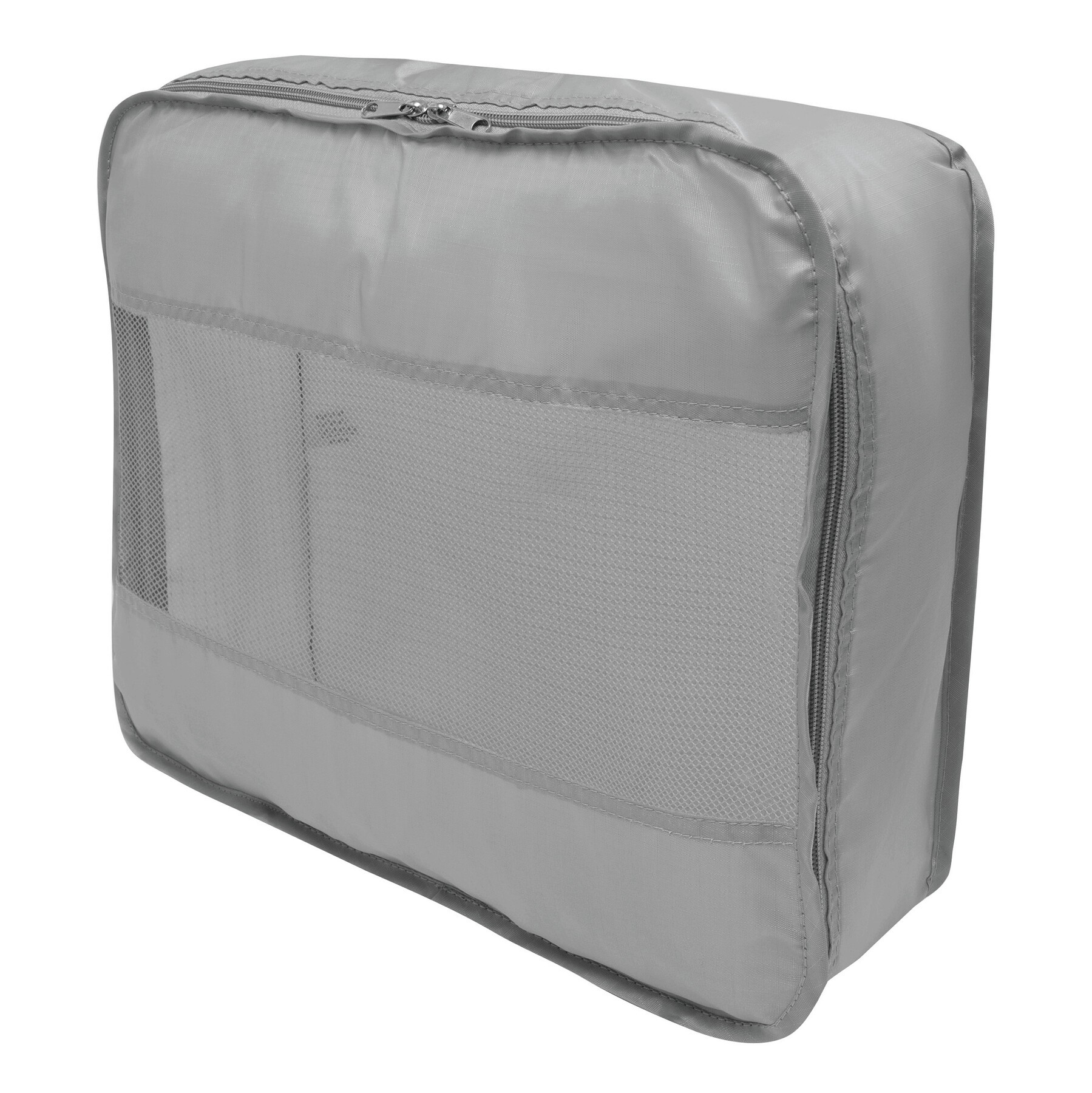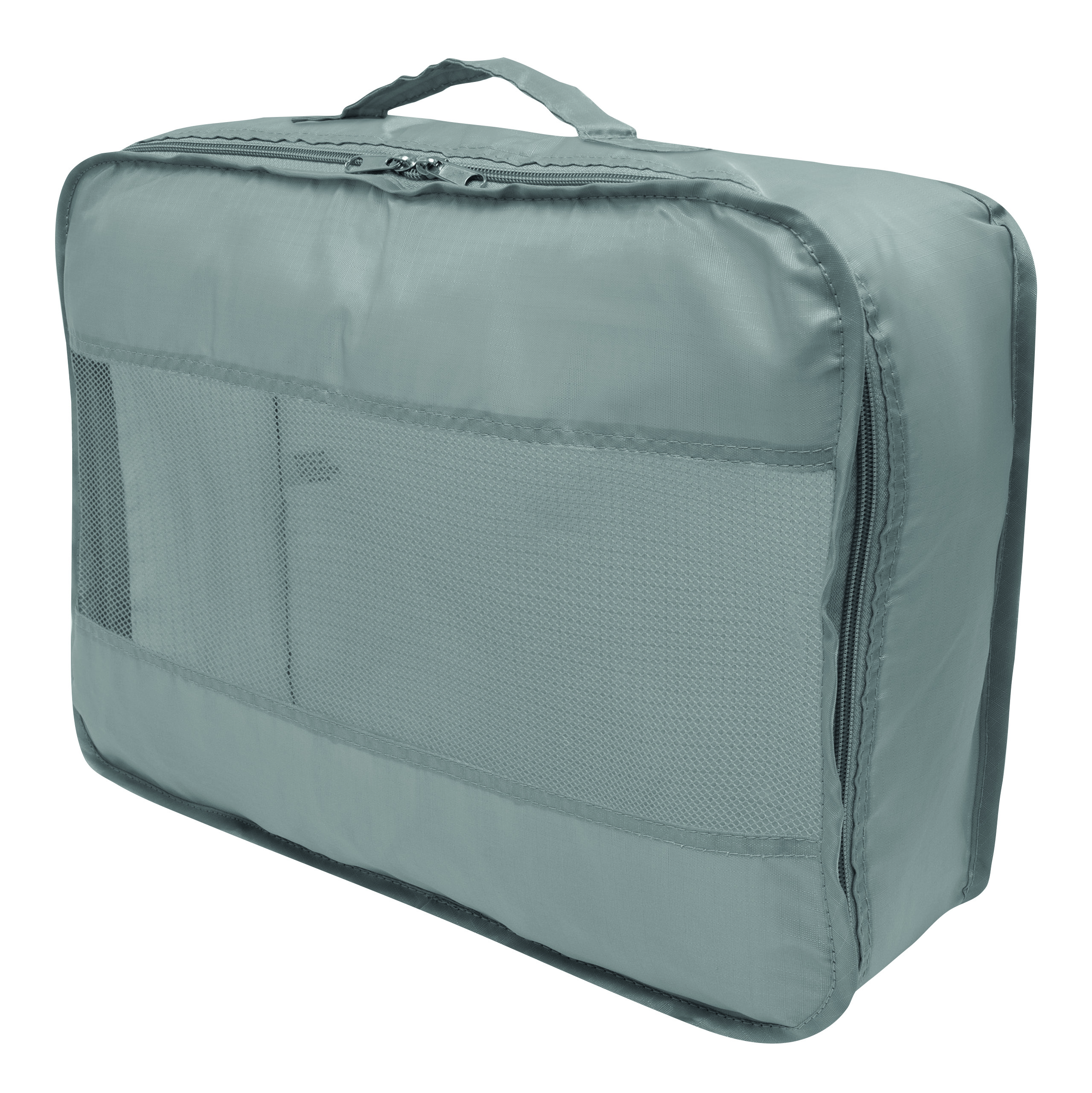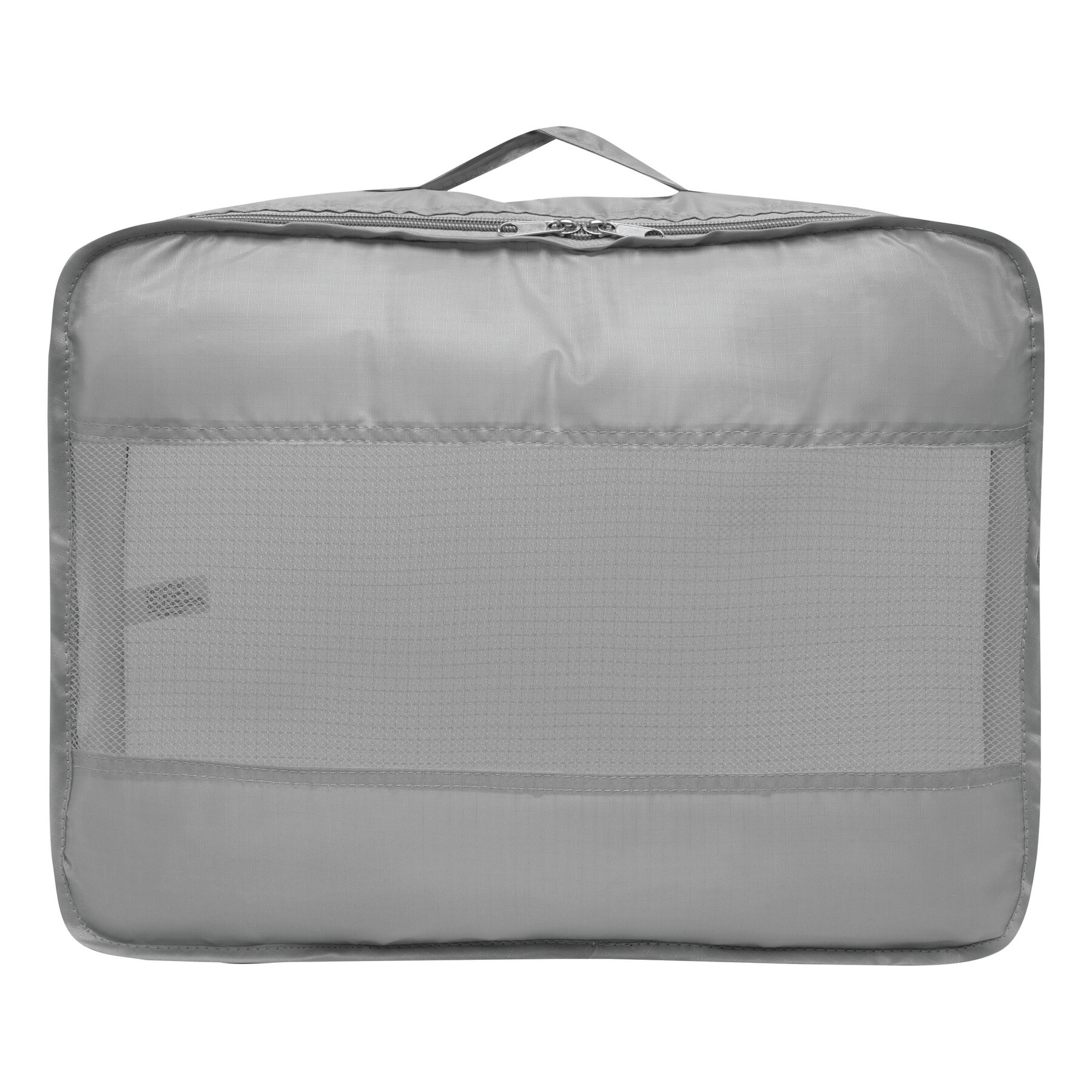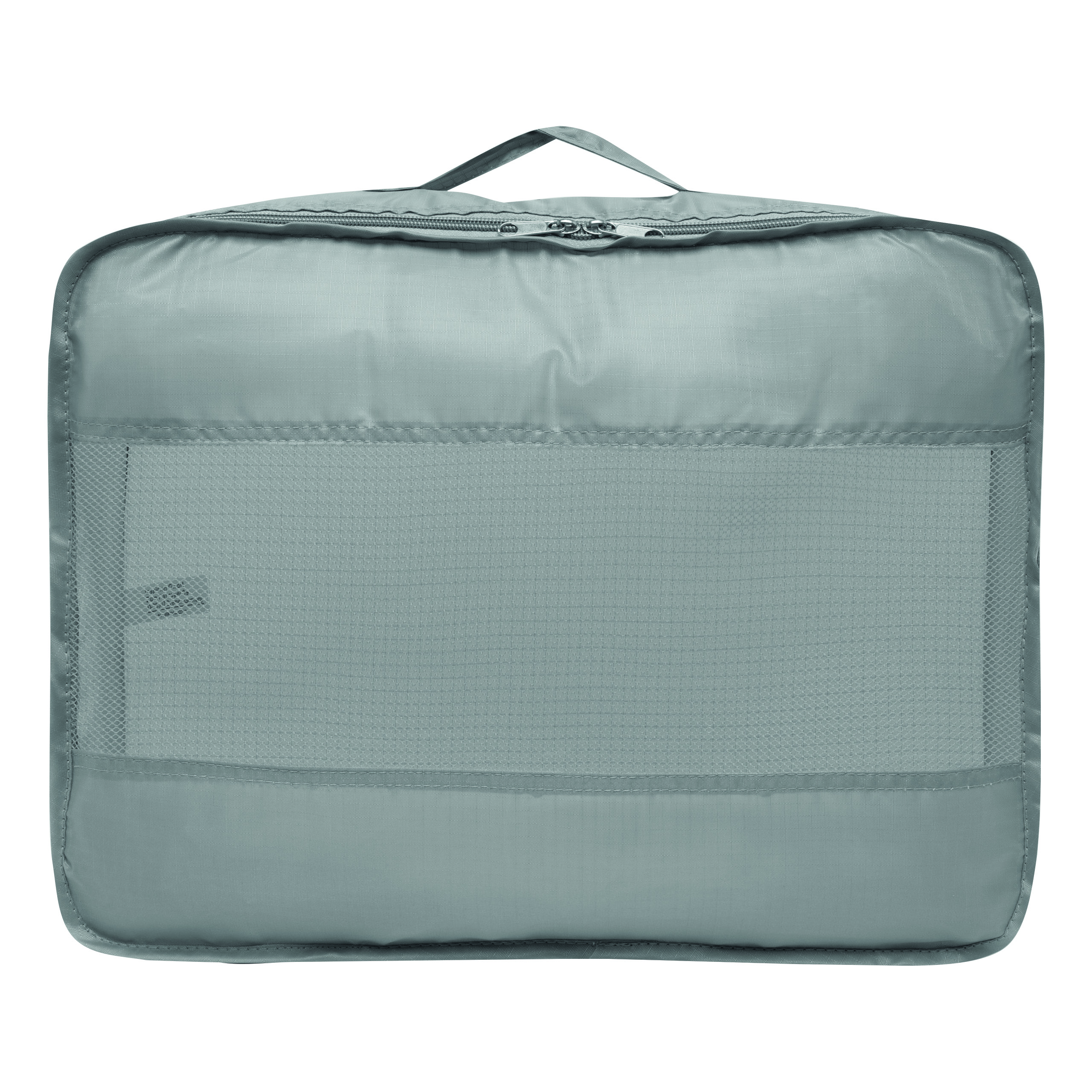 Zestaw podróżny TRAVEL ATTENDANT składający się z 3 elementów. Dwa pojemniki na ubrania w różnych rozmiarach, z siateczkowymi okienkami do wentylacji i prezentacji zawartości, z podwójnym zamkiem, z rączką do przenoszenia przy większym pojemniku. Worek na buty ze ściągaczem dla zachowania czystości w walizce.