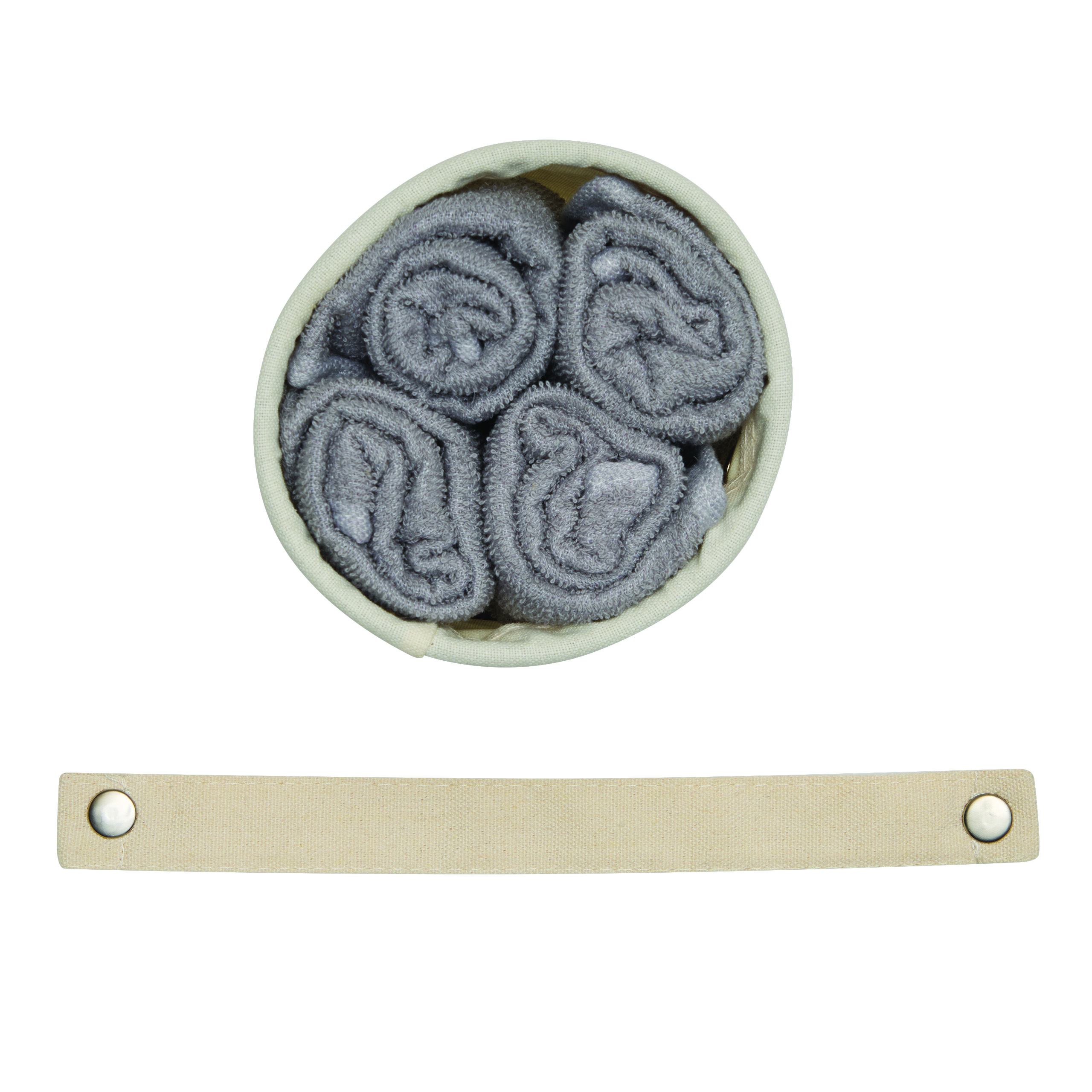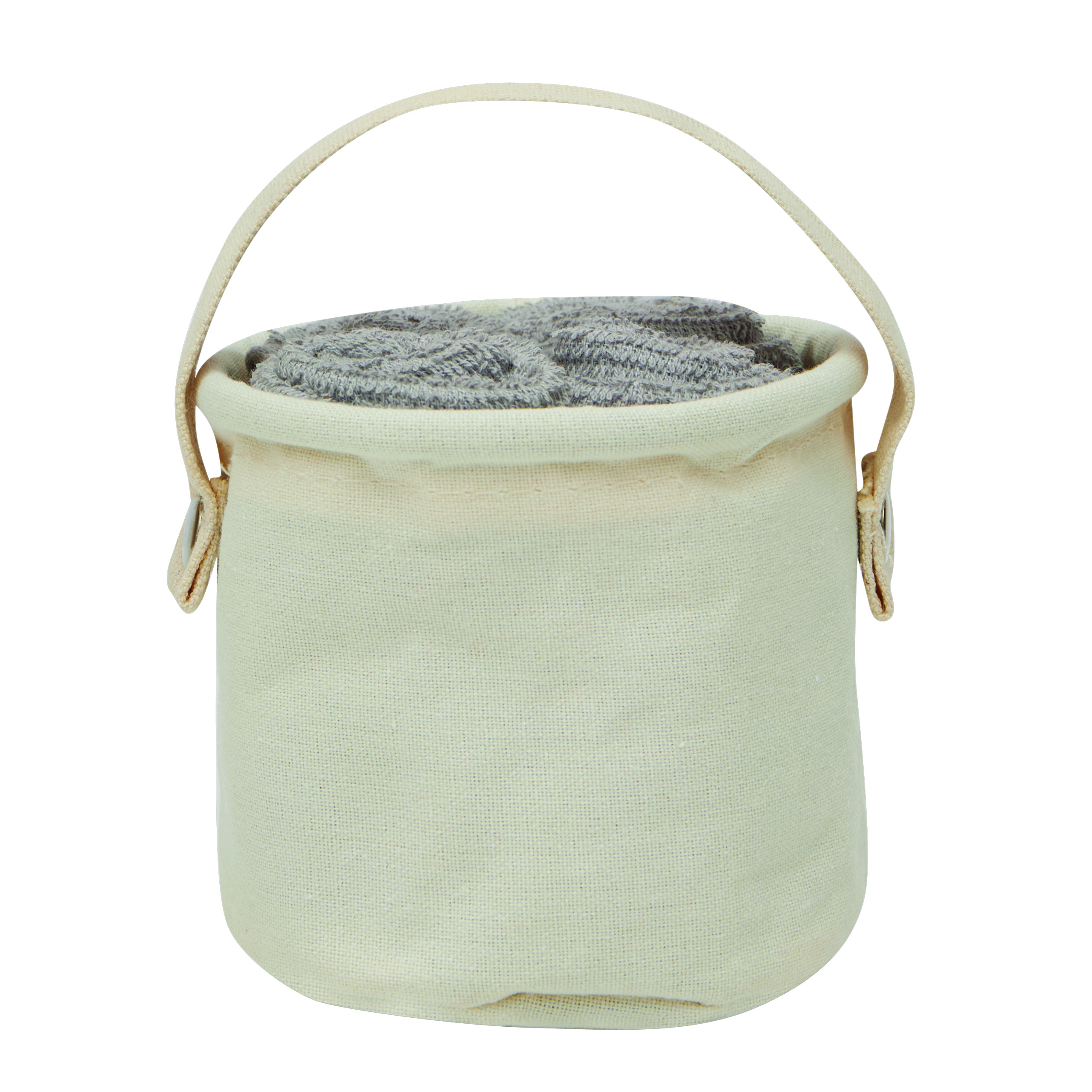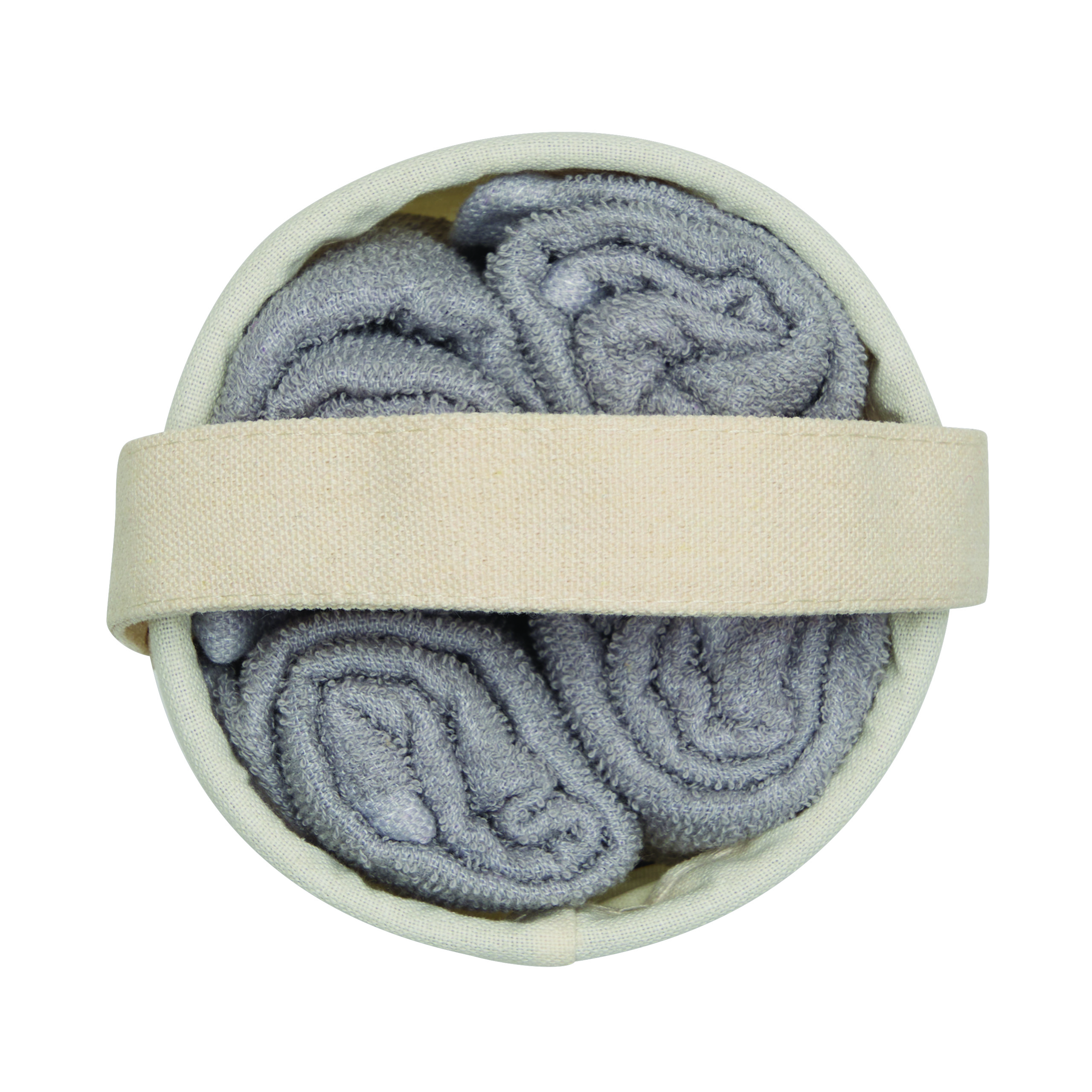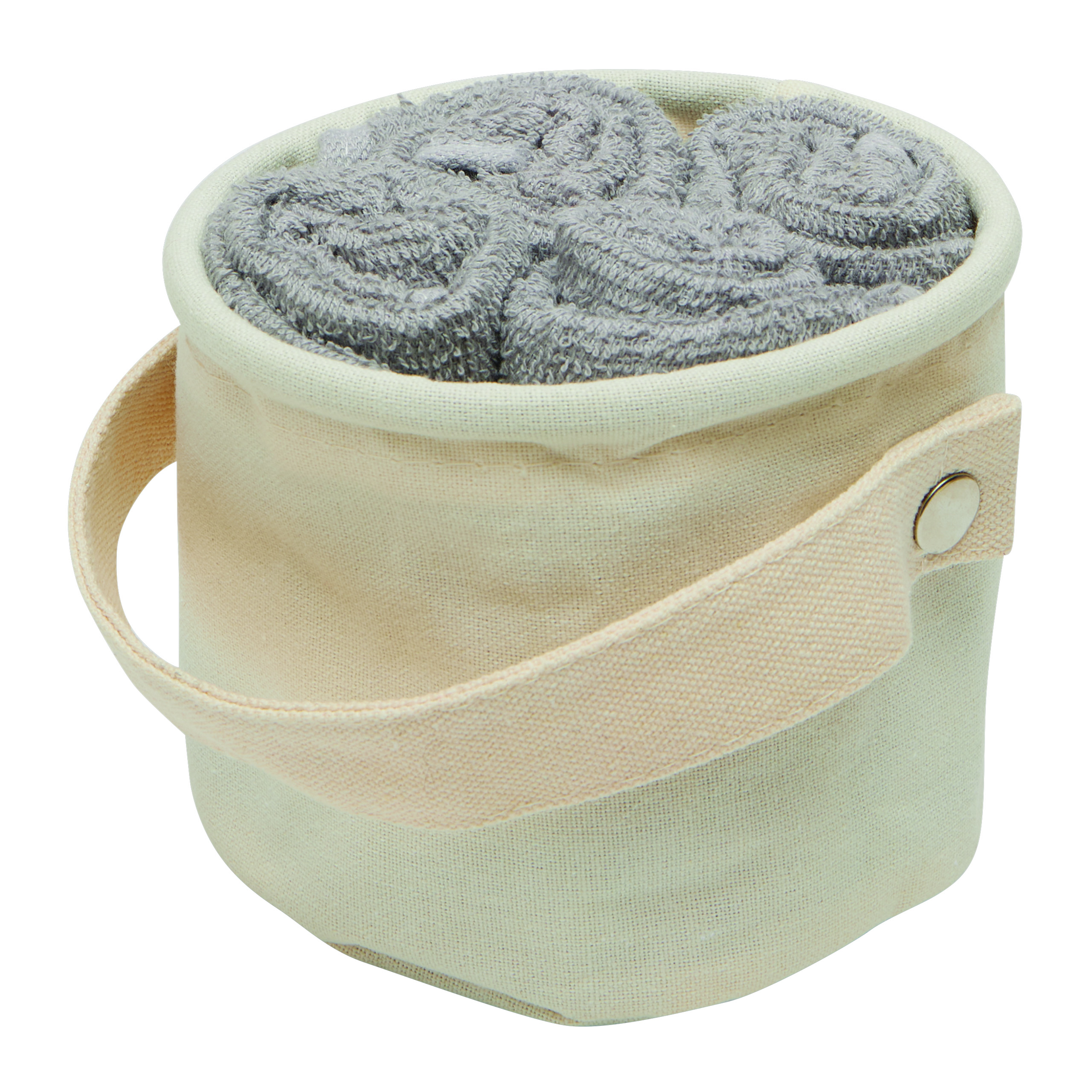 Zestaw ręczników DRY OFF, 5 elementów. Bardzo chłonne i szybko schnące, miękkie i puszyste, w dopasowanym koszu z odpinanym uchwytem do przenoszenia.
