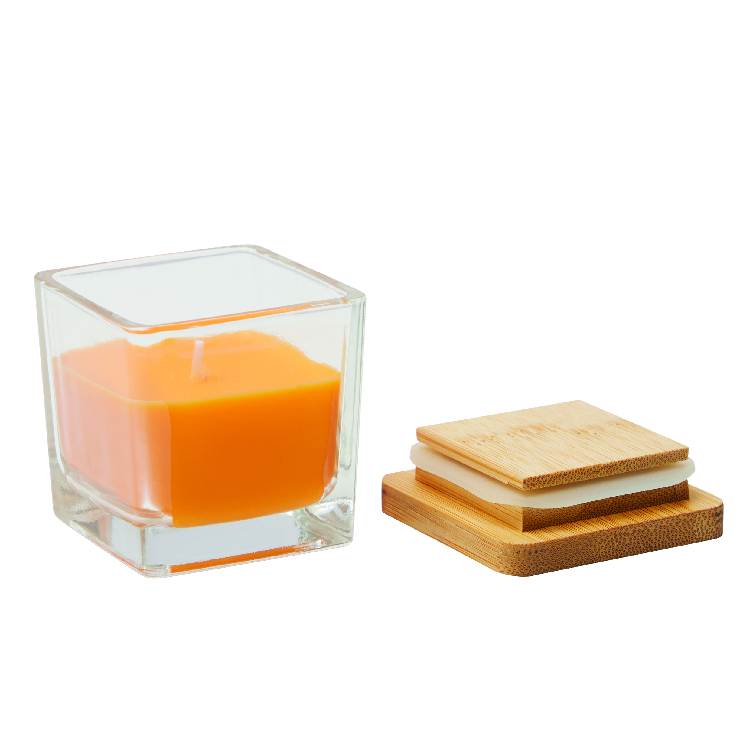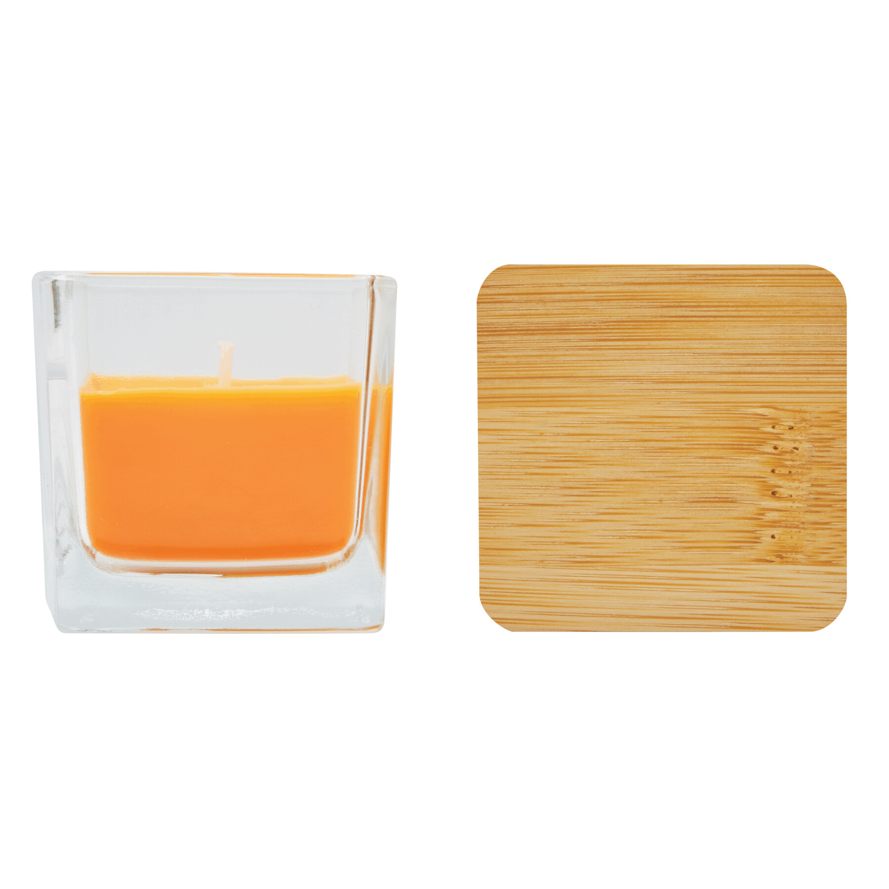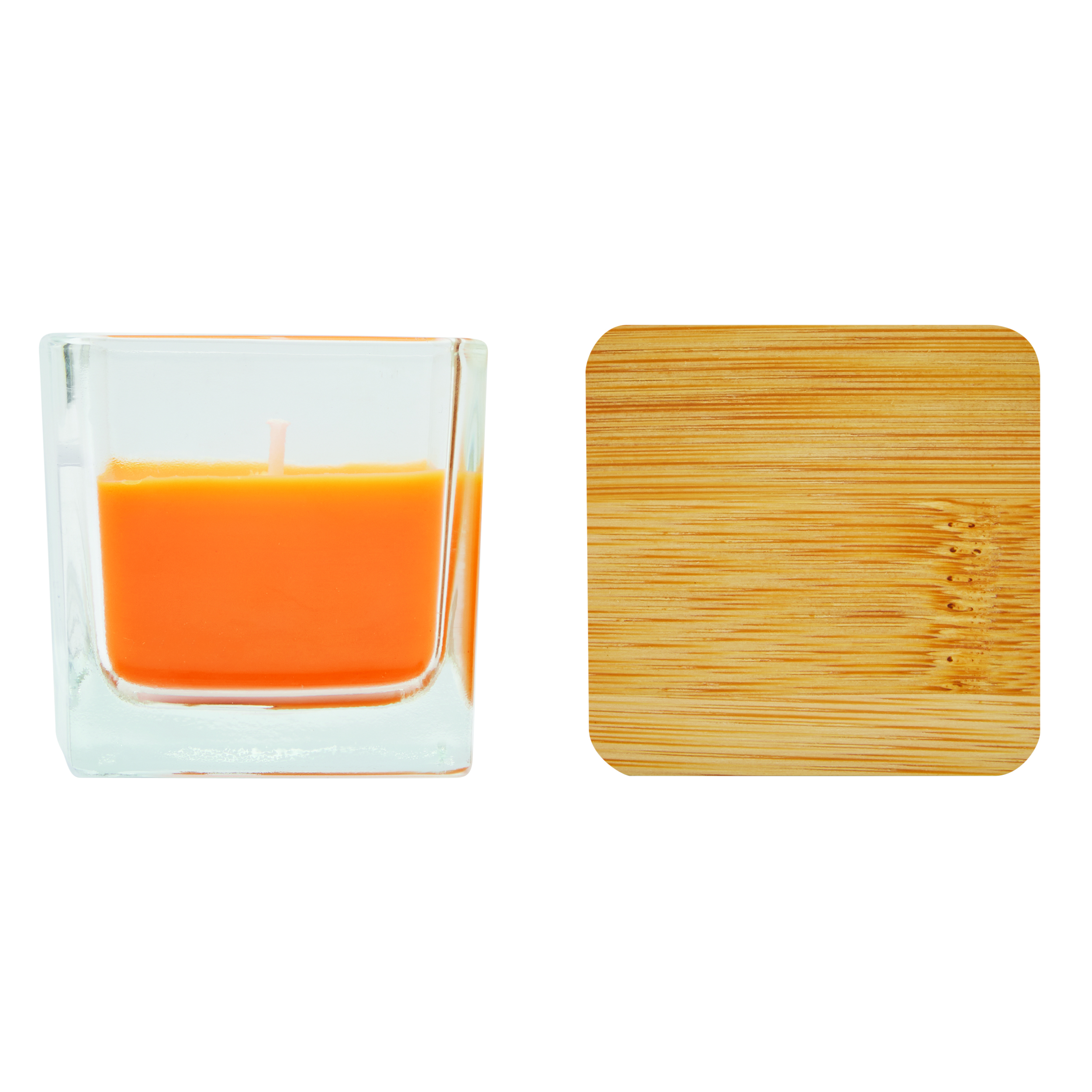 Świeczka zapachowa GLOW w szklanym kwadratowym naczyniu. Kolorowy wosk ma zapach wanilii. Posiada bambusową pokrywkę z silikonowym pierścieniem uszczelniającym. Czas palenia się świeczki to ok. 8 godzin.