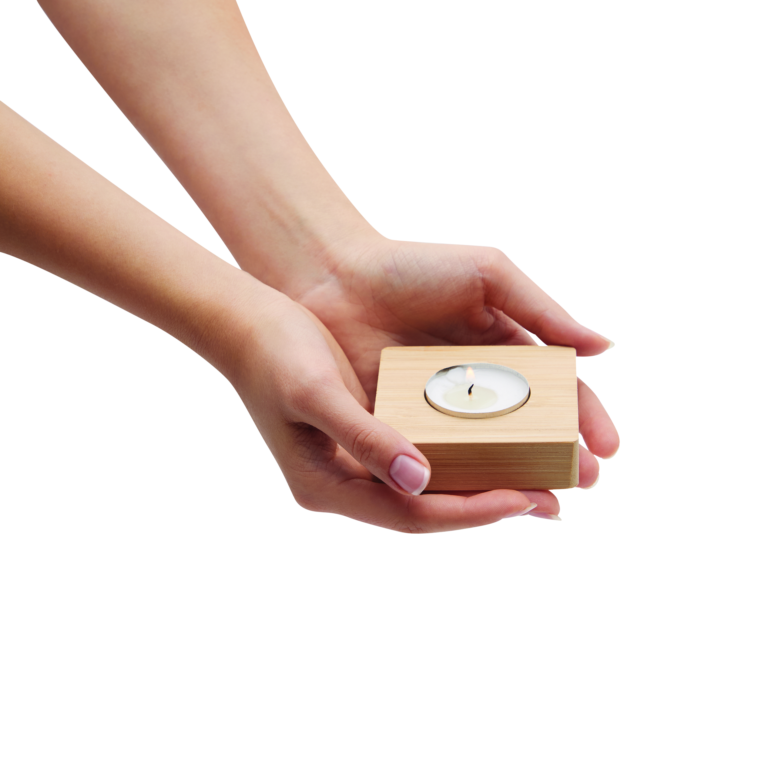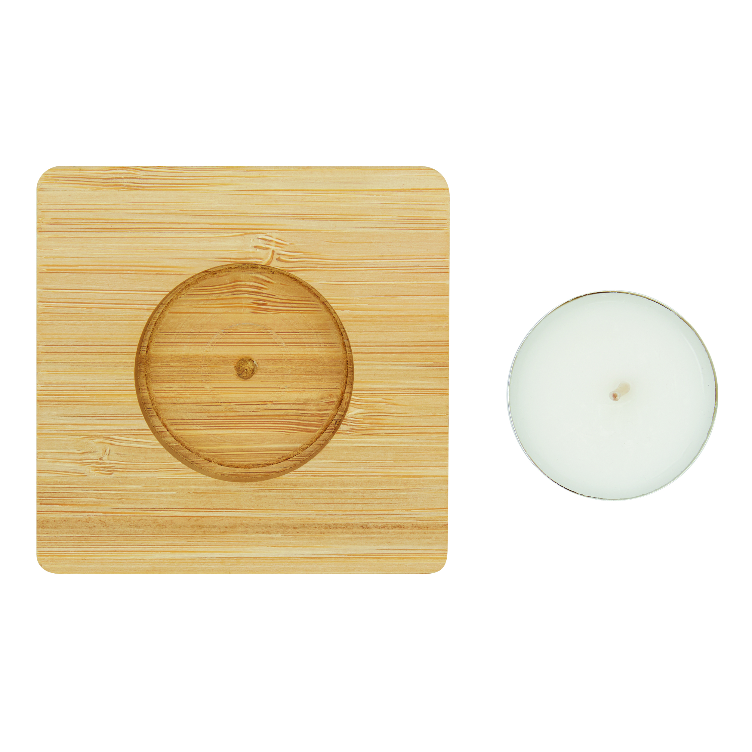 Podstawka na tealight NATURAL GLOW: kwadratowa podstawka bambusowa. W zestawie zawiera 1 tealight.