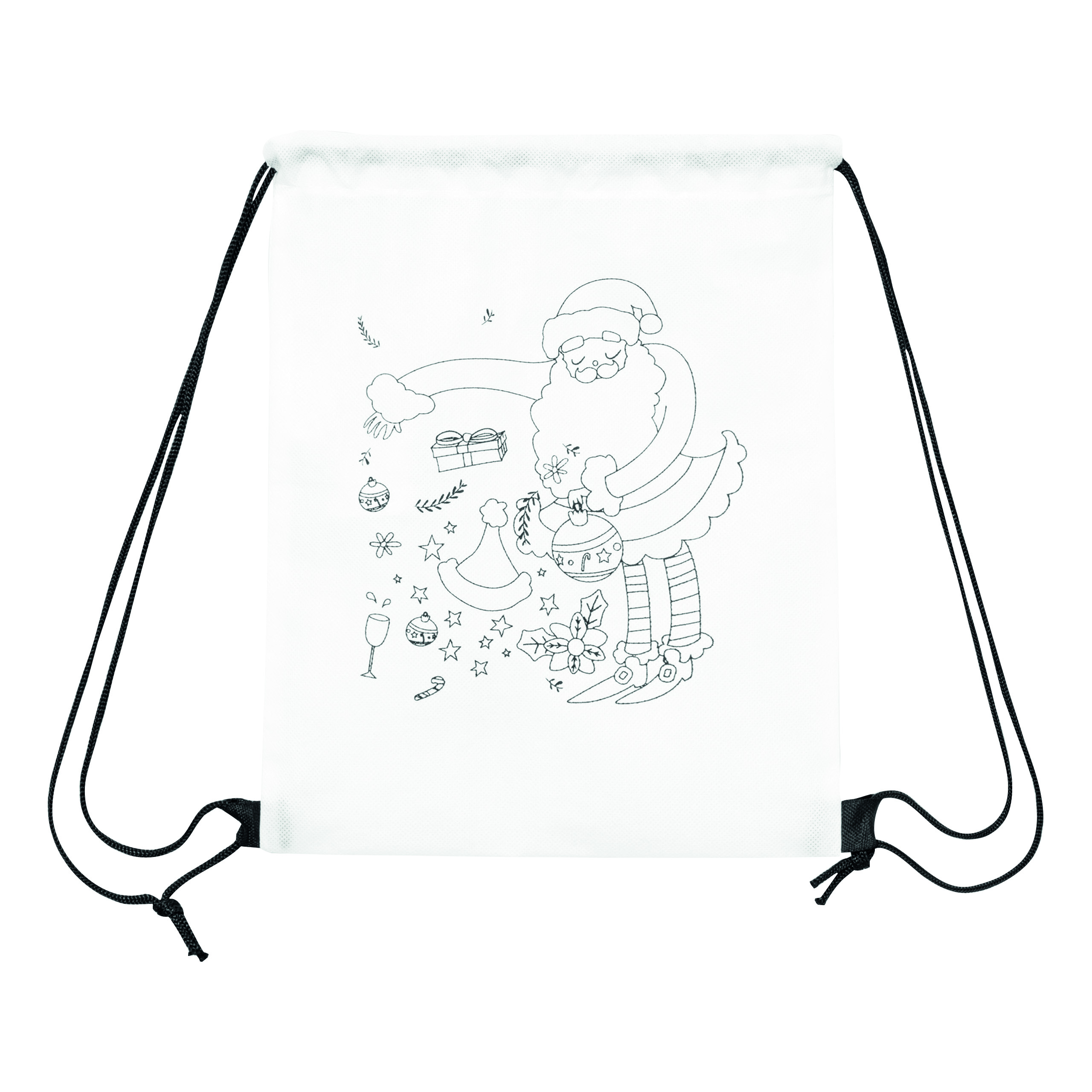Plecak do kolorowania COLOURFUL SANTA z nadrukowanym motywem świątecznym. W zestawie 3 kredki woskowe.