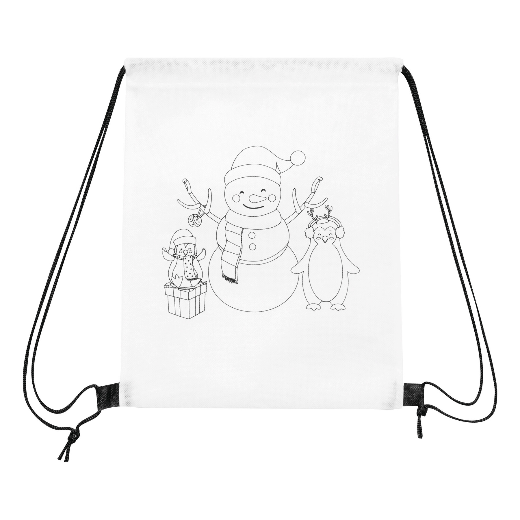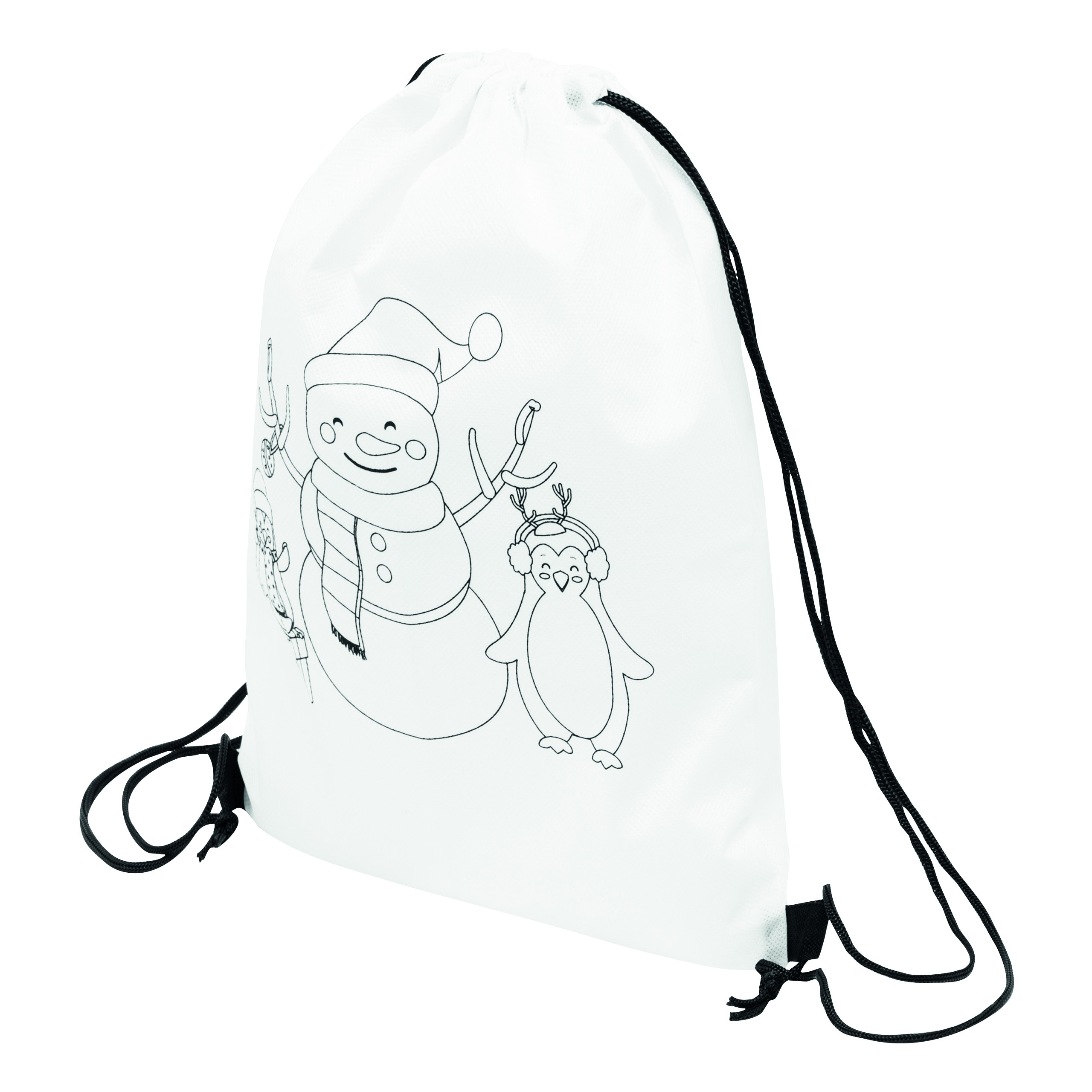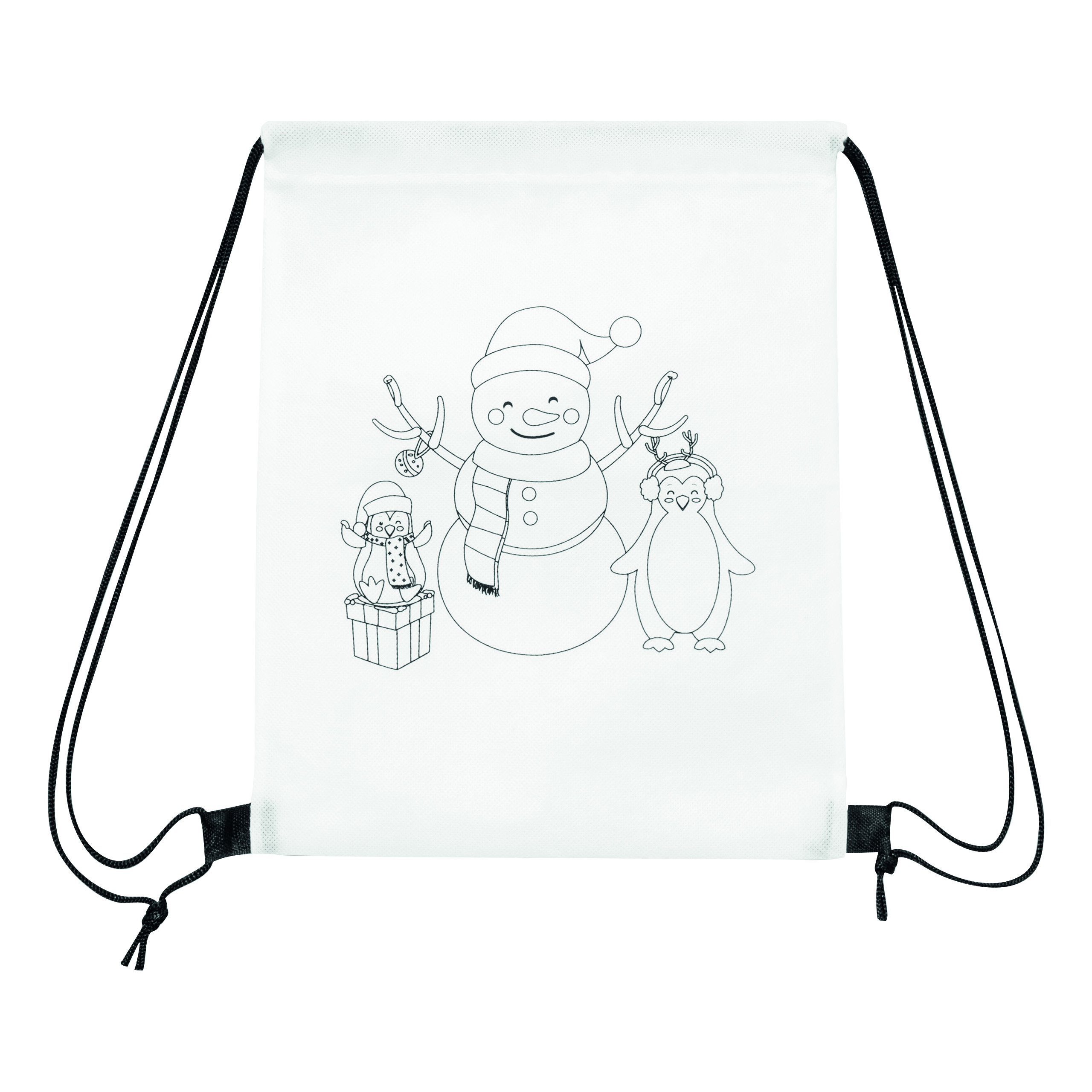 Plecak do kolorowania COLOURFUL SNOWMAN z nadrukowanym motywem świątecznym. W zestawie 3 kredki woskowe.