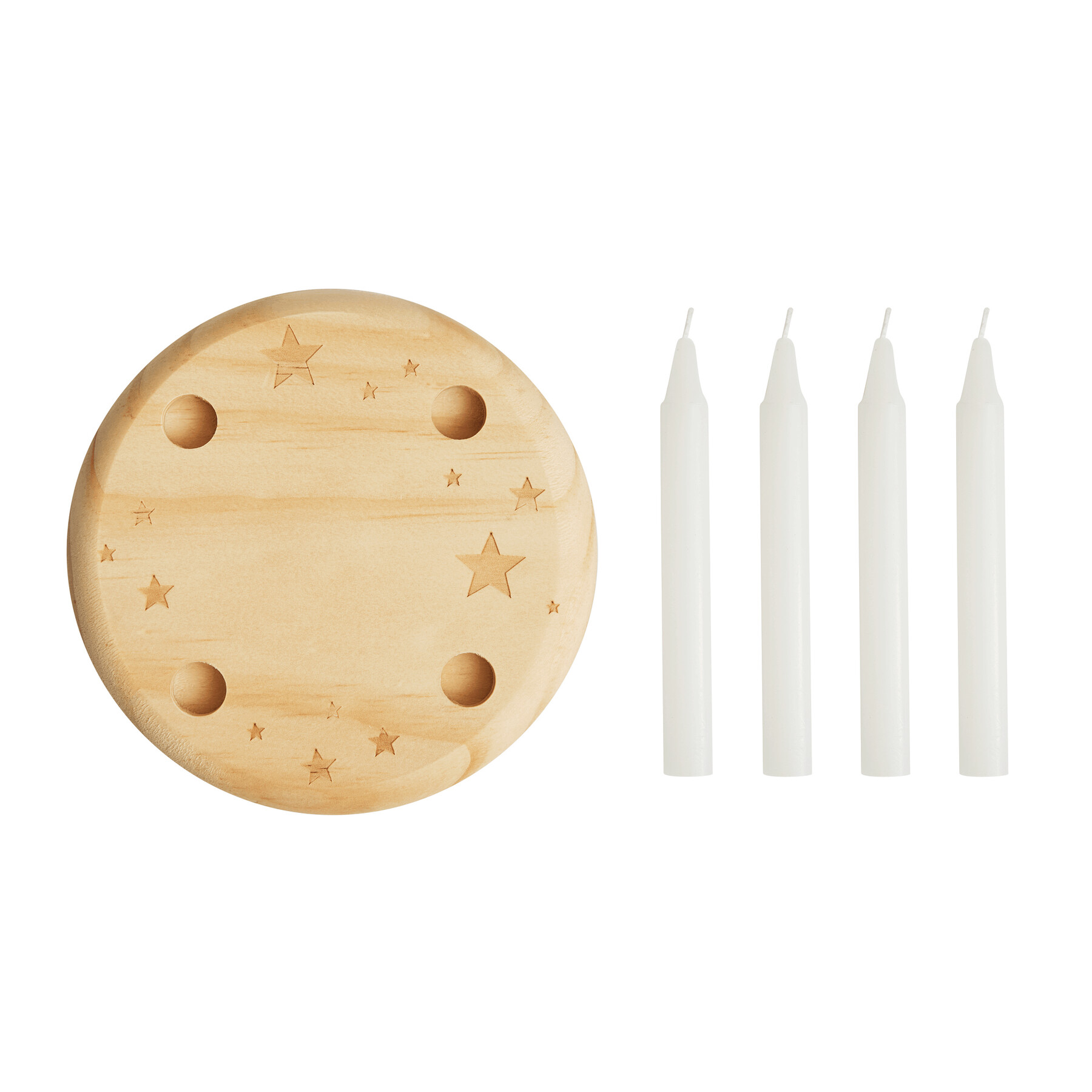 Mały drewniany wieniec adwentowy 4-CHRISTMAS. Do zestawu dołączone są także 4 pasujące świece.