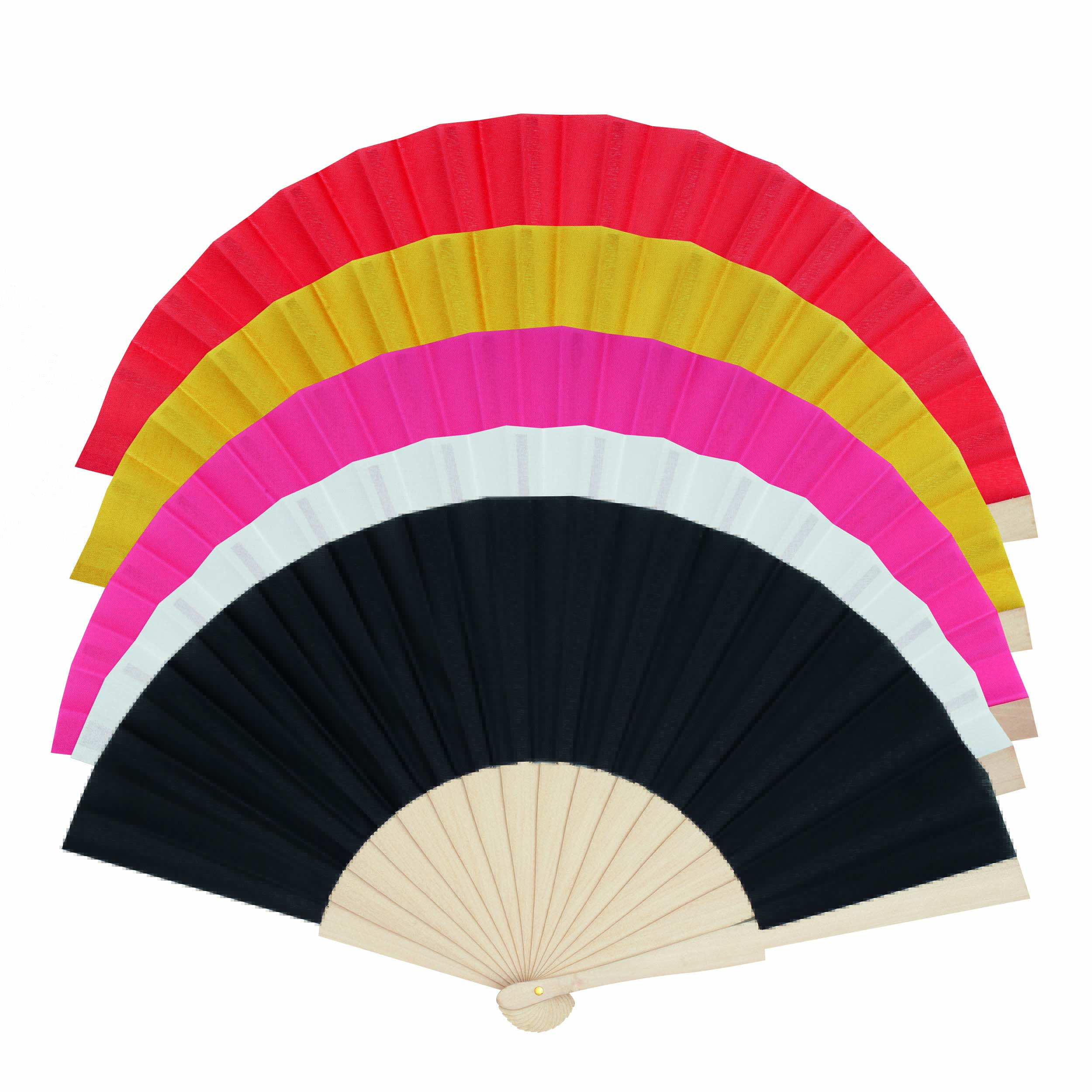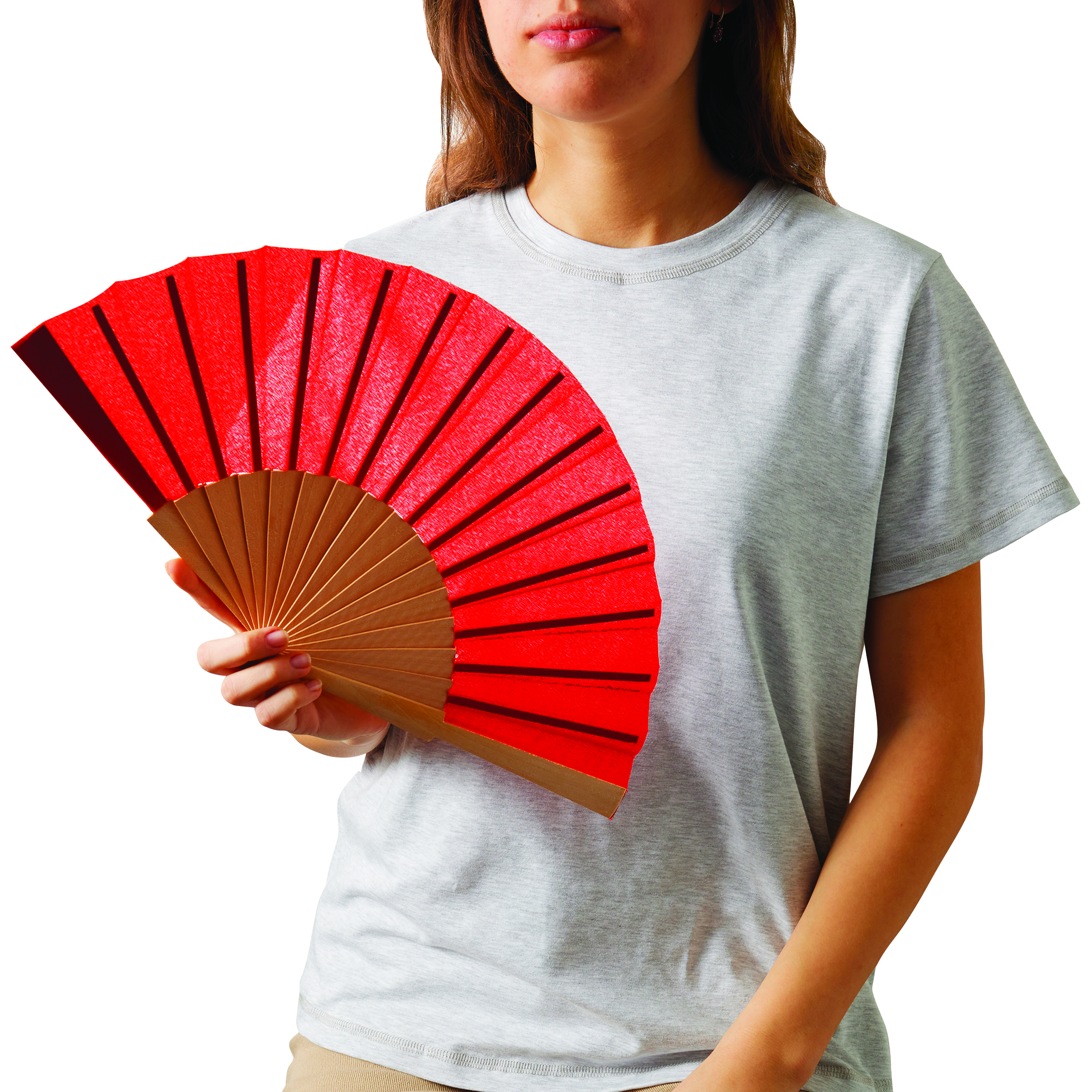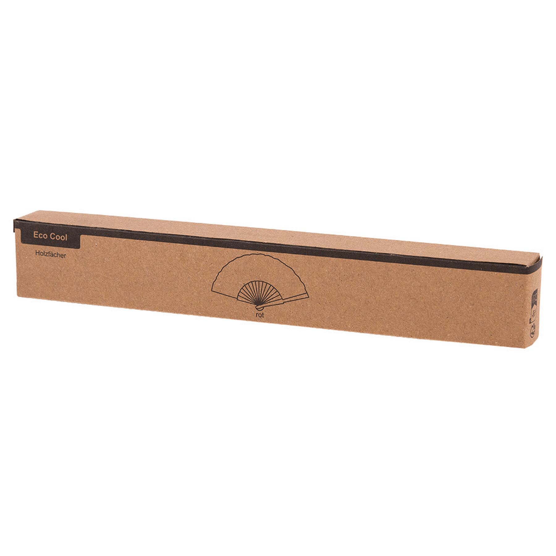 Składany wachlarz ECO COOL: wykonany z poliestru pochodzącego z recyklingu, zamontowany na solidnych drewnianych listwach.