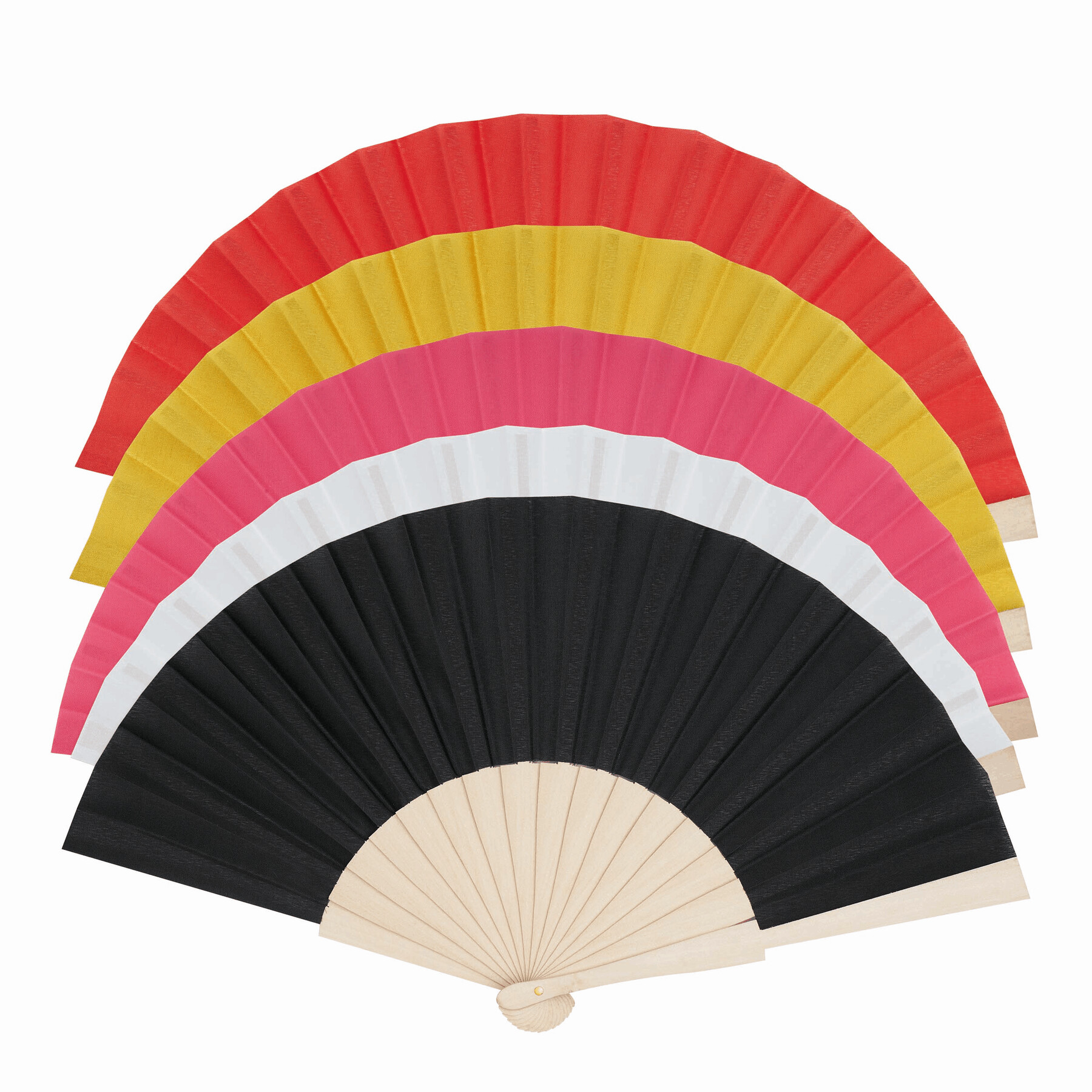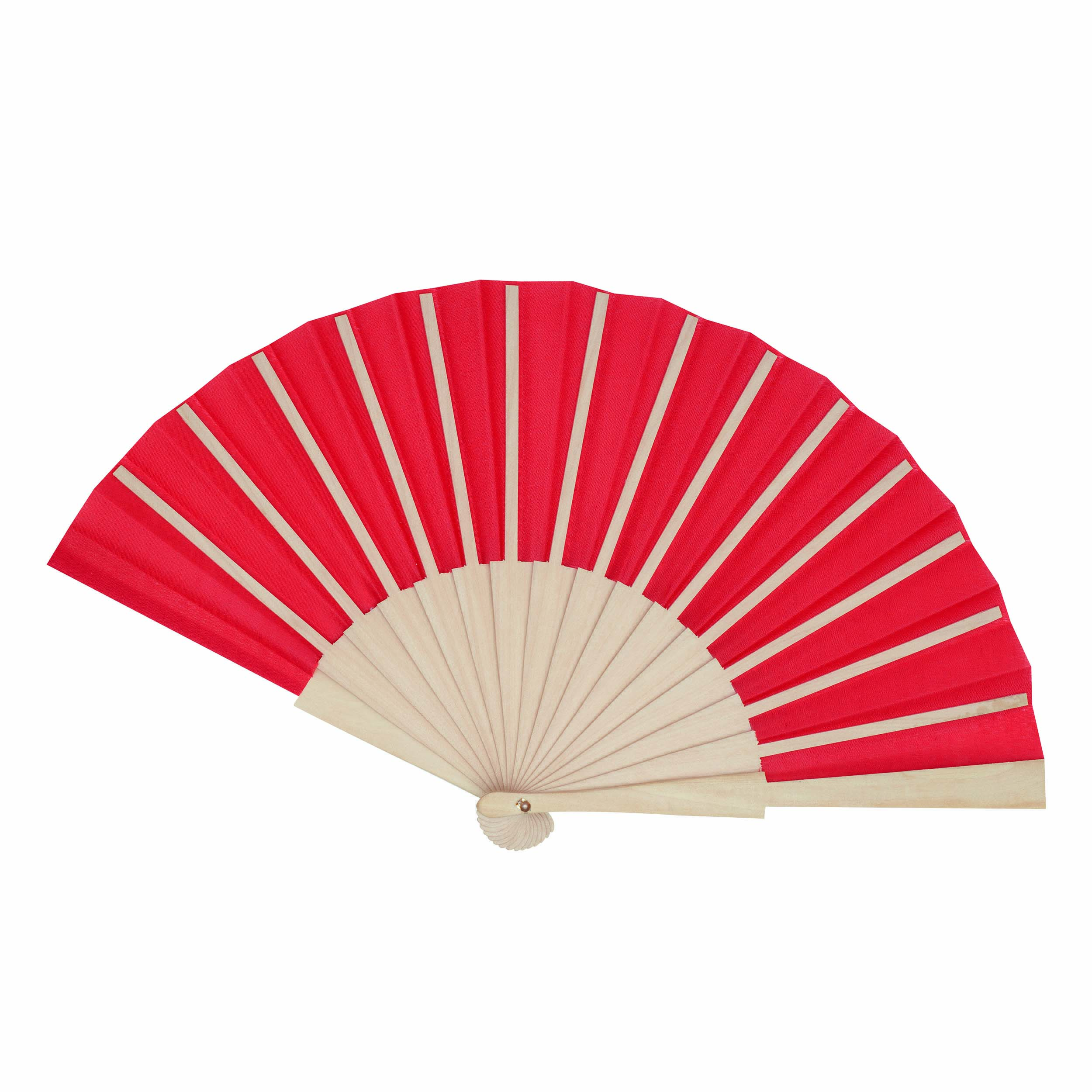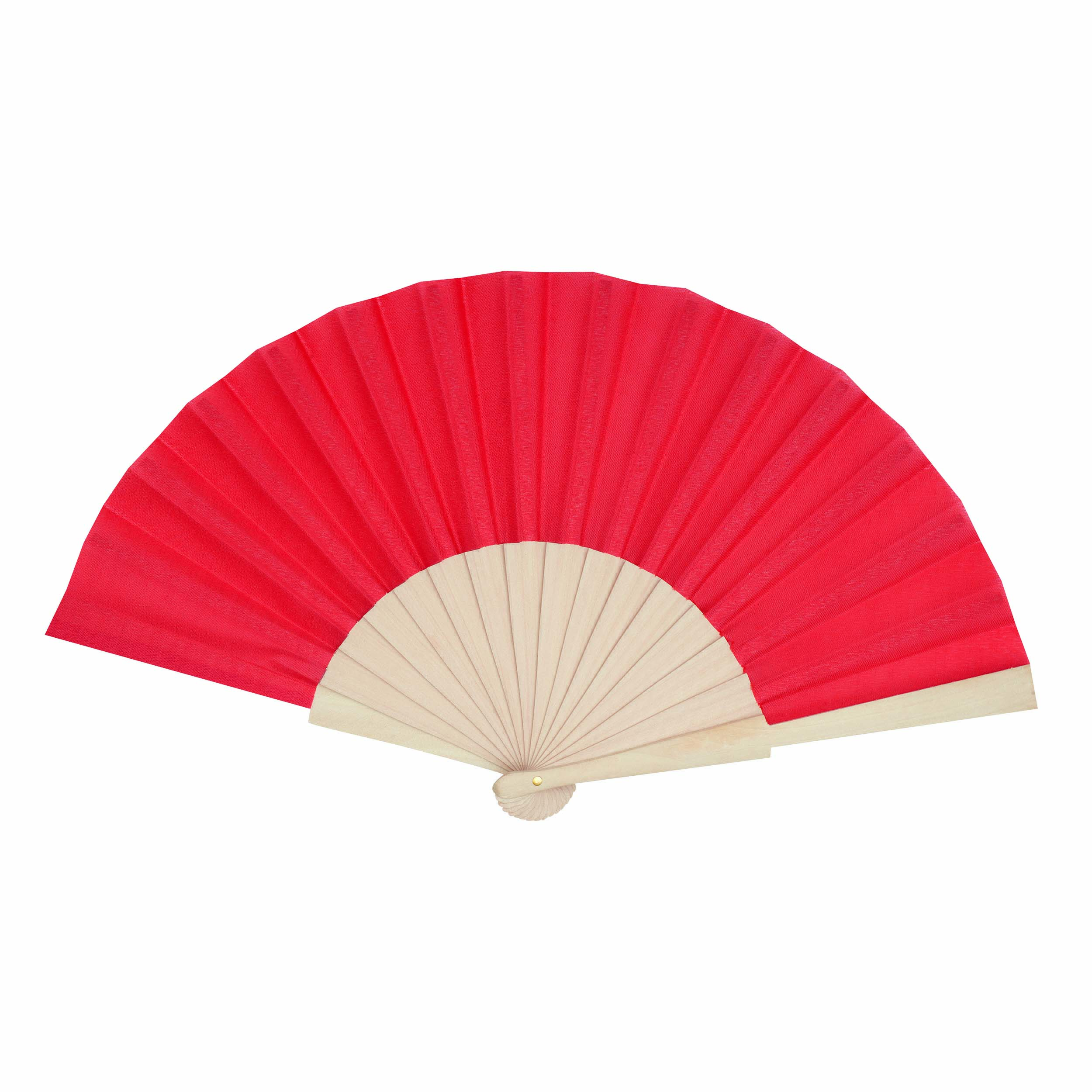 Składany wachlarz ECO COOL: wykonany z poliestru pochodzącego z recyklingu, zamontowany na solidnych drewnianych listwach.