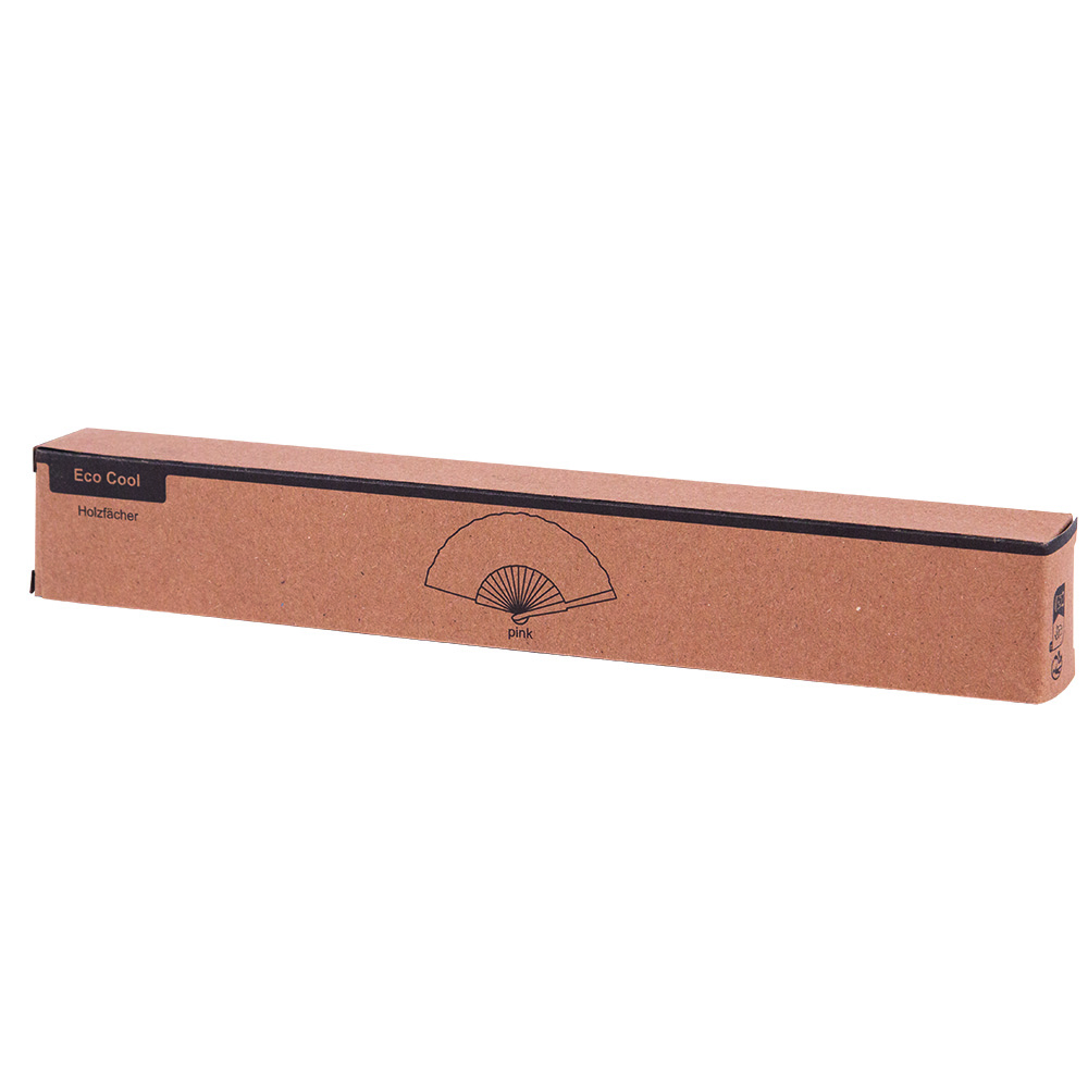 Składany wachlarz ECO COOL: wykonany z poliestru pochodzącego z recyklingu, zamontowany na solidnych drewnianych listwach.