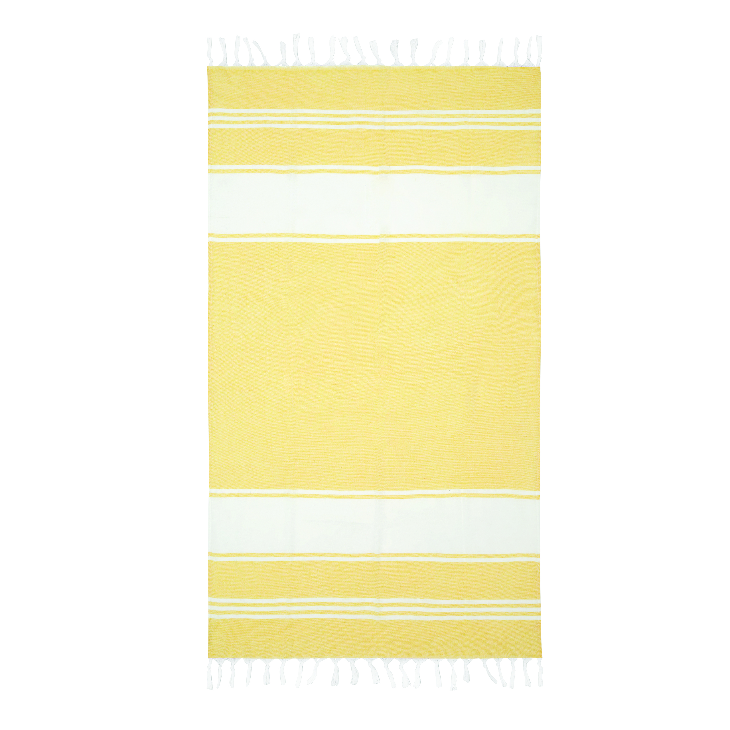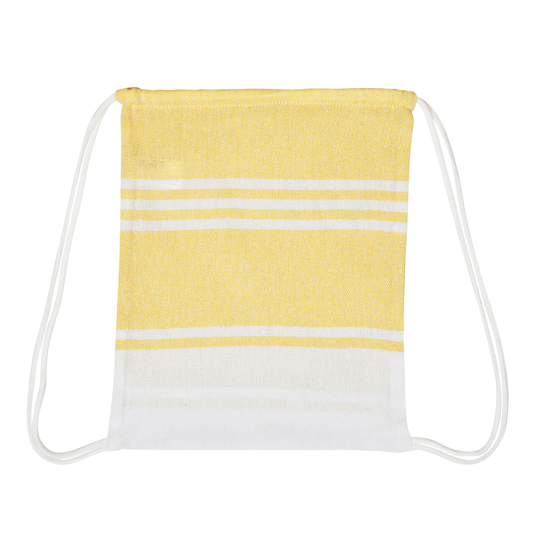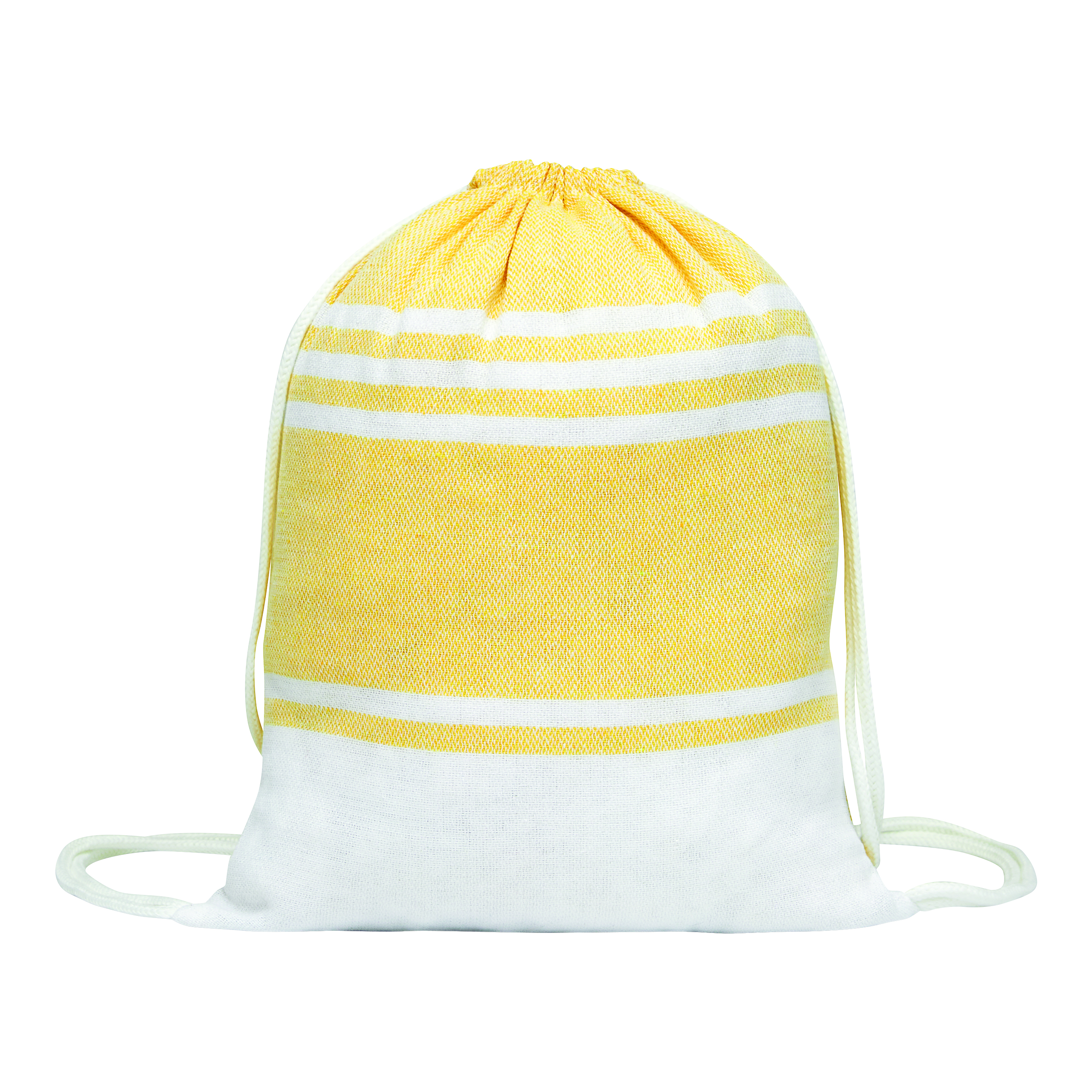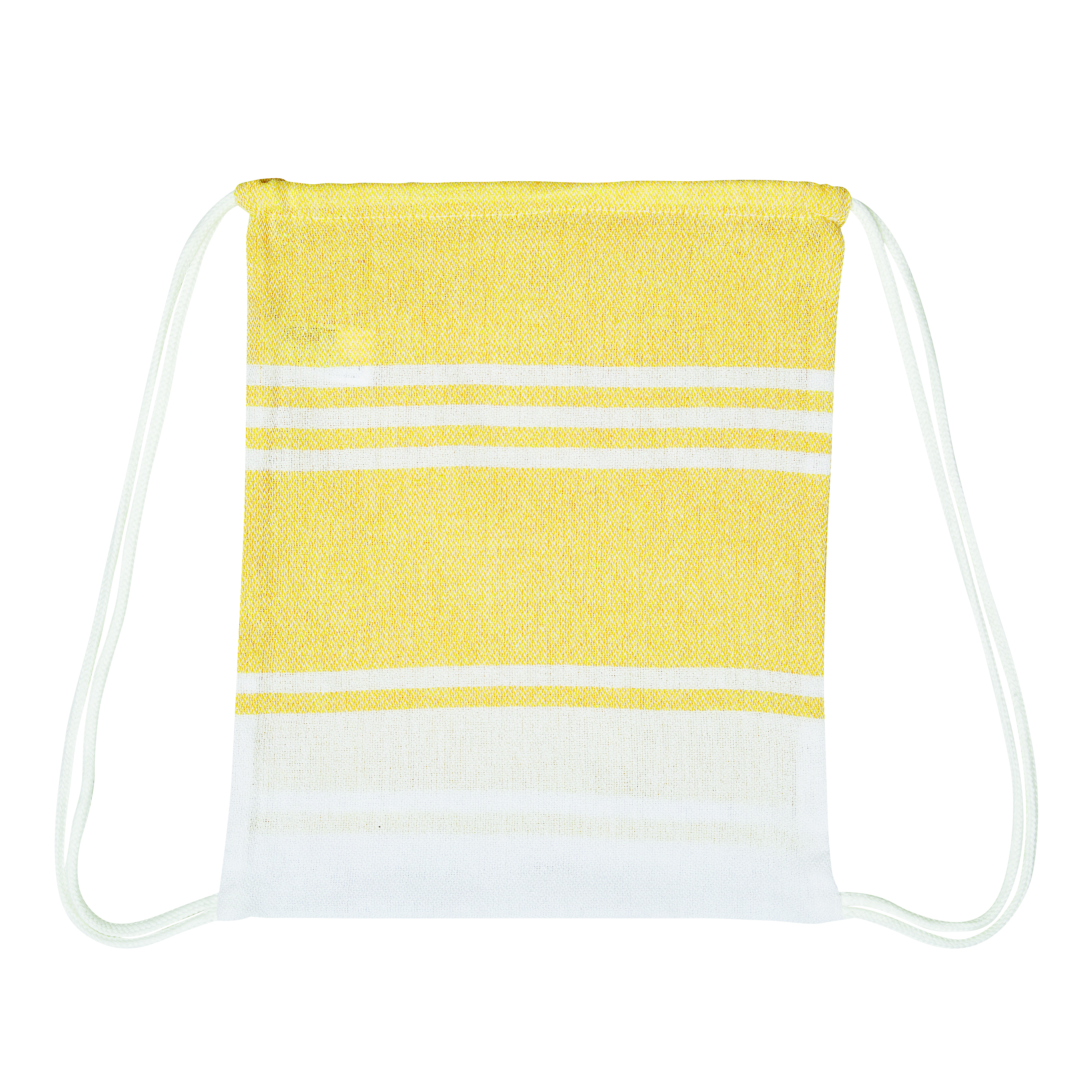 Duży ręcznik plażowy lub do sauny SUN & STEAM. To duży ręcznik z białymi paskami i frędzlami. Zapakowany jest w dopasowaną kolorystycznie torbę ze ściągaczem.