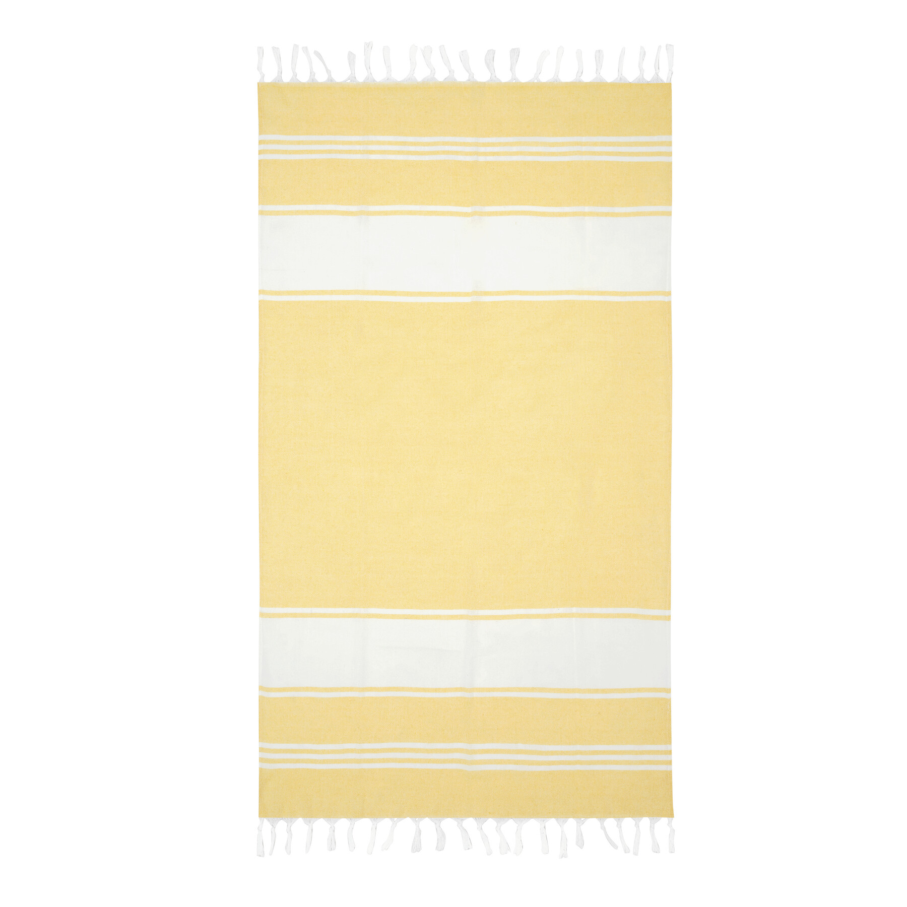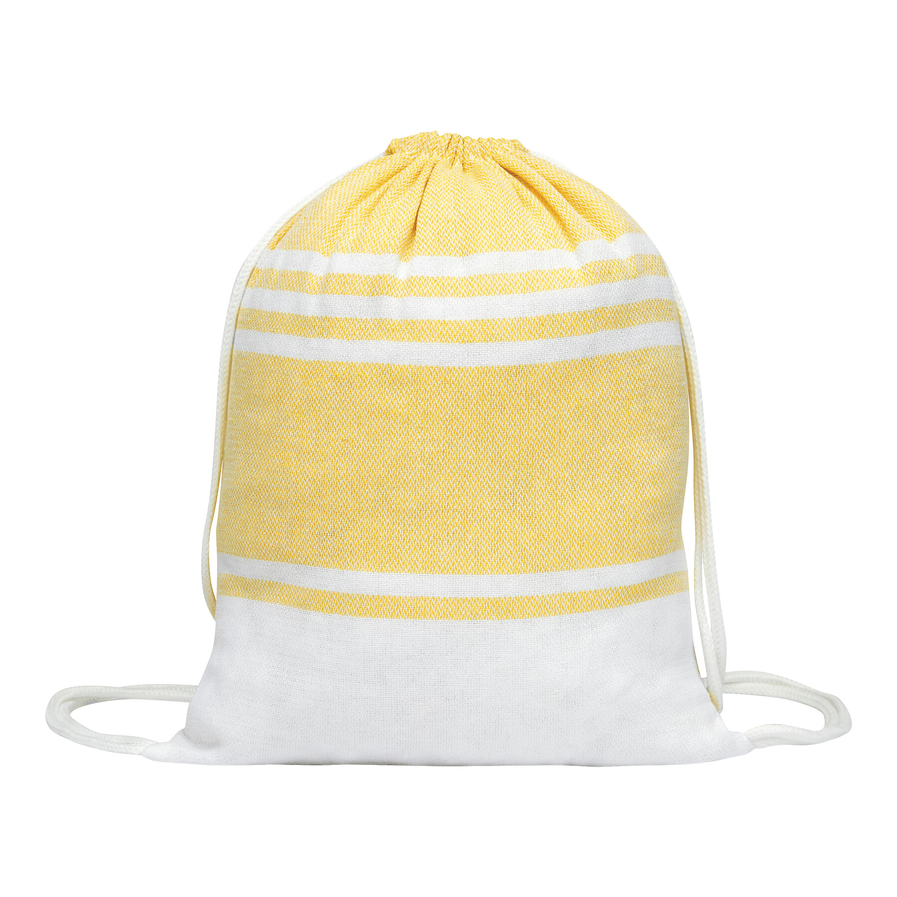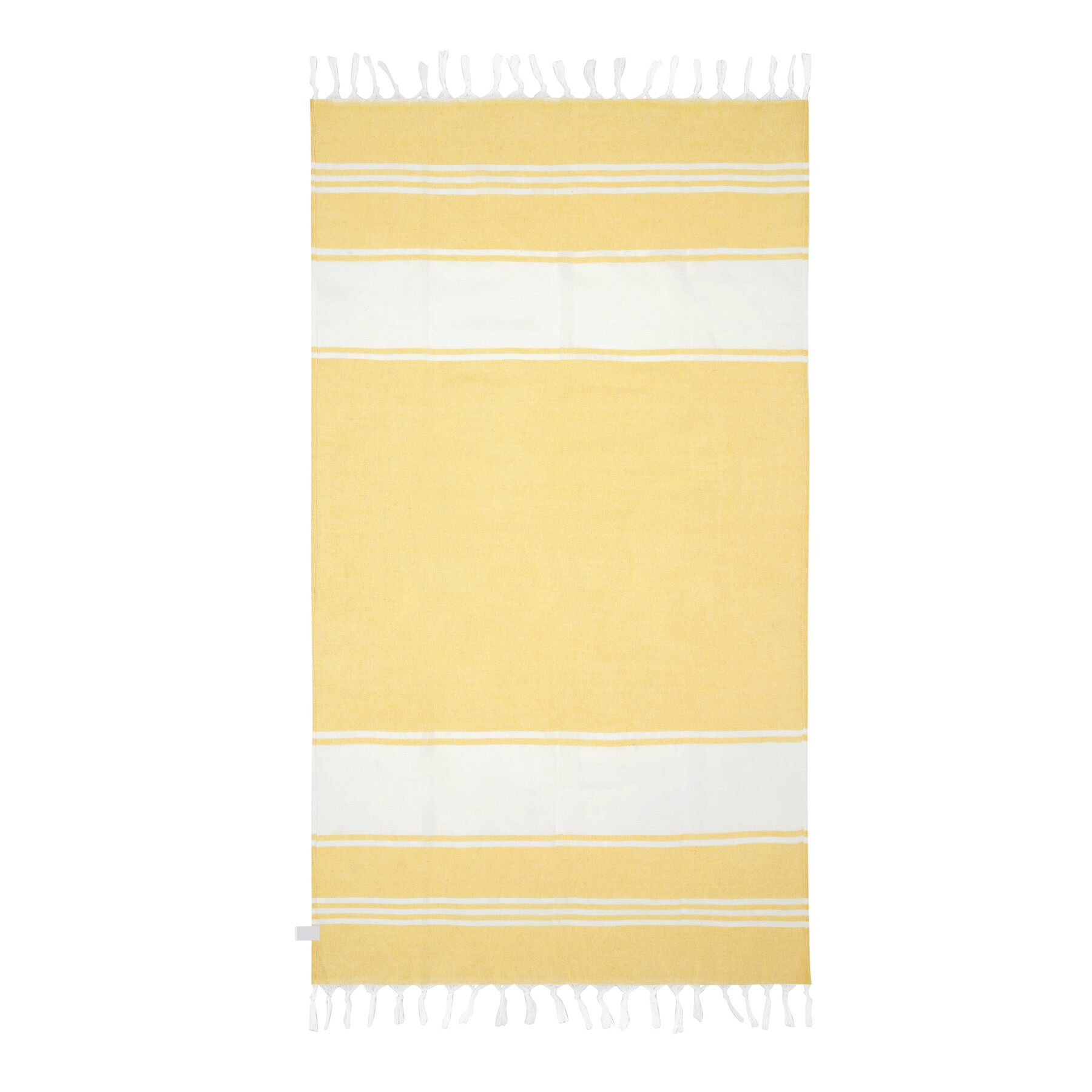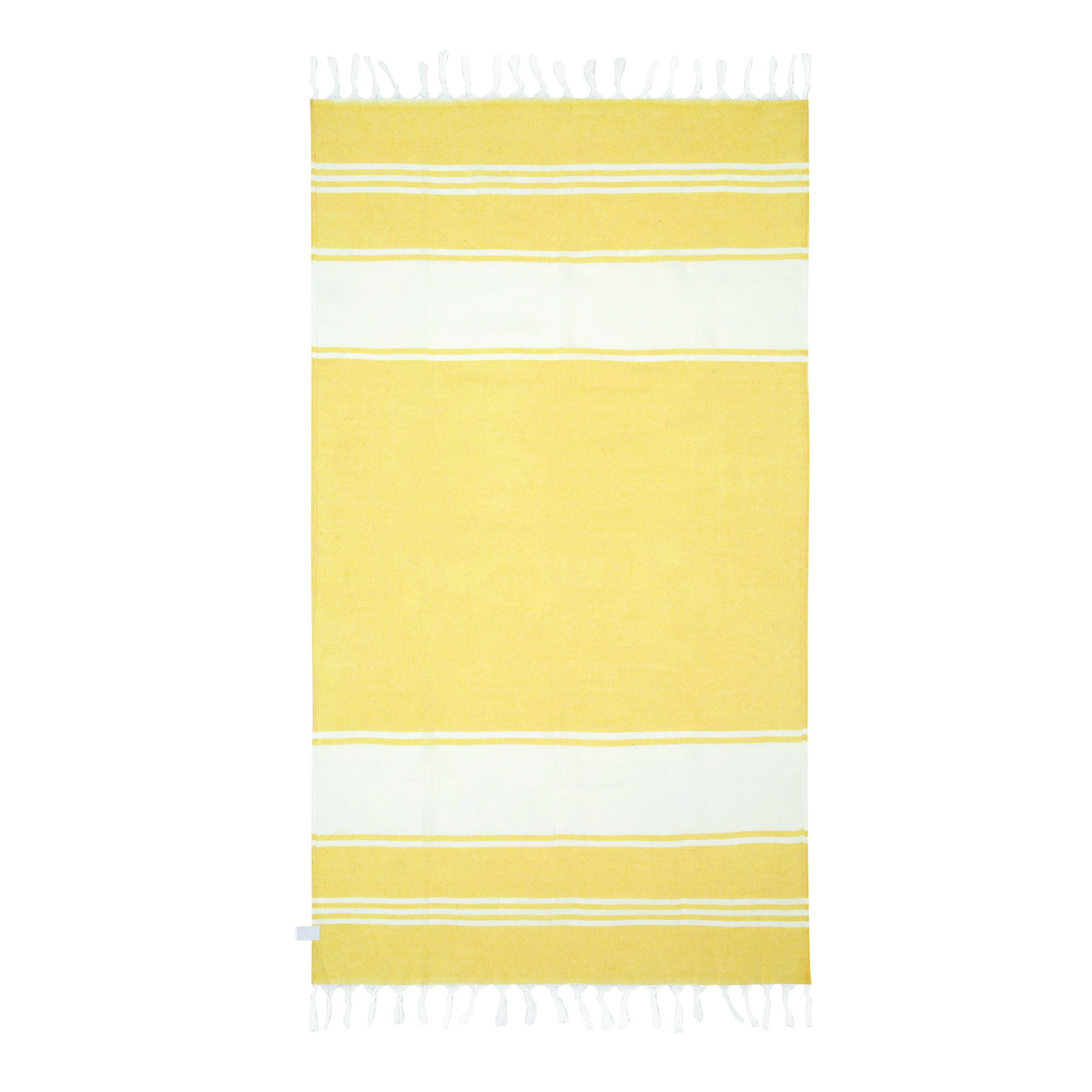 Duży ręcznik plażowy lub do sauny SUN & STEAM. To duży ręcznik z białymi paskami i frędzlami. Zapakowany jest w dopasowaną kolorystycznie torbę ze ściągaczem.