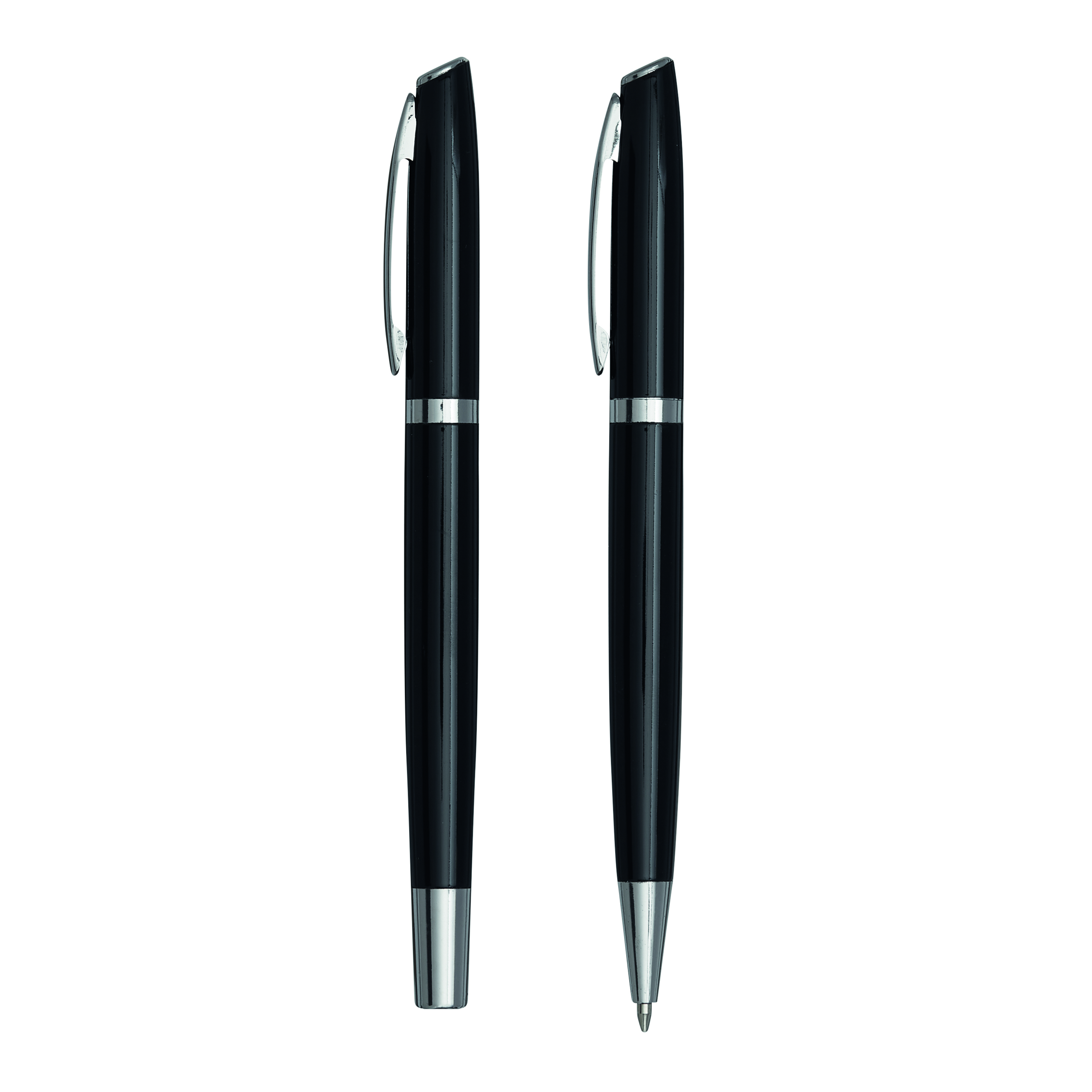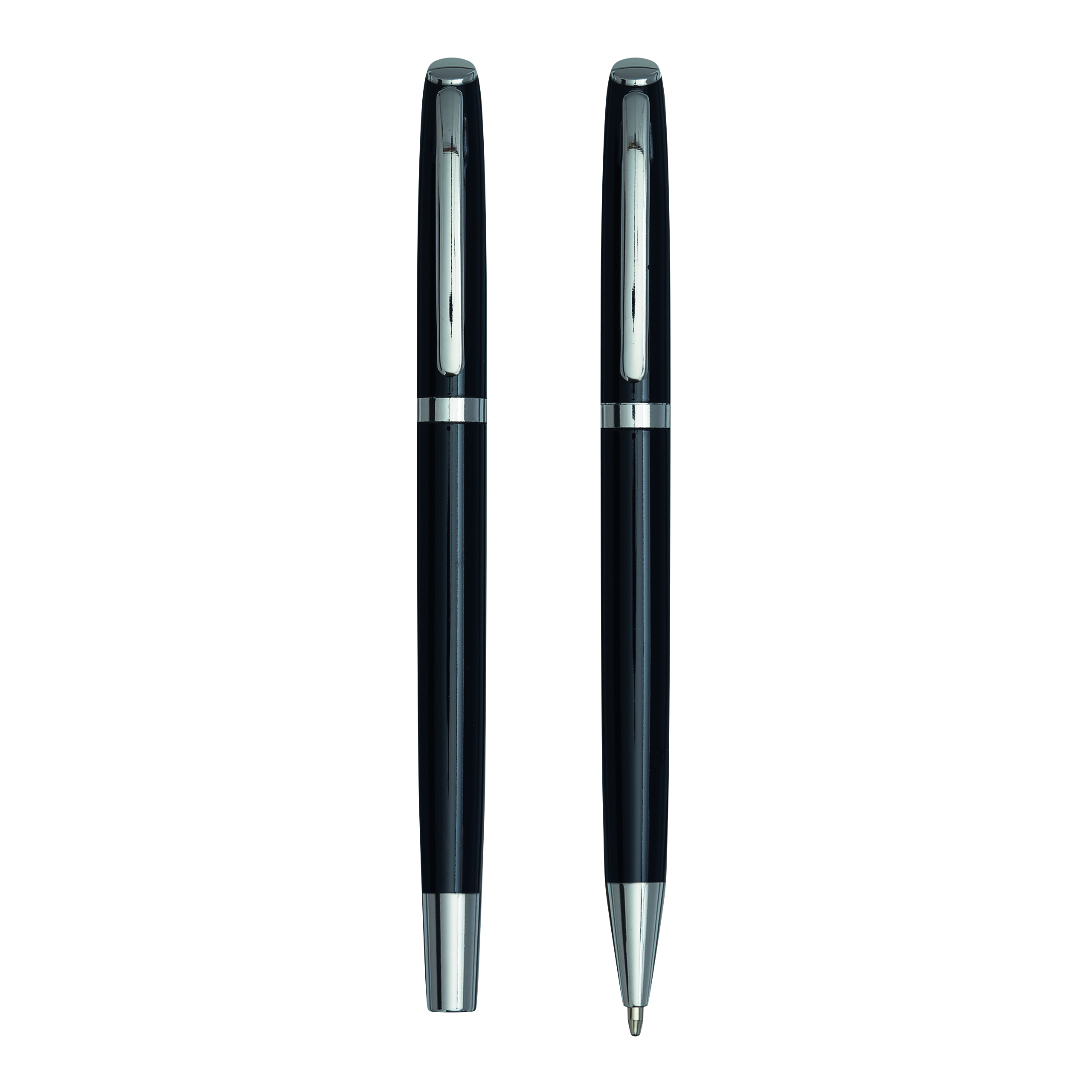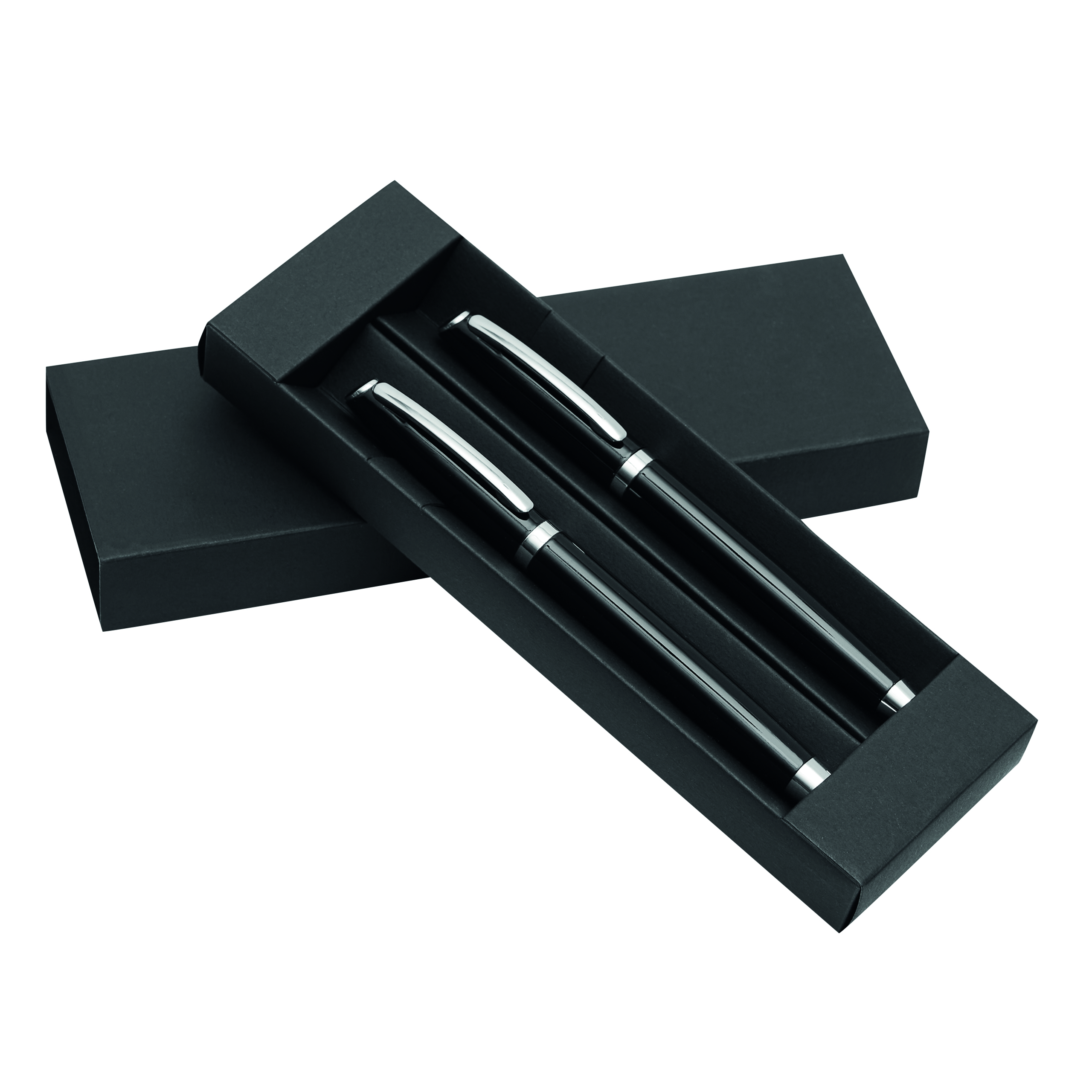 Zestaw do pisania ALPHABET składa się z długopisu z mechanizmem obrotowym i pióra kulkowego, czarny tusz, pakowany w pudełko.
