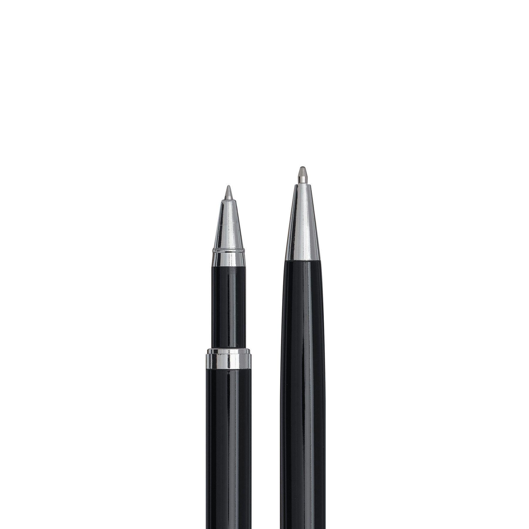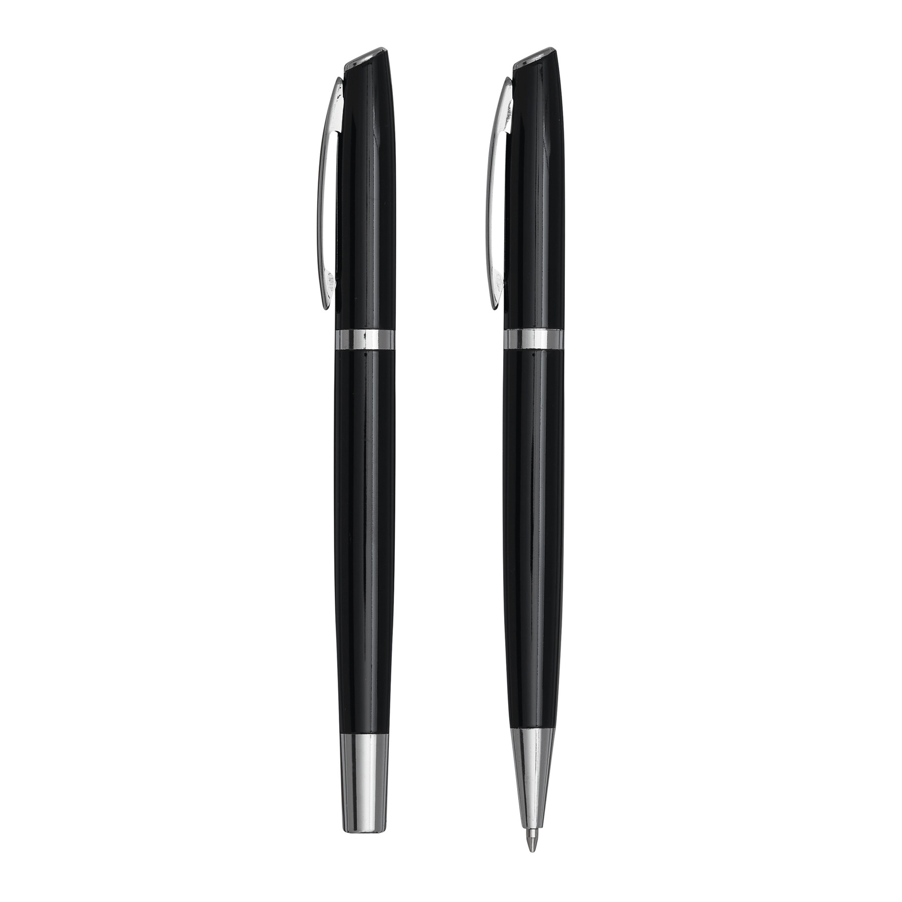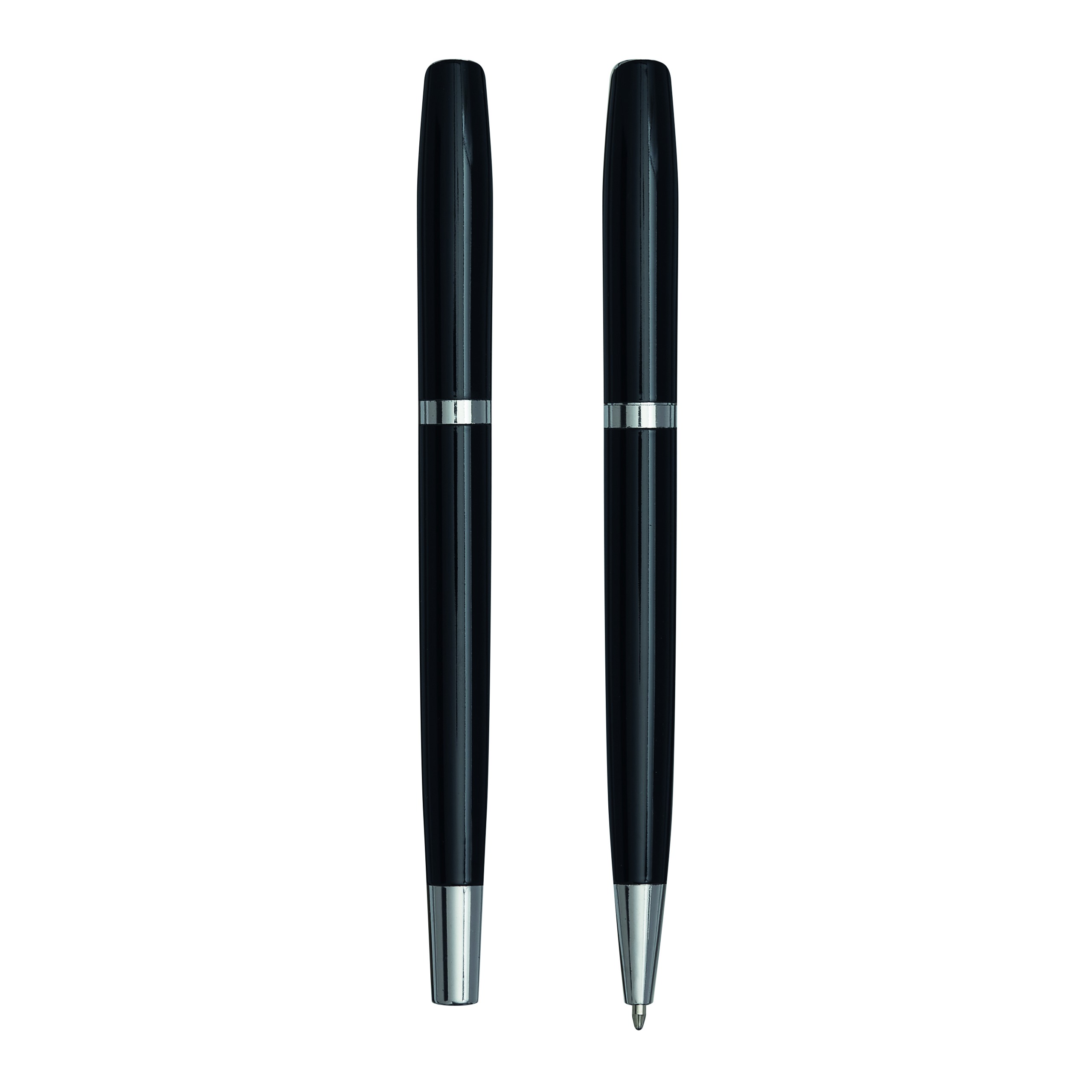 Zestaw do pisania ALPHABET składa się z długopisu z mechanizmem obrotowym i pióra kulkowego, czarny tusz, pakowany w pudełko.