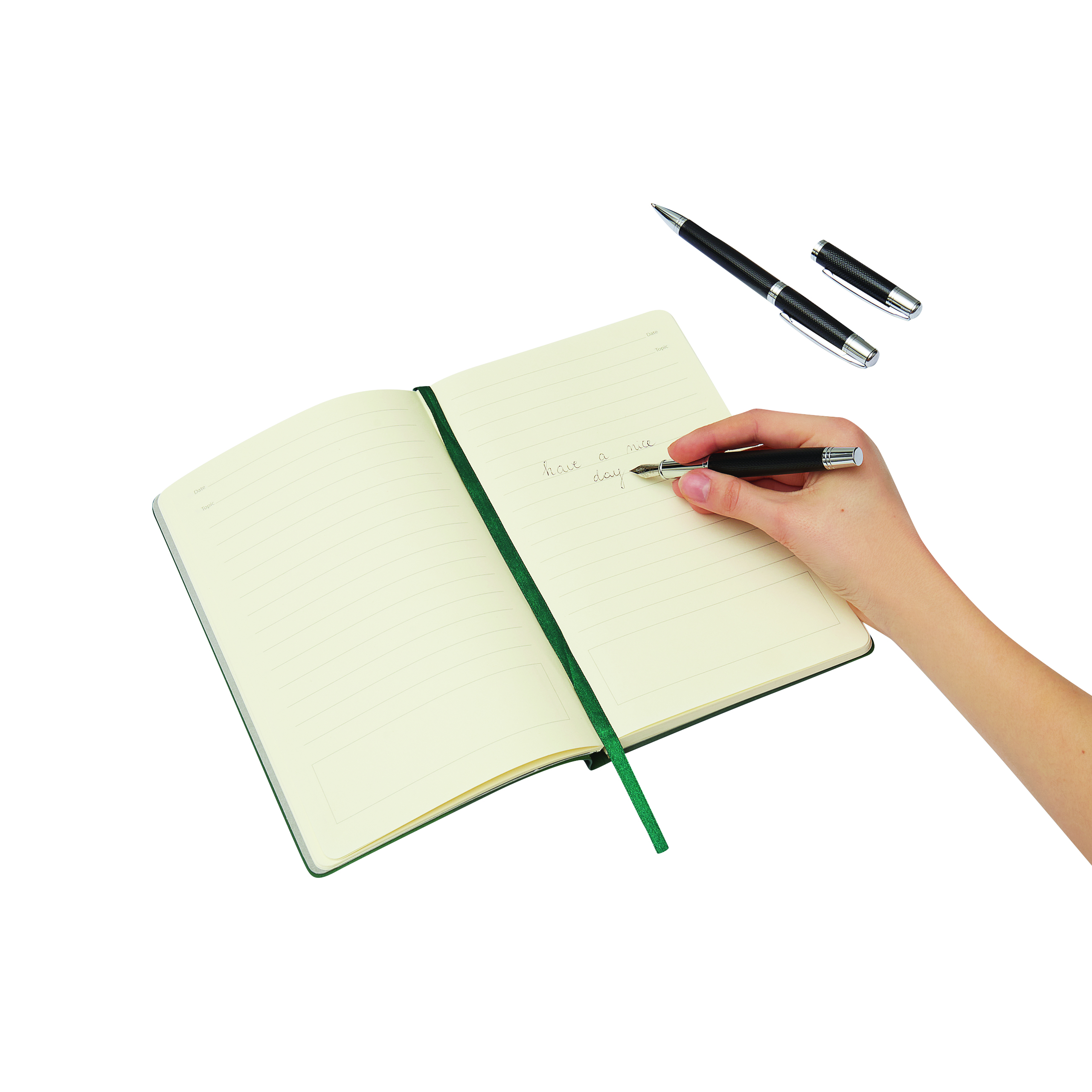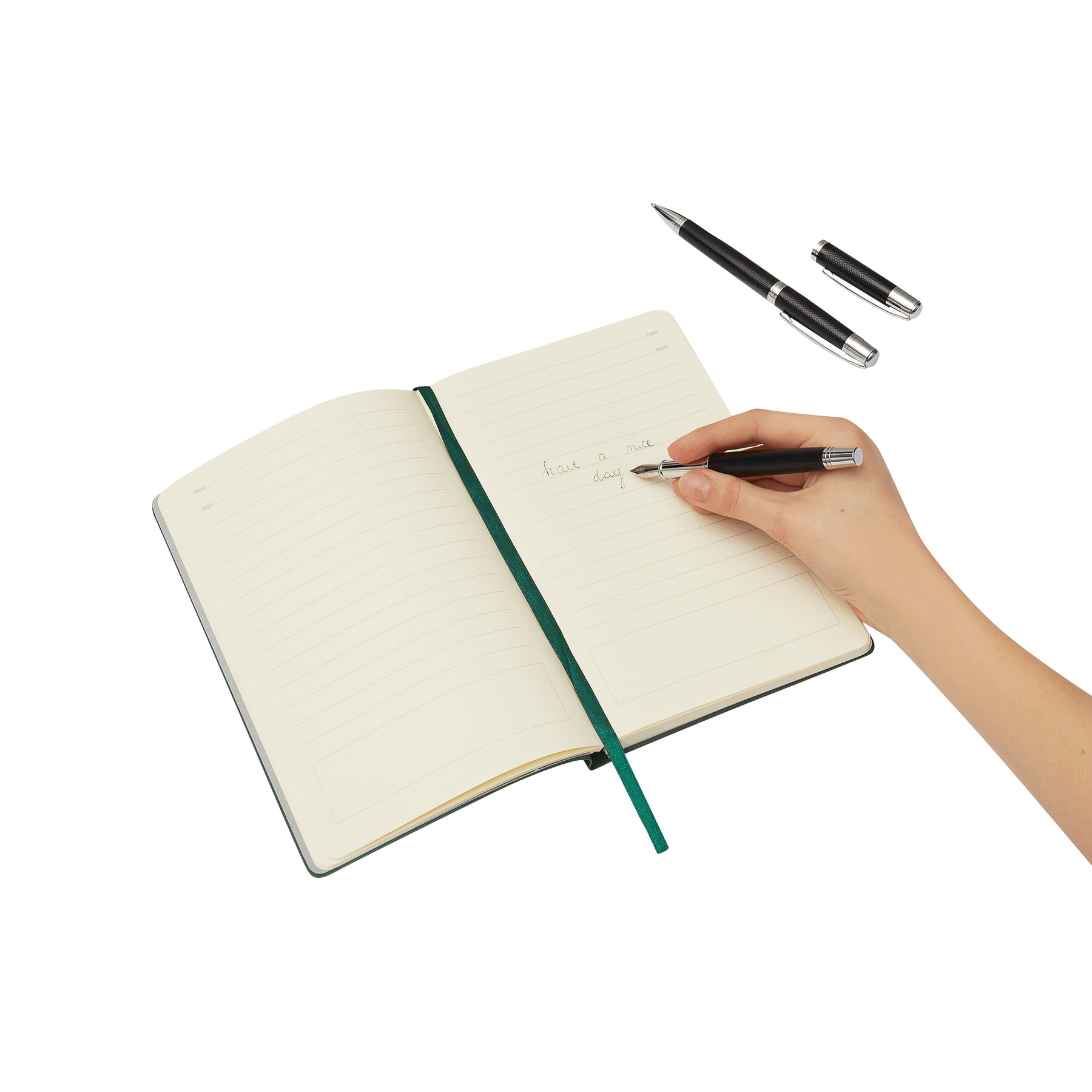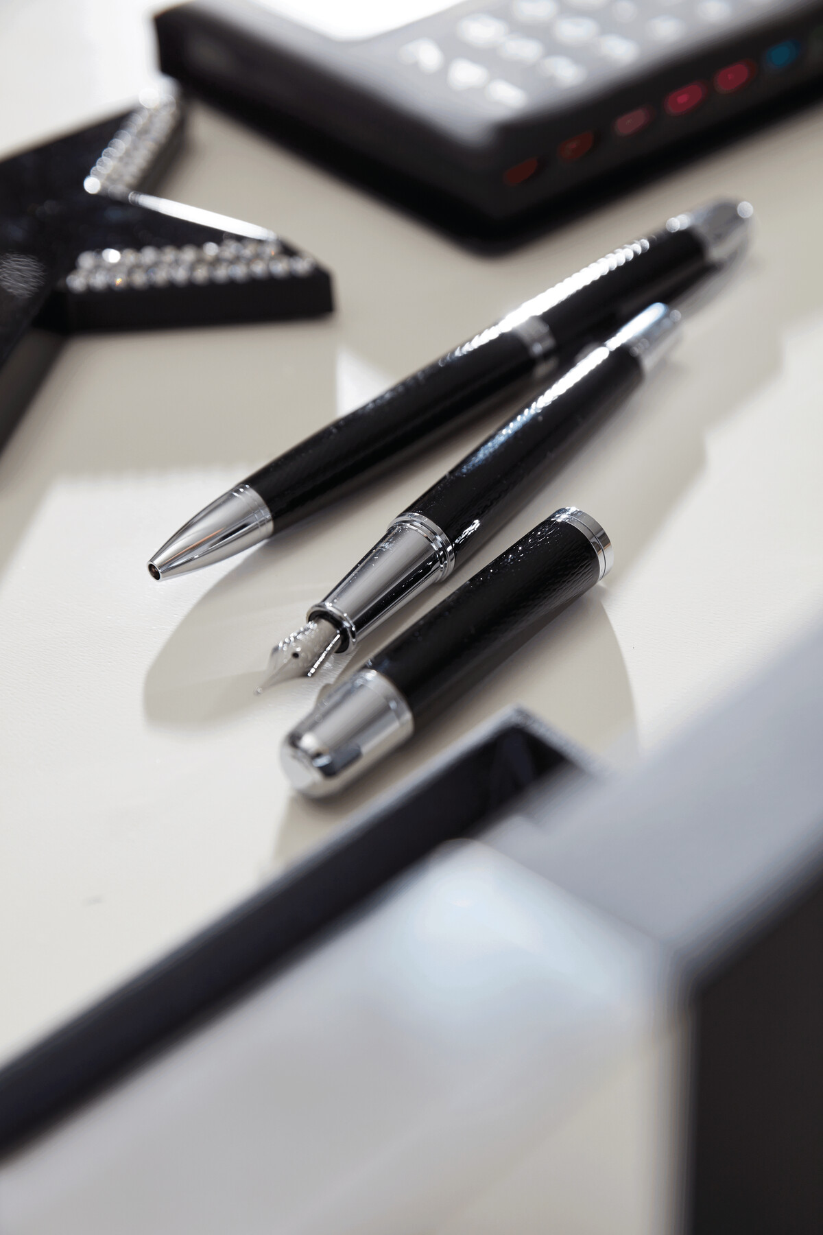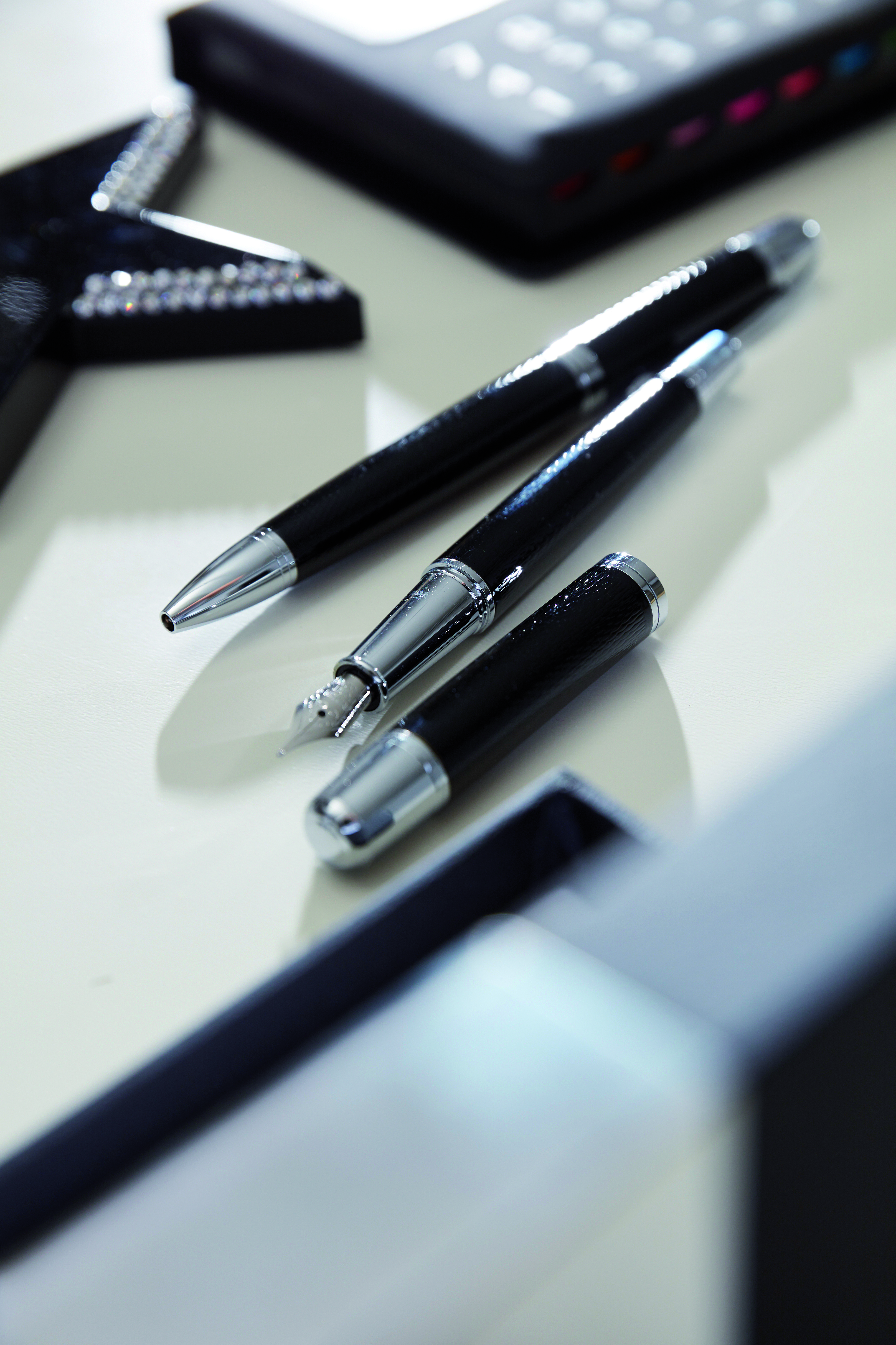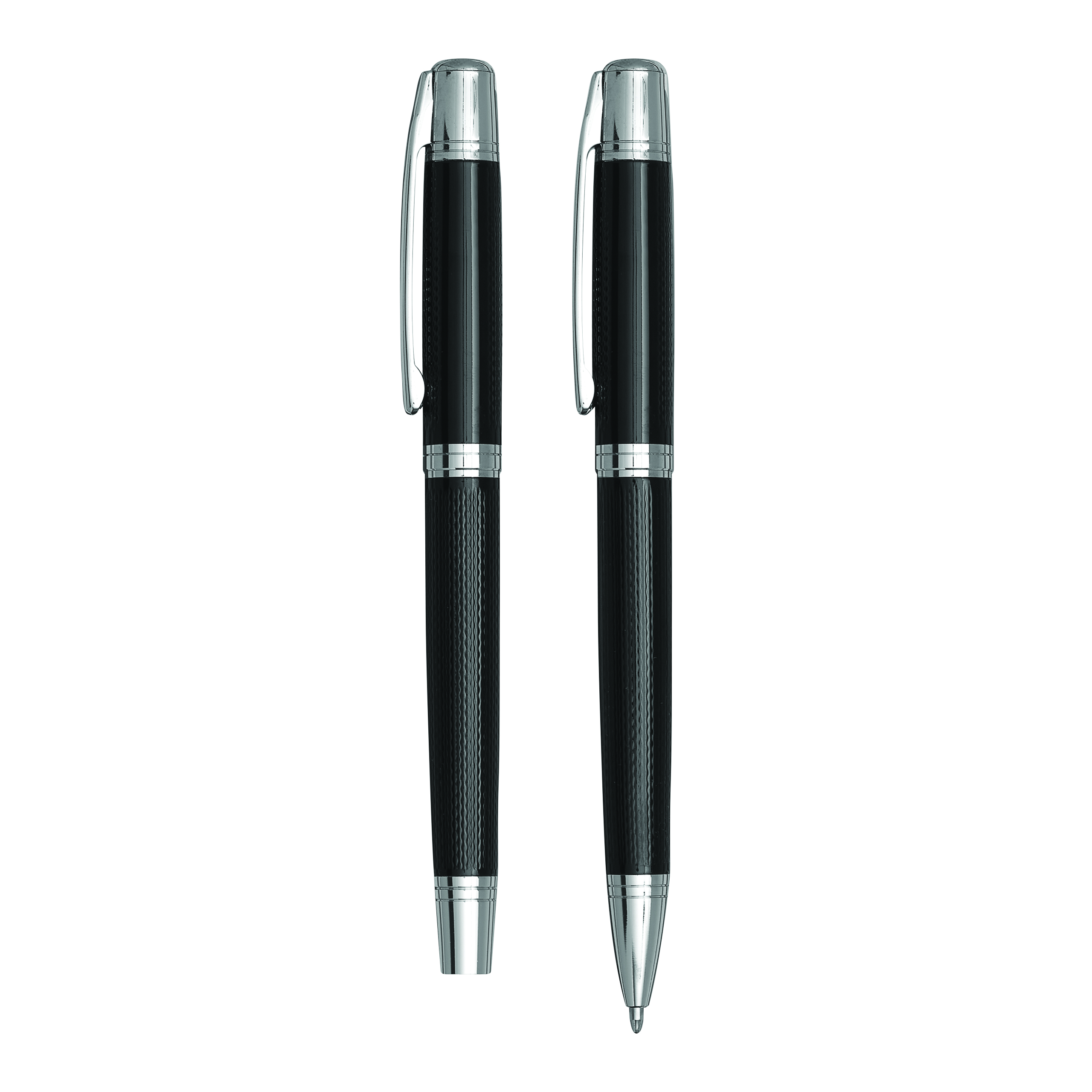 Zestaw MANZONI składający się z długopisu z czarnym wkładem oraz pióra wiecznego w eleganckim pudełku.
