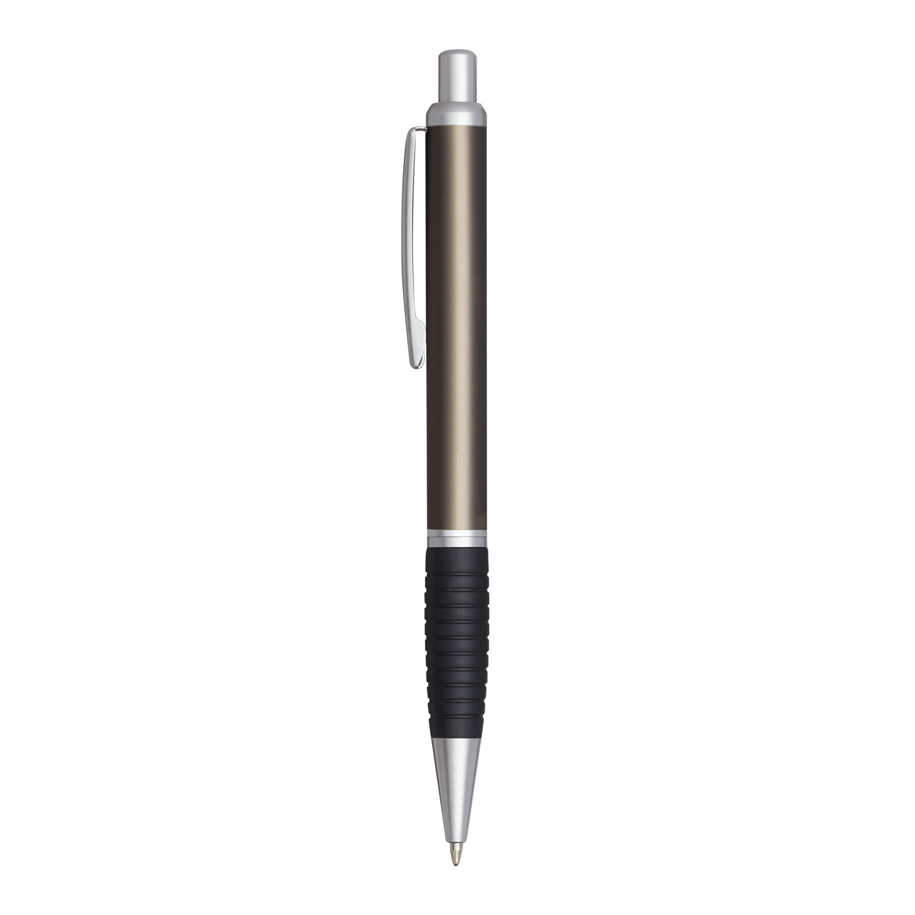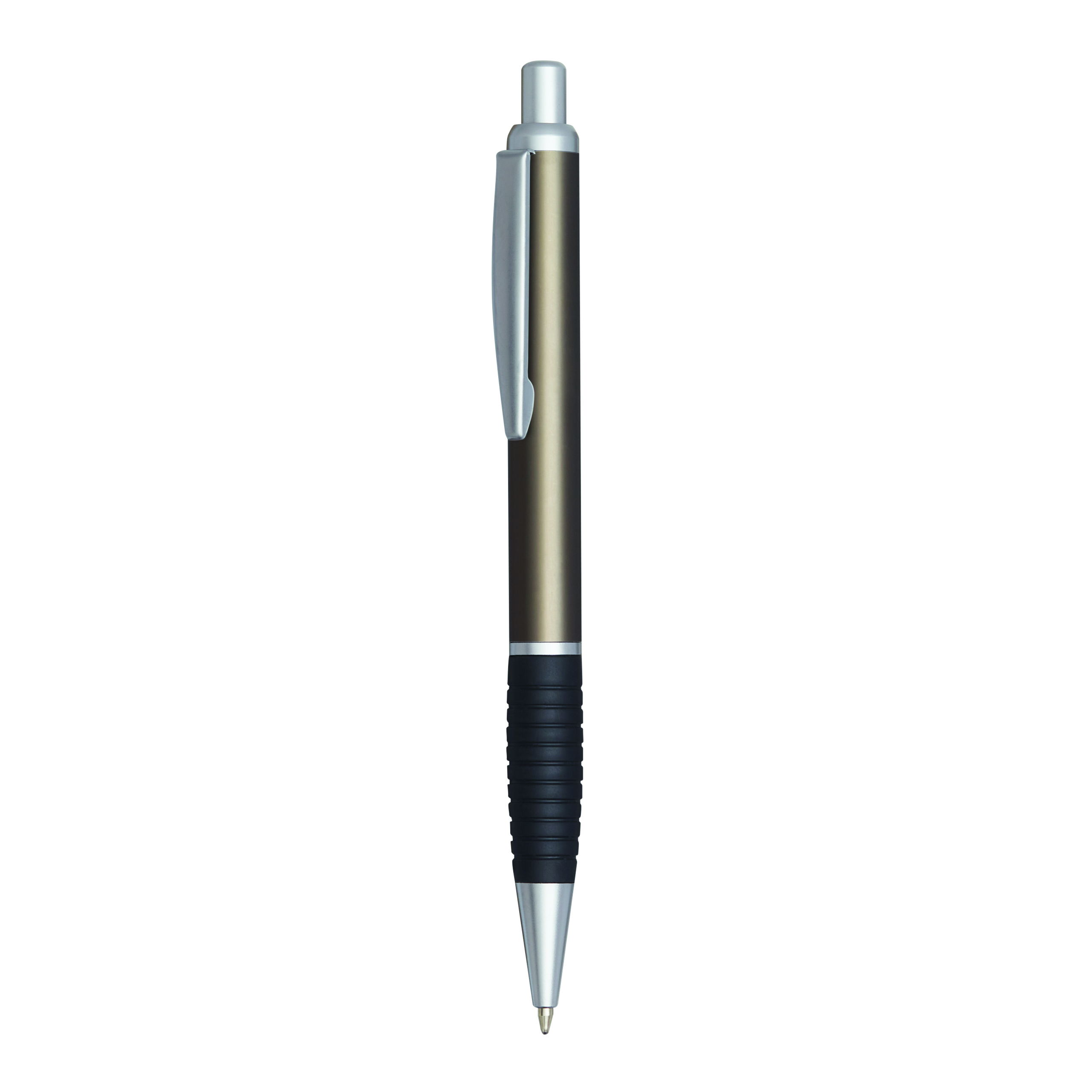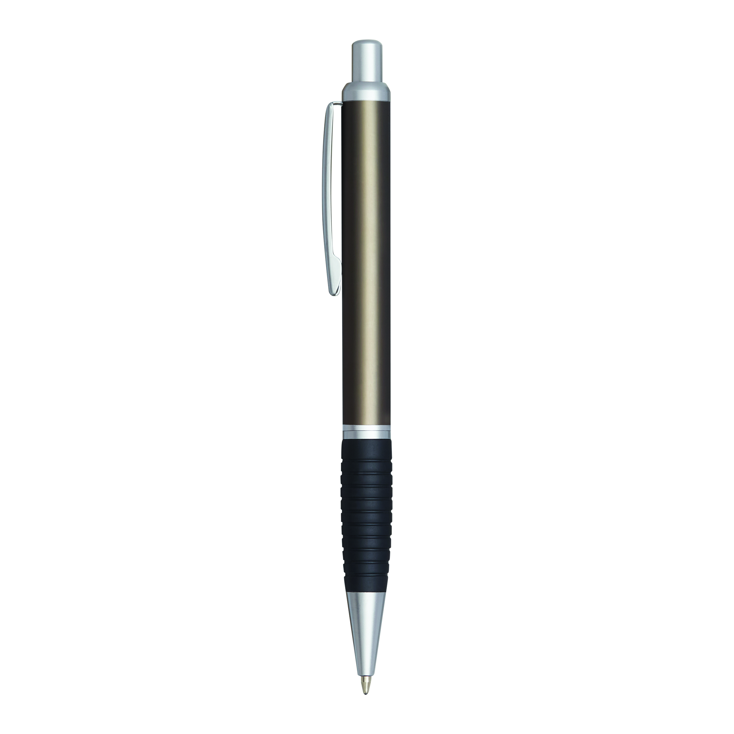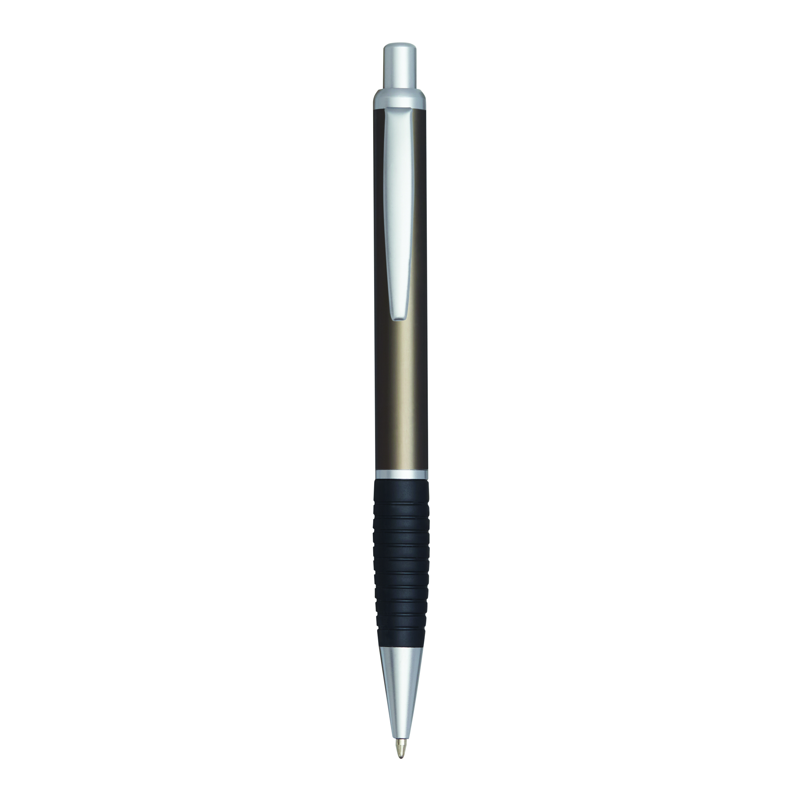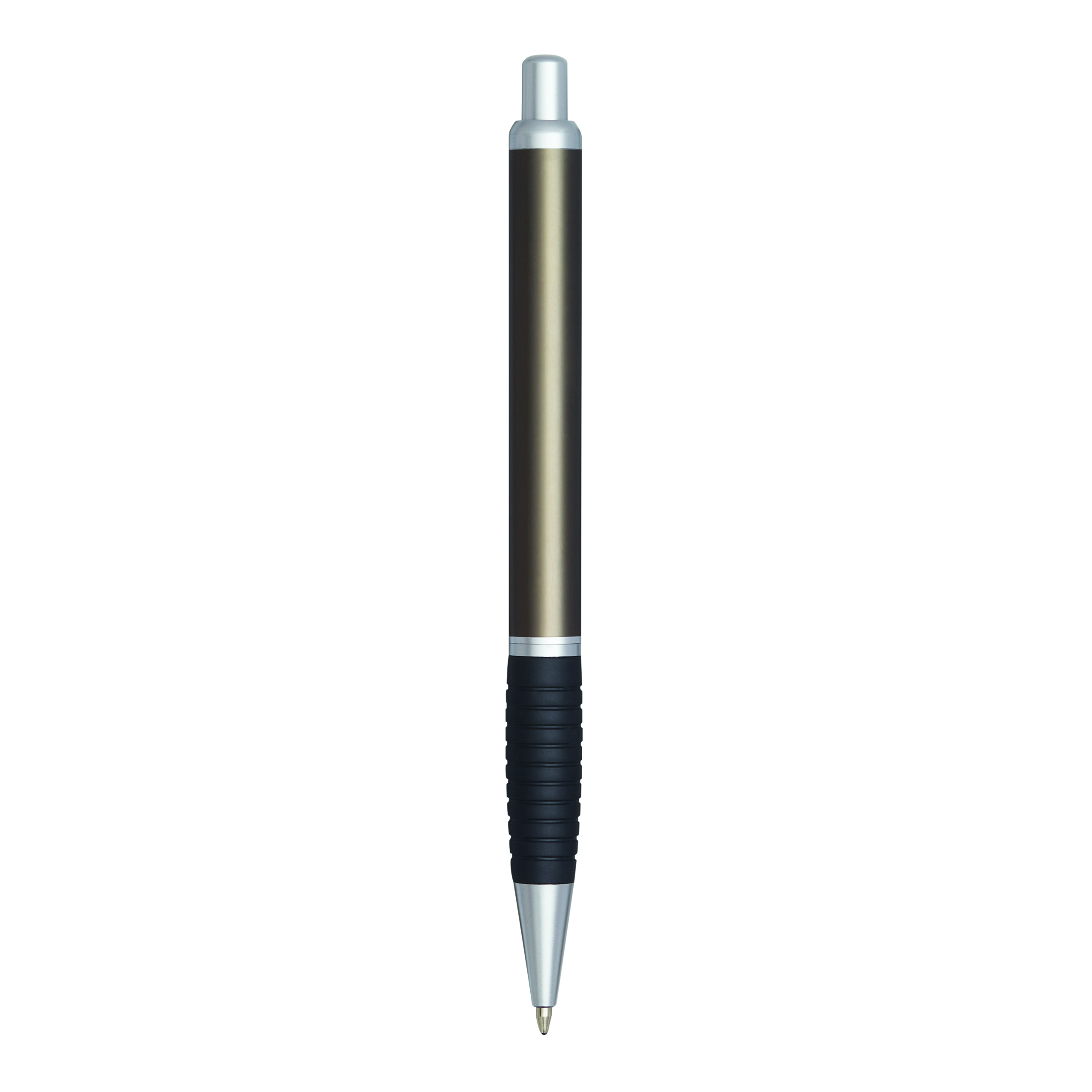 Długopis VANCOUVER z gumowym uchwytem i metalizowanymi wykończeniami, duży wkład, niebieski tusz.