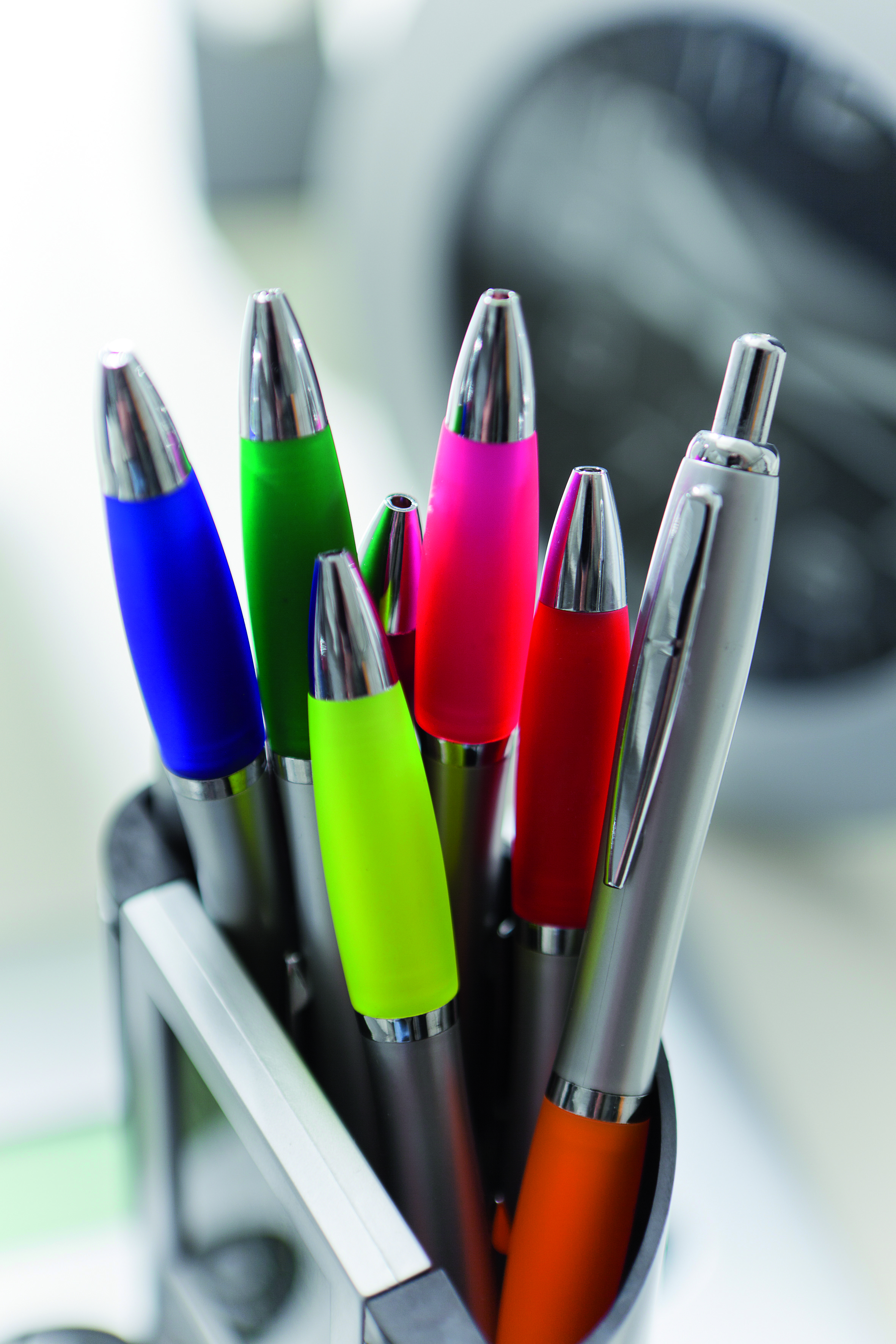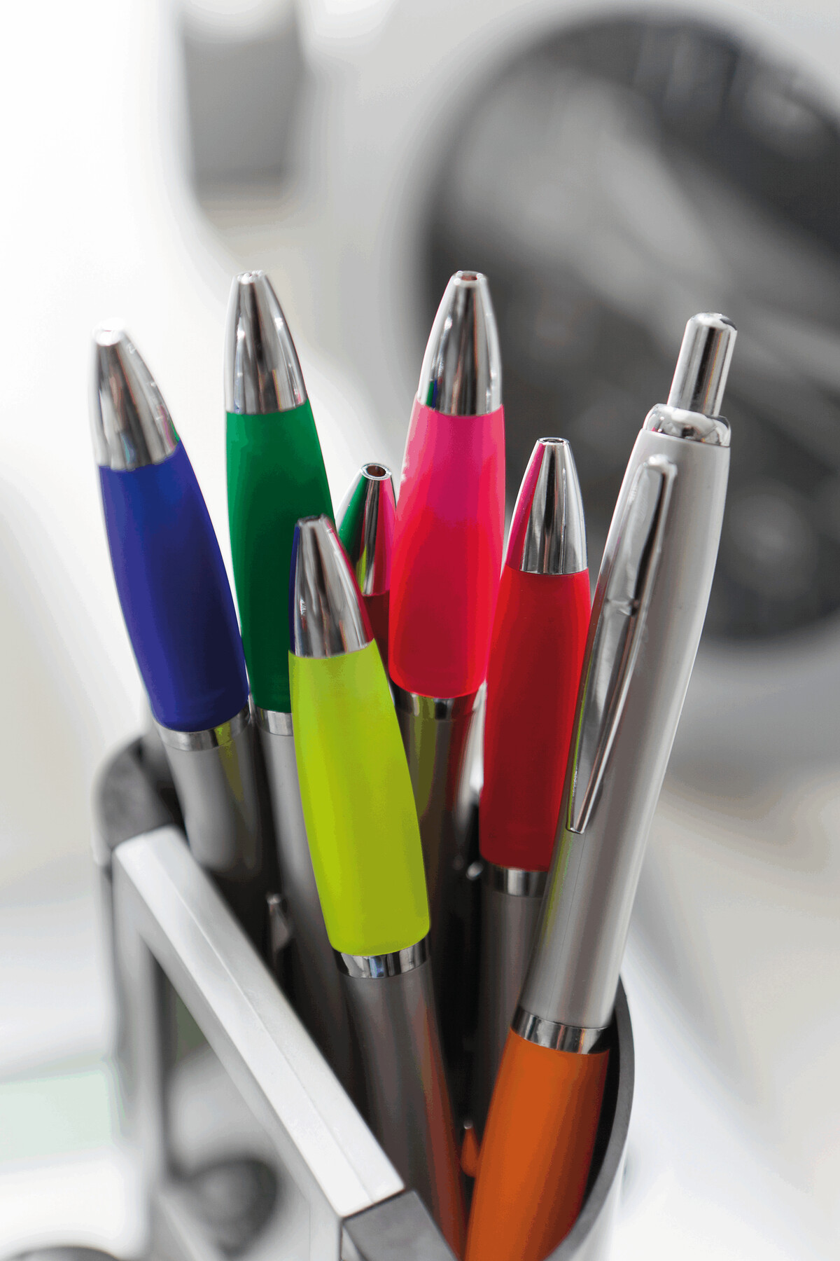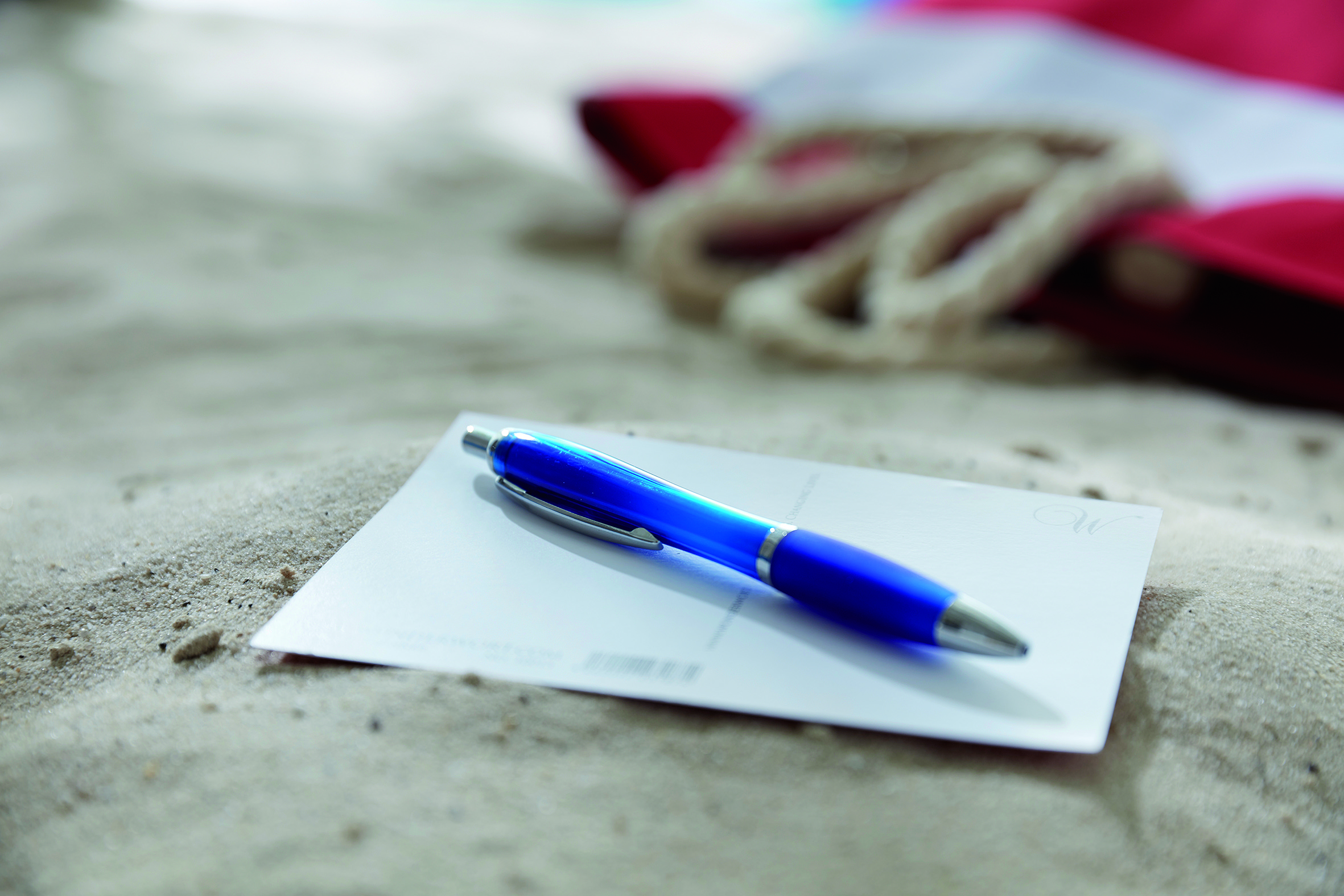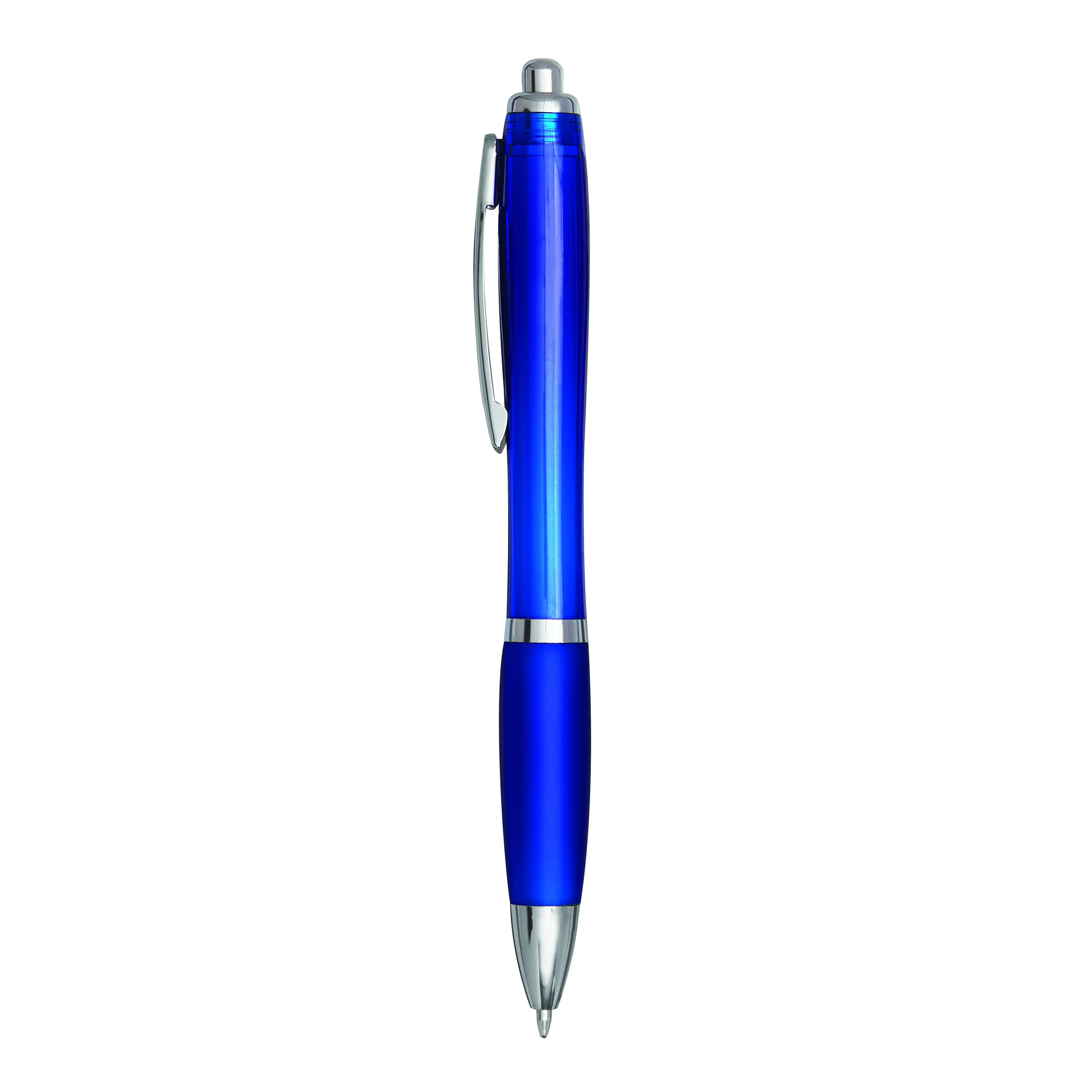 Długopis SWAY z profilowanym trzonem, mechanizmem na przycisk, niebieski wkład.