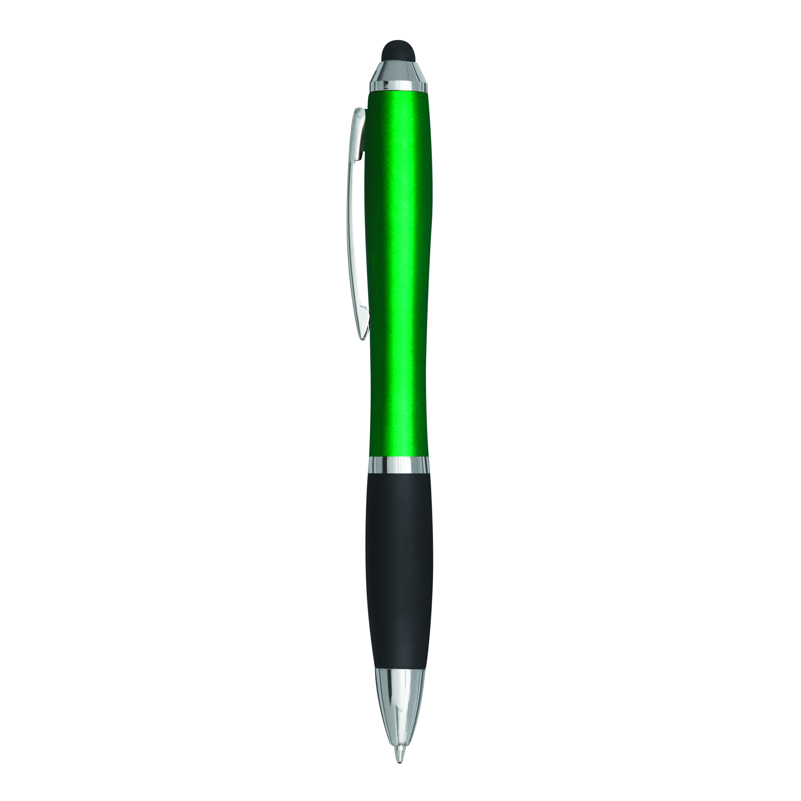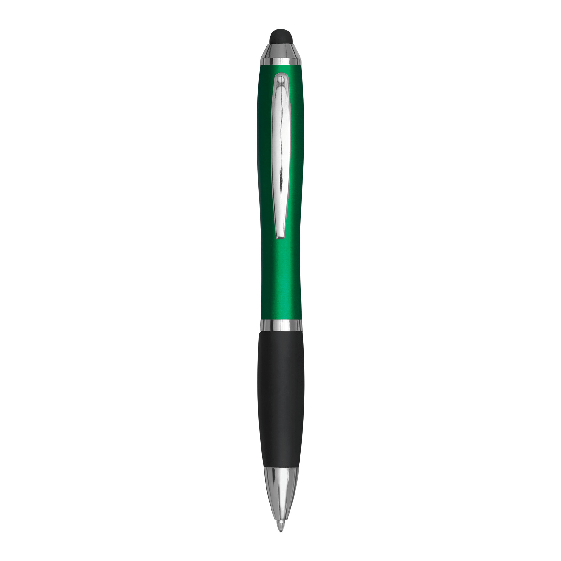 Długopis SWAY TOUCH z profilowanym korpusem, mechanizmem rotacyjnym, uchwytem pokrytym gumą i końcówką do ekranu dotykowego, z możliwością wymiany wkładu, tusz niebieski.