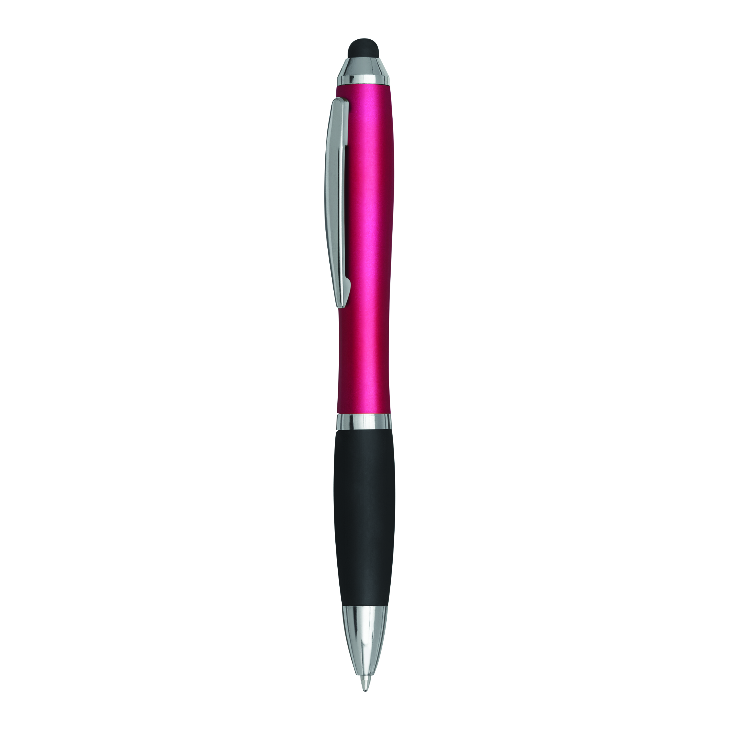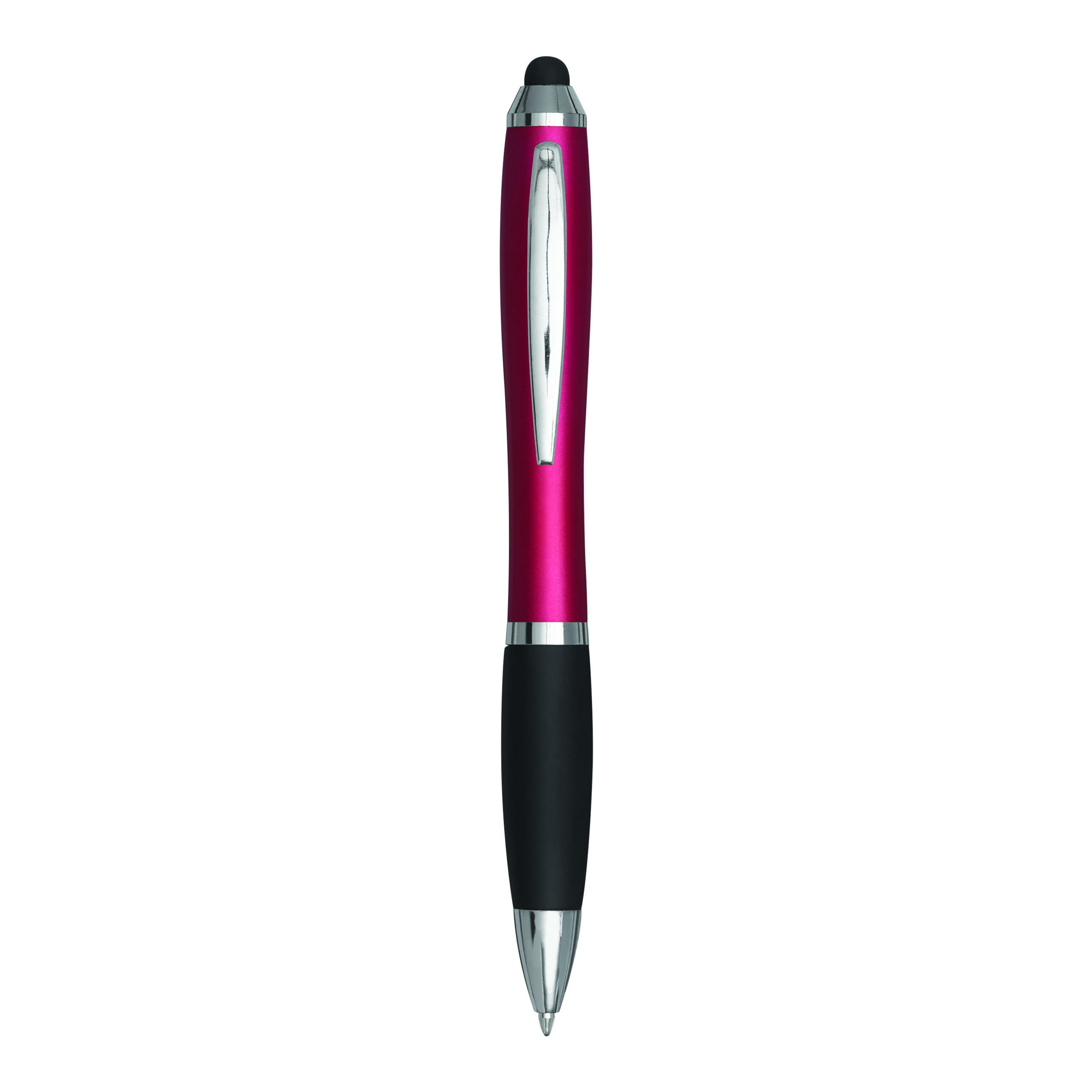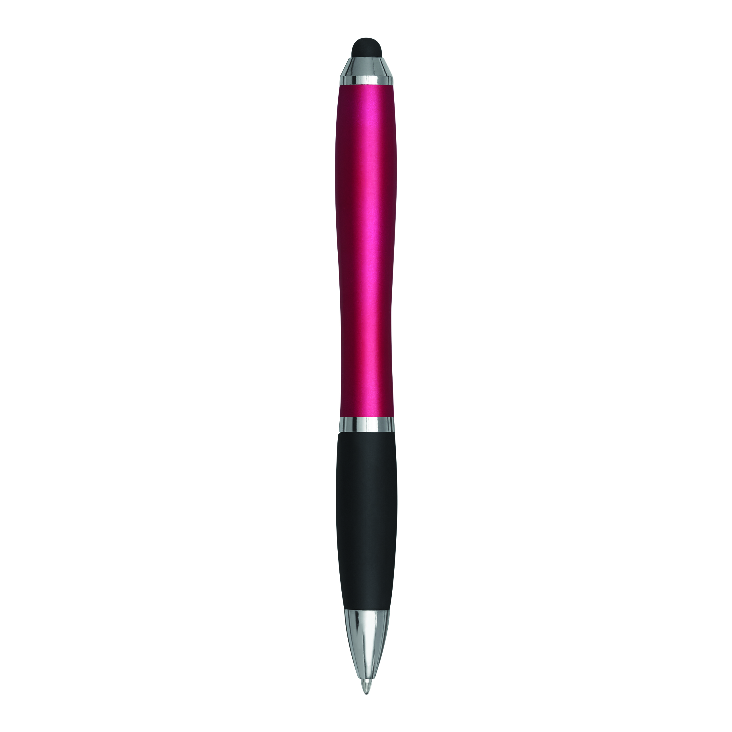 Długopis SWAY TOUCH z profilowanym korpusem, mechanizmem rotacyjnym, uchwytem pokrytym gumą i końcówką do ekranu dotykowego, z możliwością wymiany wkładu, tusz niebieski.