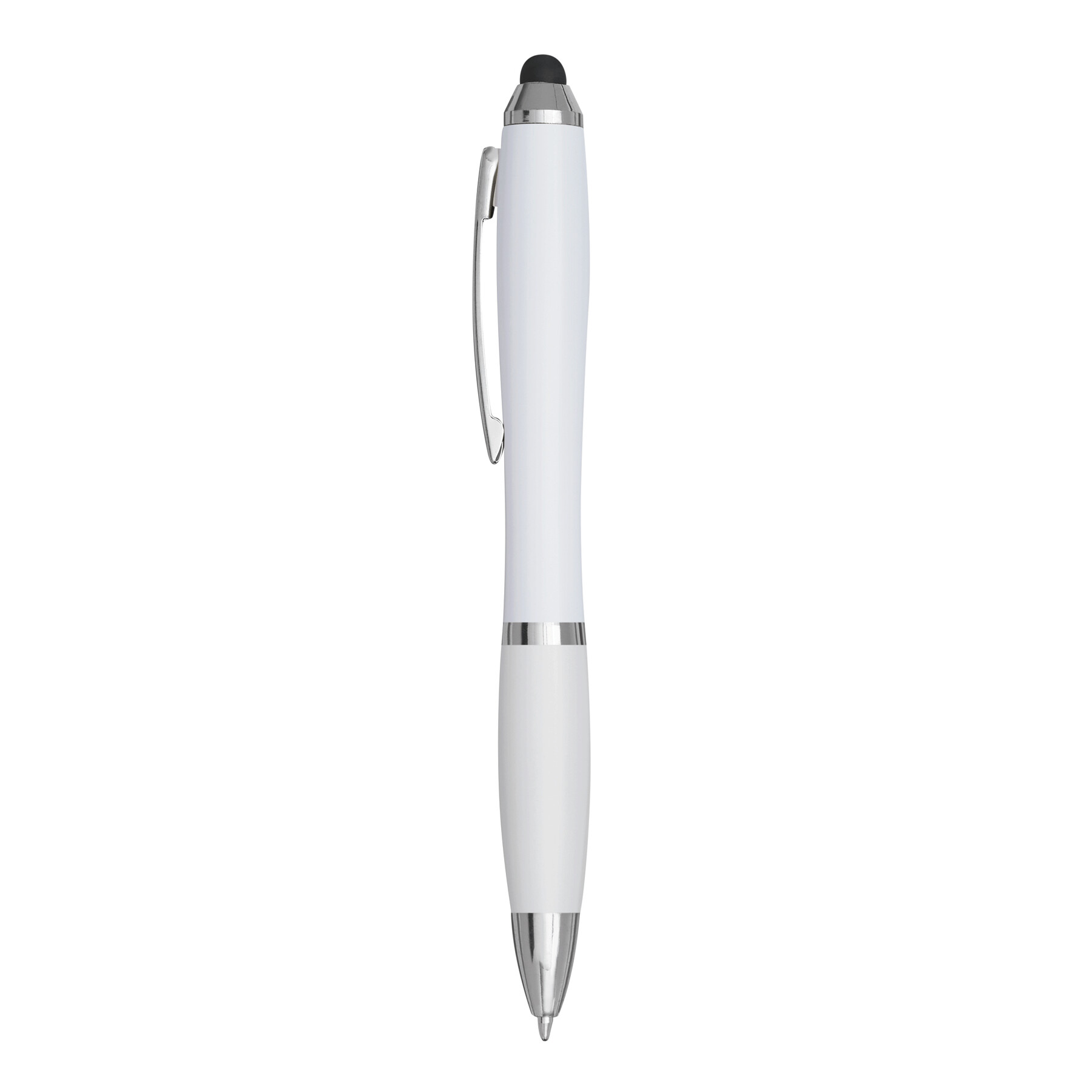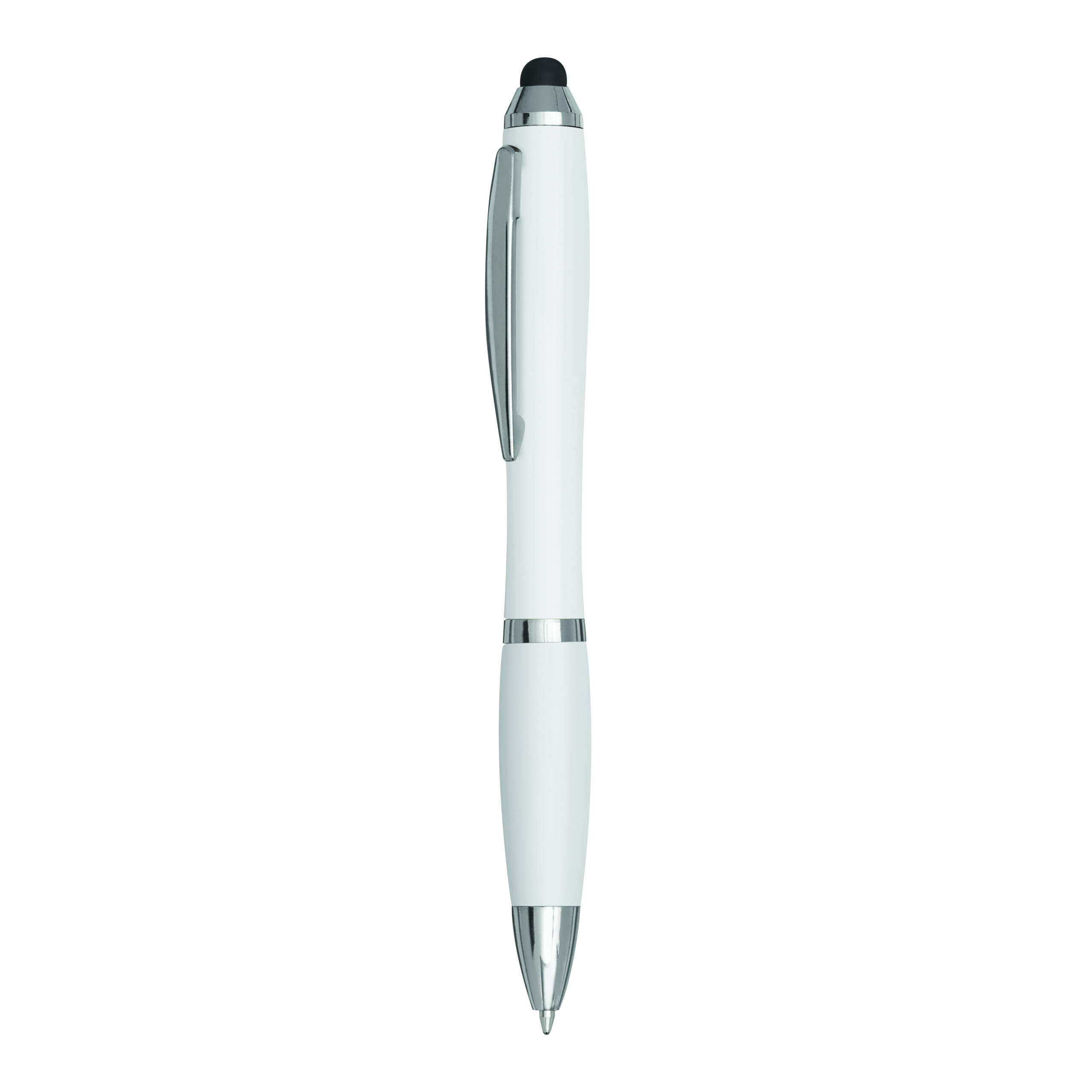 Długopis SWAY TOUCH z profilowanym korpusem, mechanizmem rotacyjnym, uchwytem pokrytym gumą i końcówką do ekranu dotykowego, z możliwością wymiany wkładu, tusz niebieski.