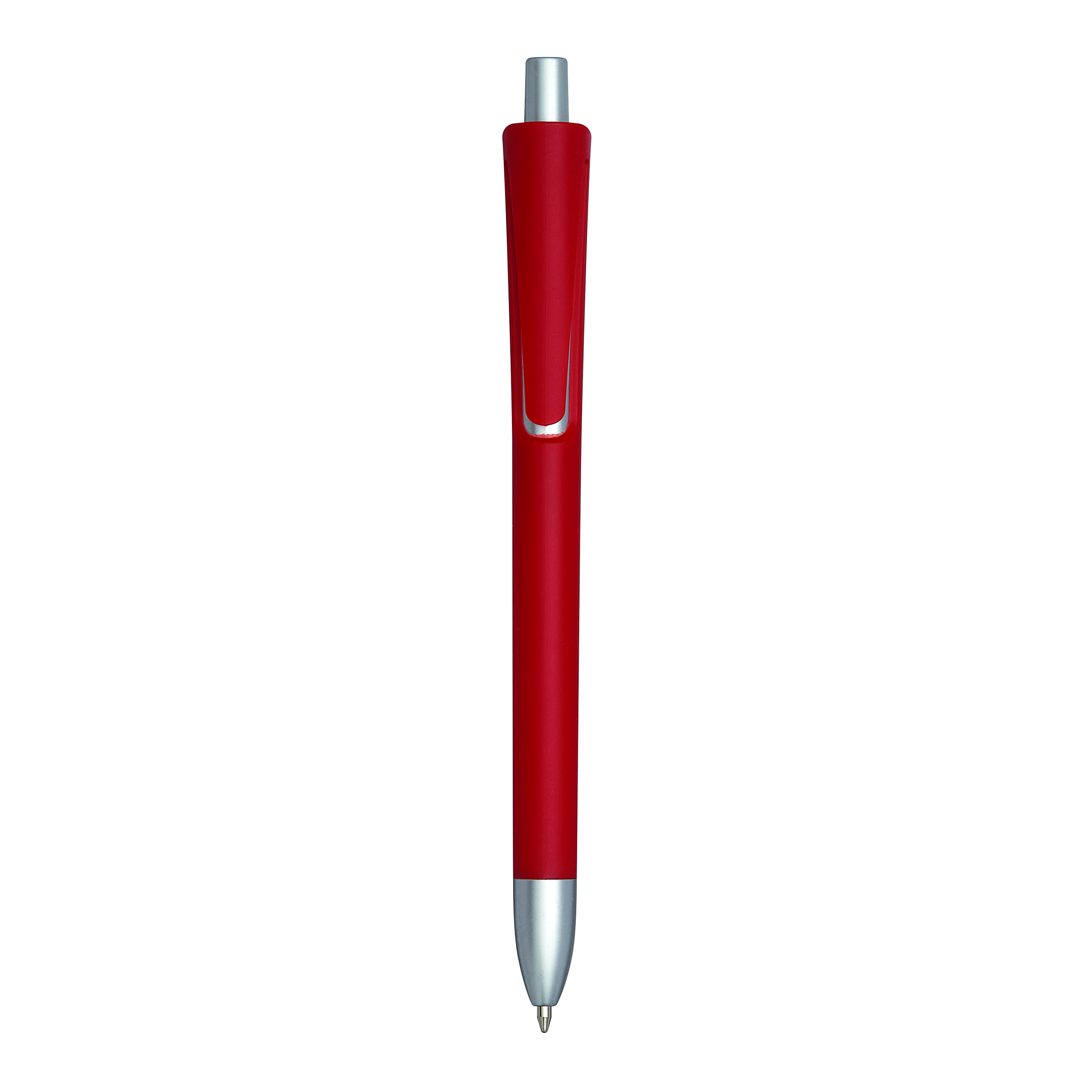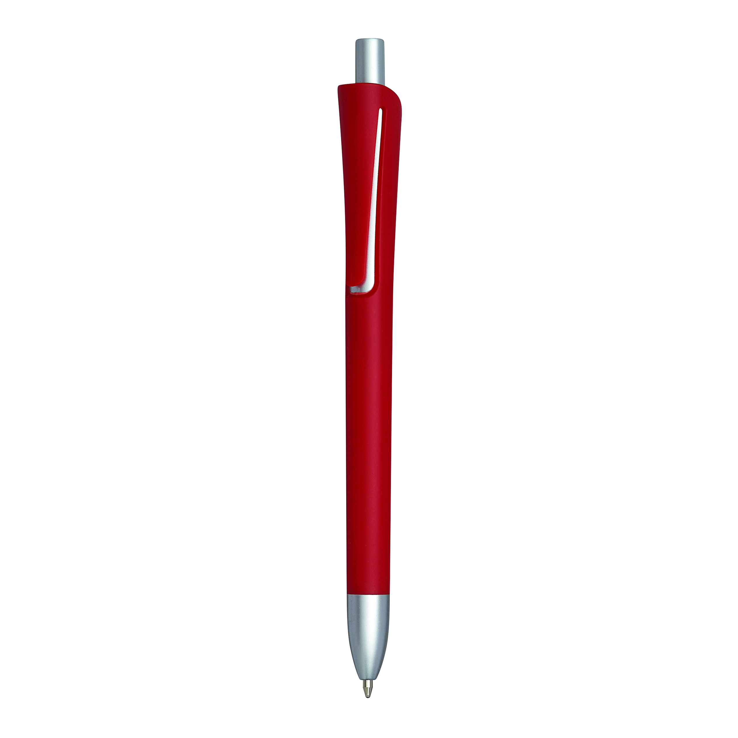 Długopis OREGON z mechanizmem przyciskowym, trzonkiem z tworzywa sztucznego, matowo-srebrnym akcentem pod klipem, na przycisku i obsadce, długość pisania około 800 - 1000 m, czarny tusz.