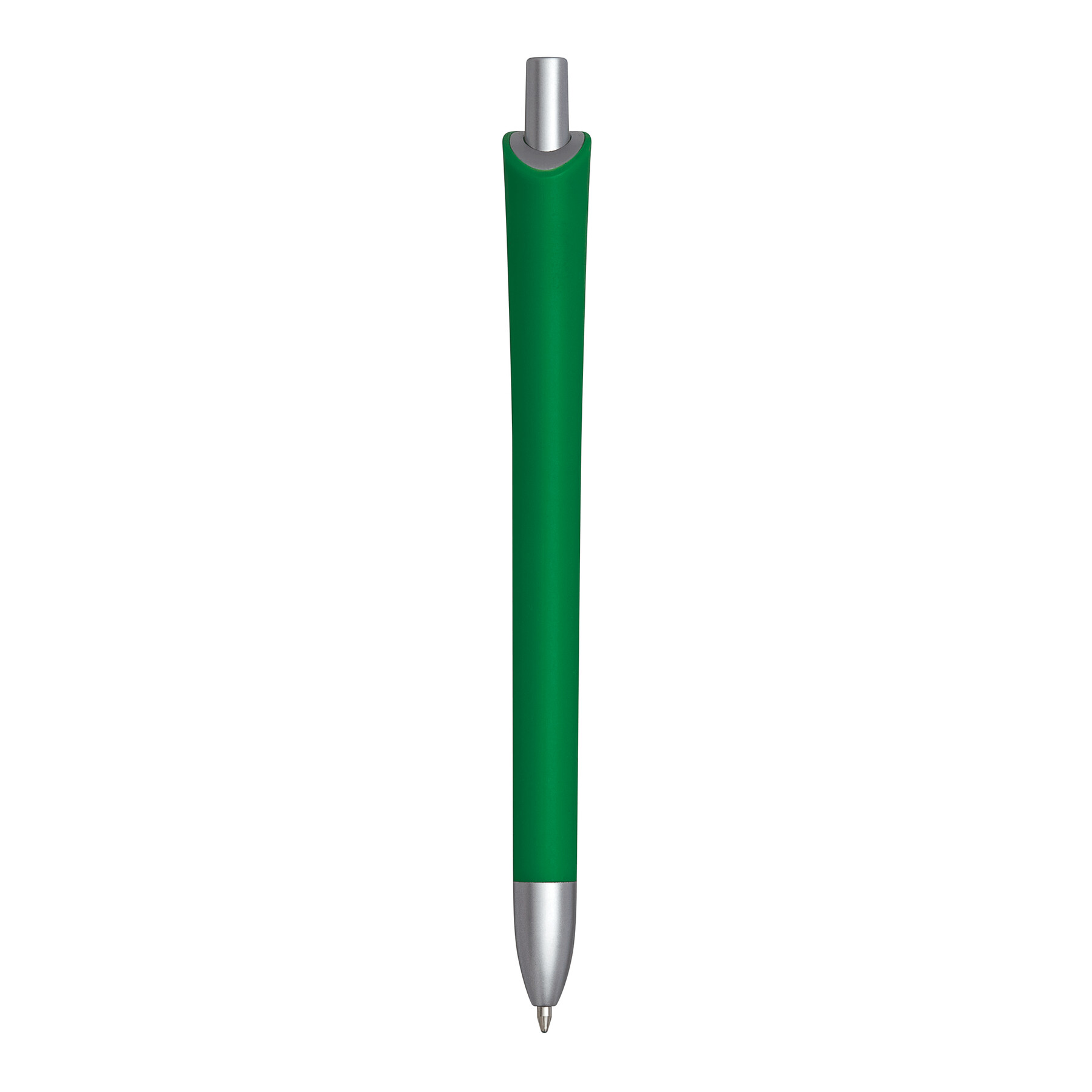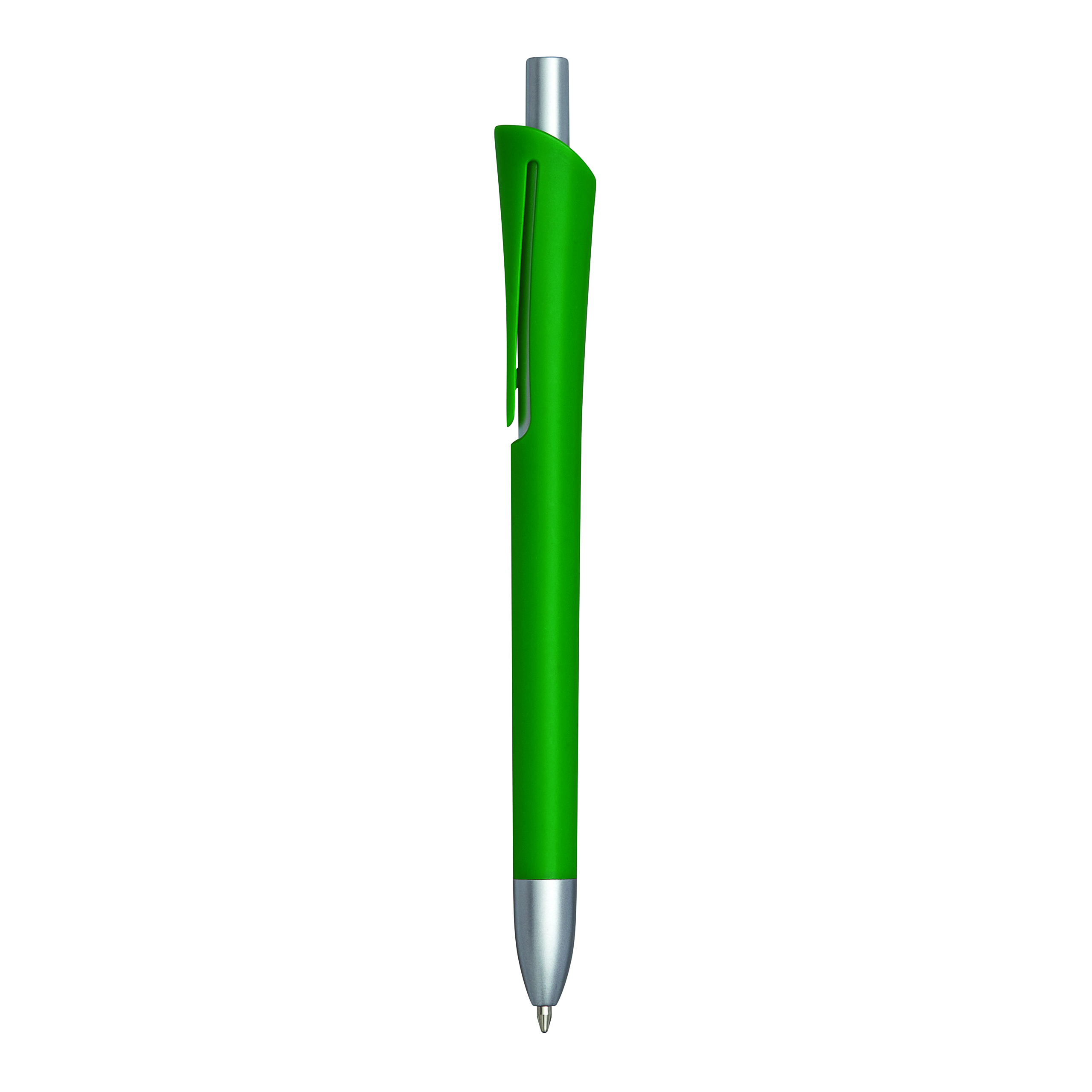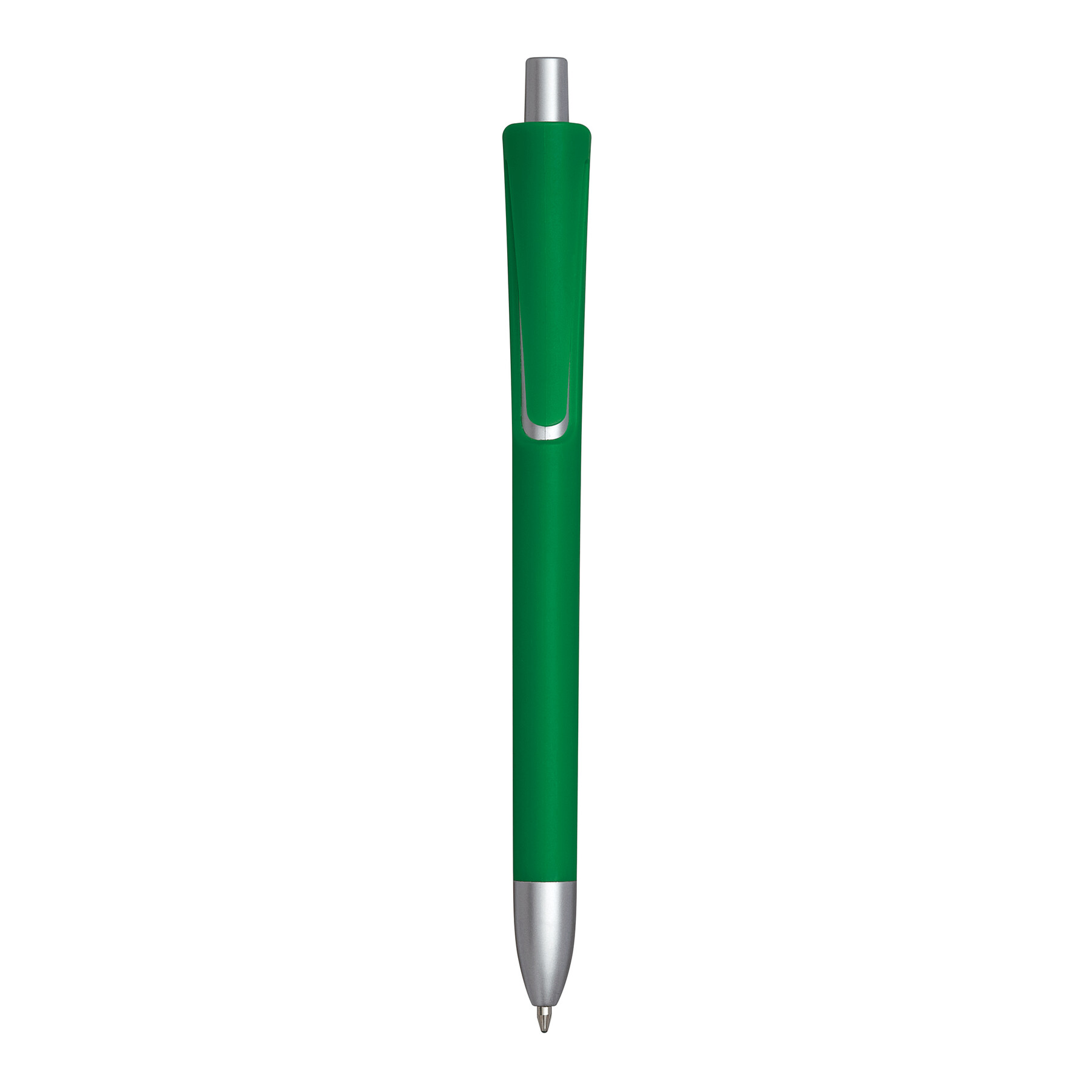 Długopis OREGON z mechanizmem przyciskowym, trzonkiem z tworzywa sztucznego, matowo-srebrnym akcentem pod klipem, na przycisku i obsadce, długość pisania około 800 - 1000 m, czarny tusz.
