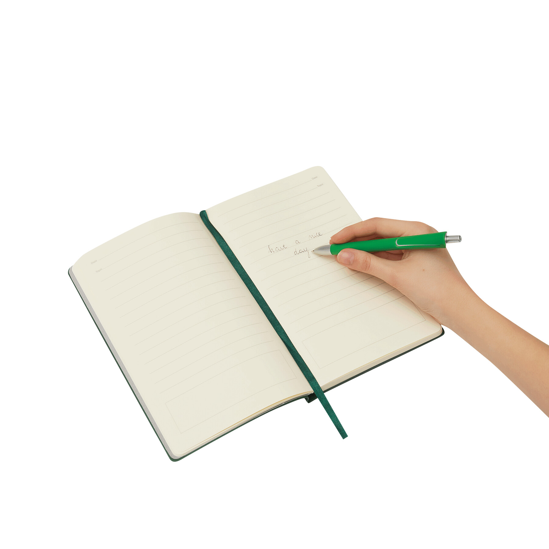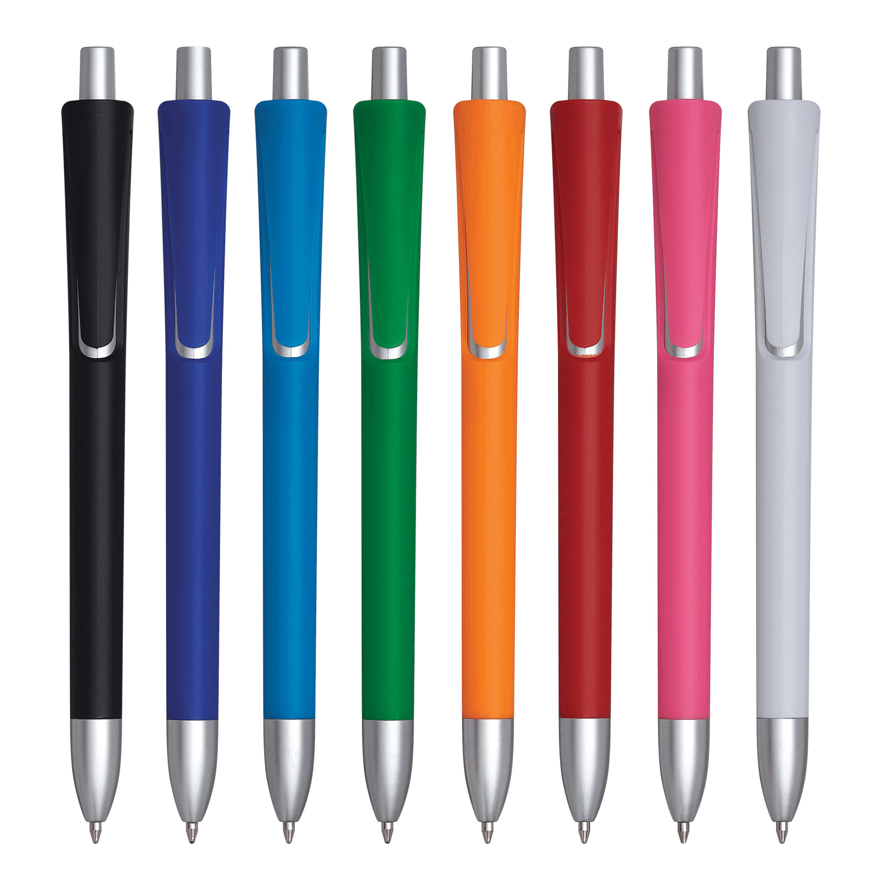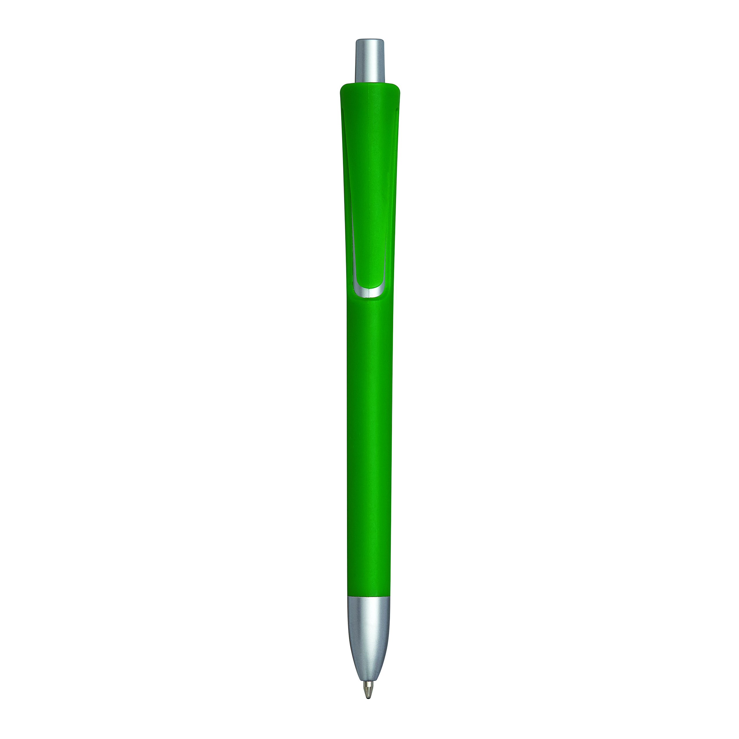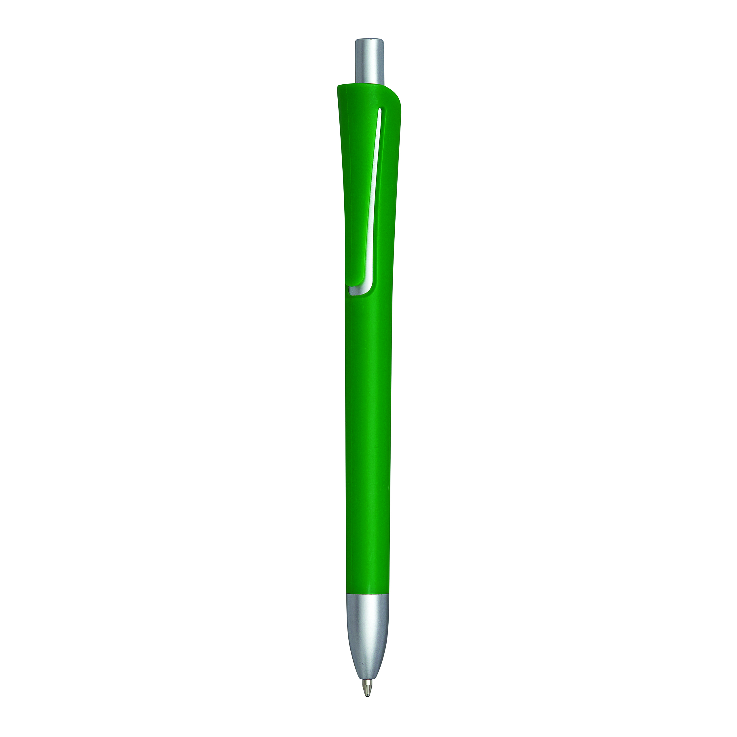 Długopis OREGON z mechanizmem przyciskowym, trzonkiem z tworzywa sztucznego, matowo-srebrnym akcentem pod klipem, na przycisku i obsadce, długość pisania około 800 - 1000 m, czarny tusz.