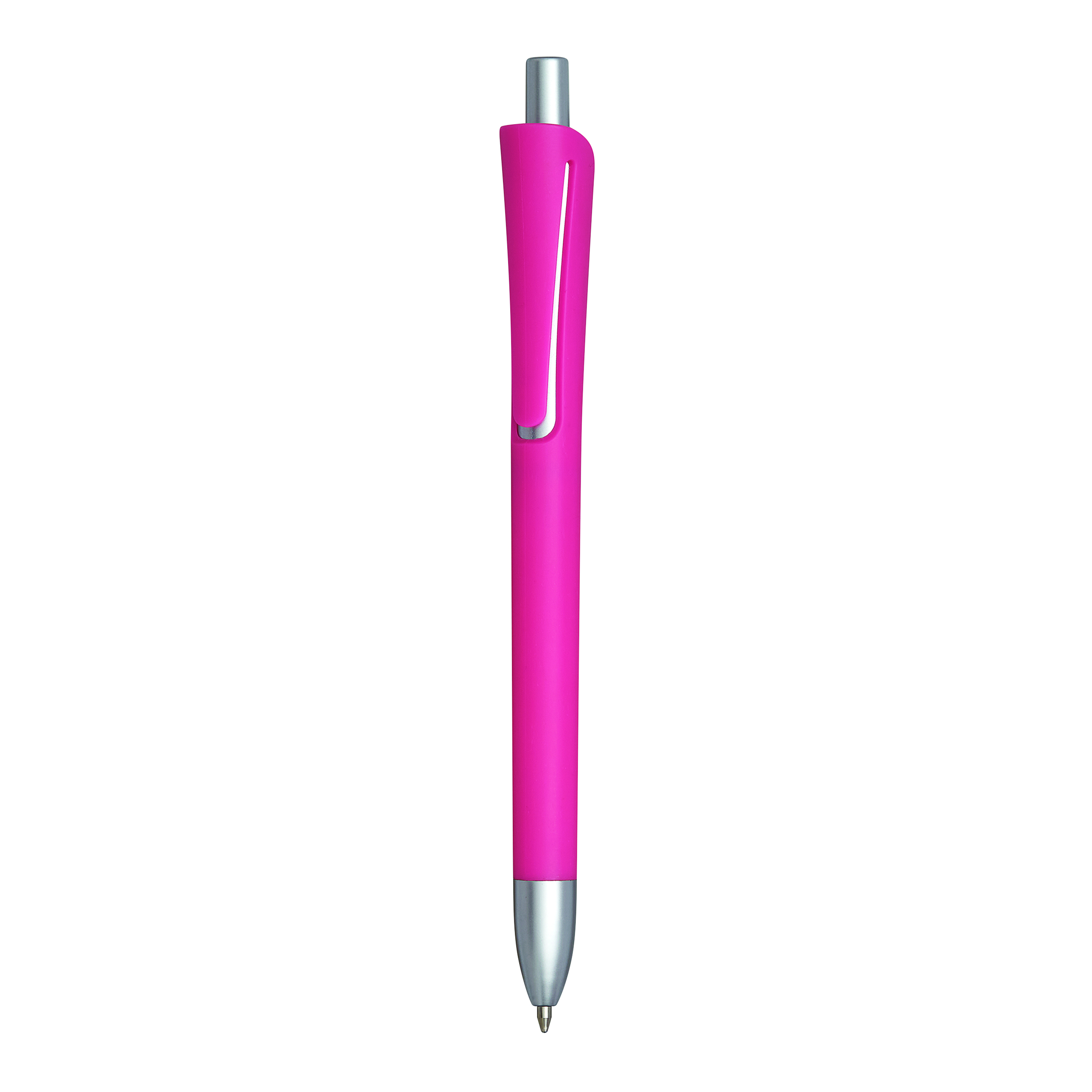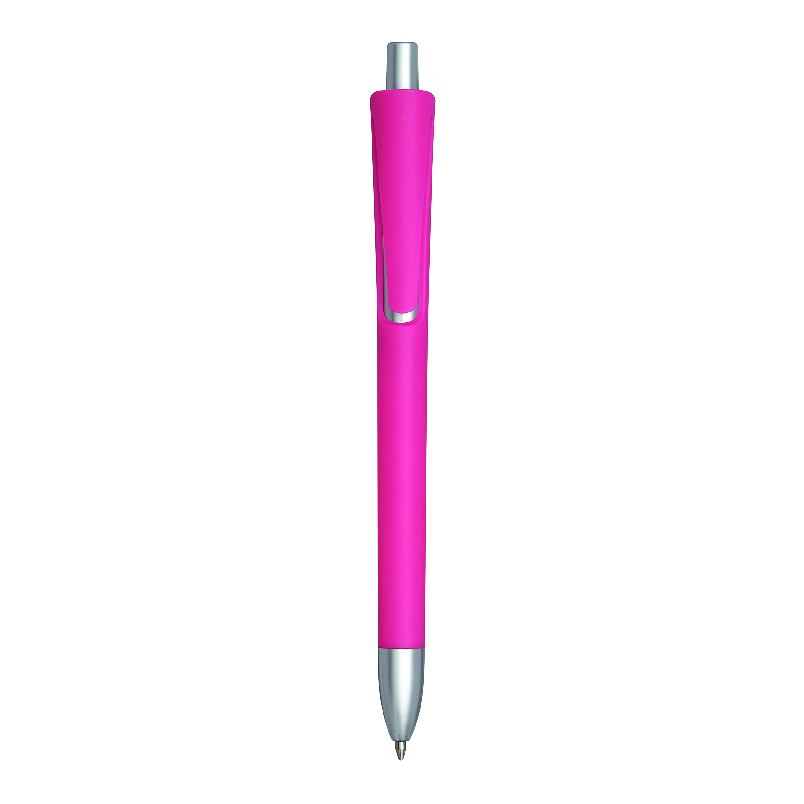 Długopis OREGON z mechanizmem przyciskowym, trzonkiem z tworzywa sztucznego, matowo-srebrnym akcentem pod klipem, na przycisku i obsadce, długość pisania około 800 - 1000 m, czarny tusz.