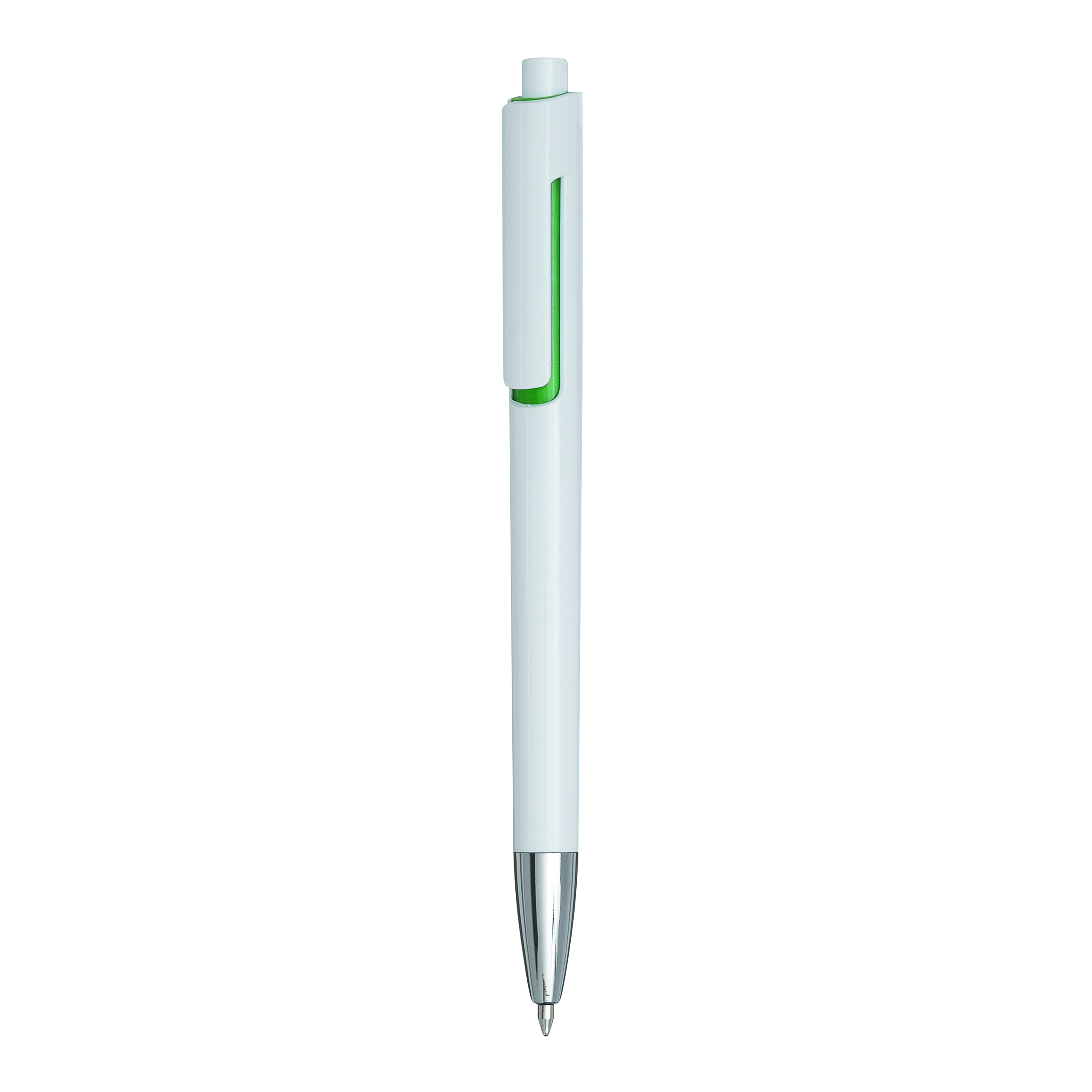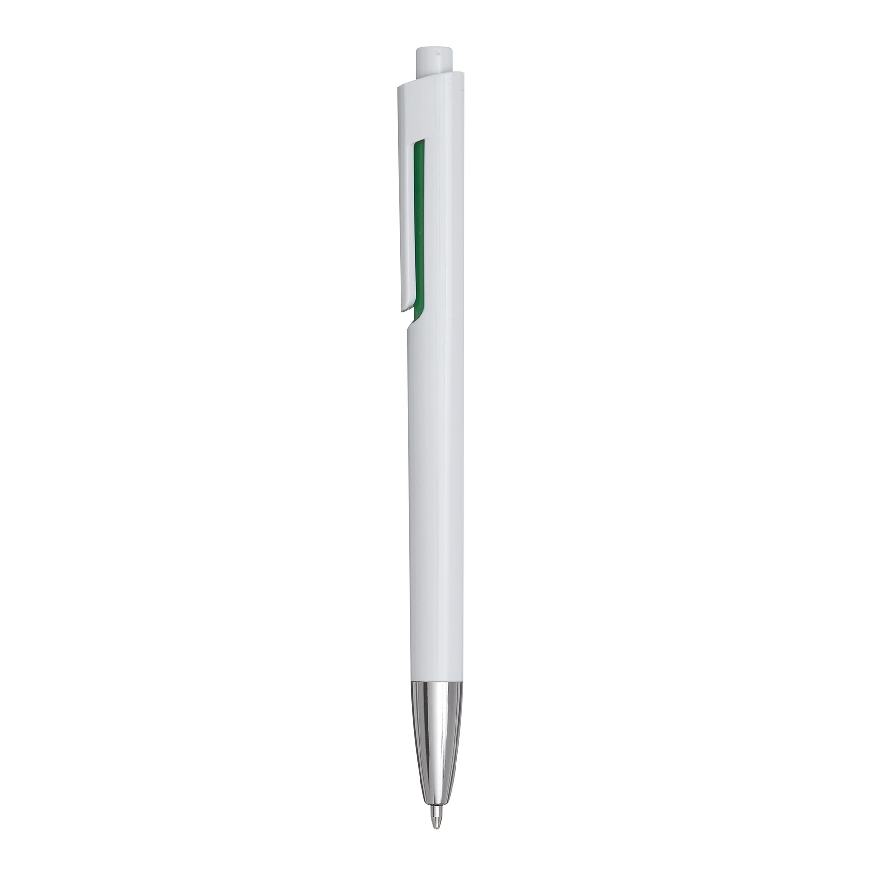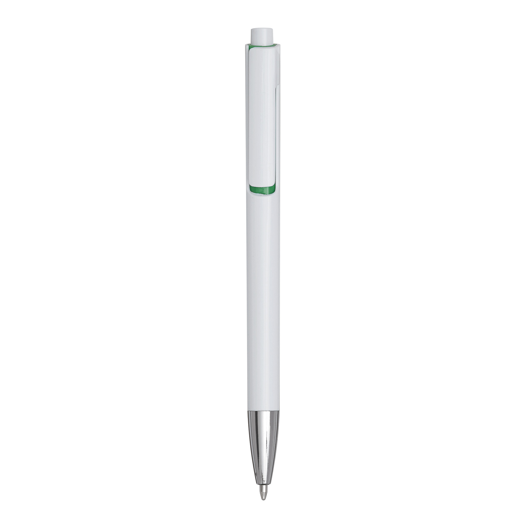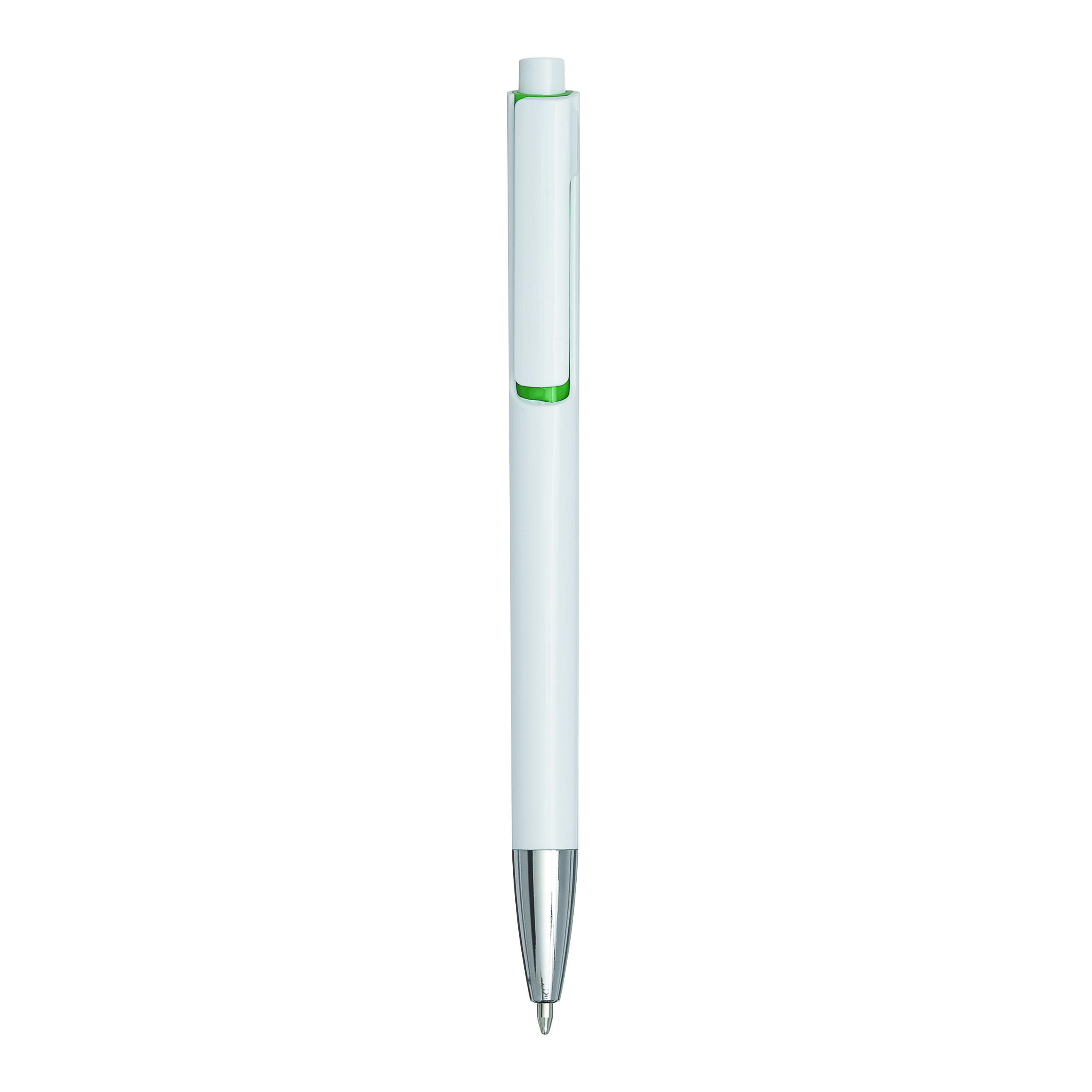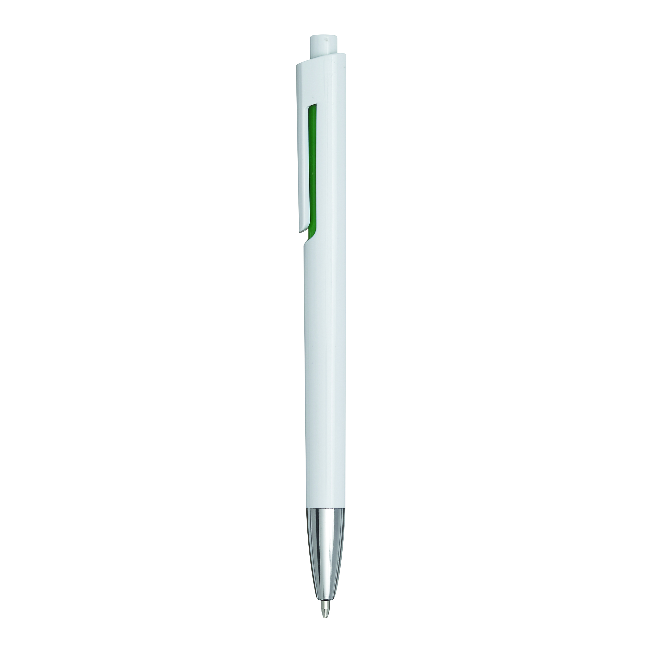 Długopis MIAMI z mechanizmem przyciskowym, kolorowym akcentem pod klipem, dużym wkładem z czarnym tuszem, długość pisania ok. 1000 m.