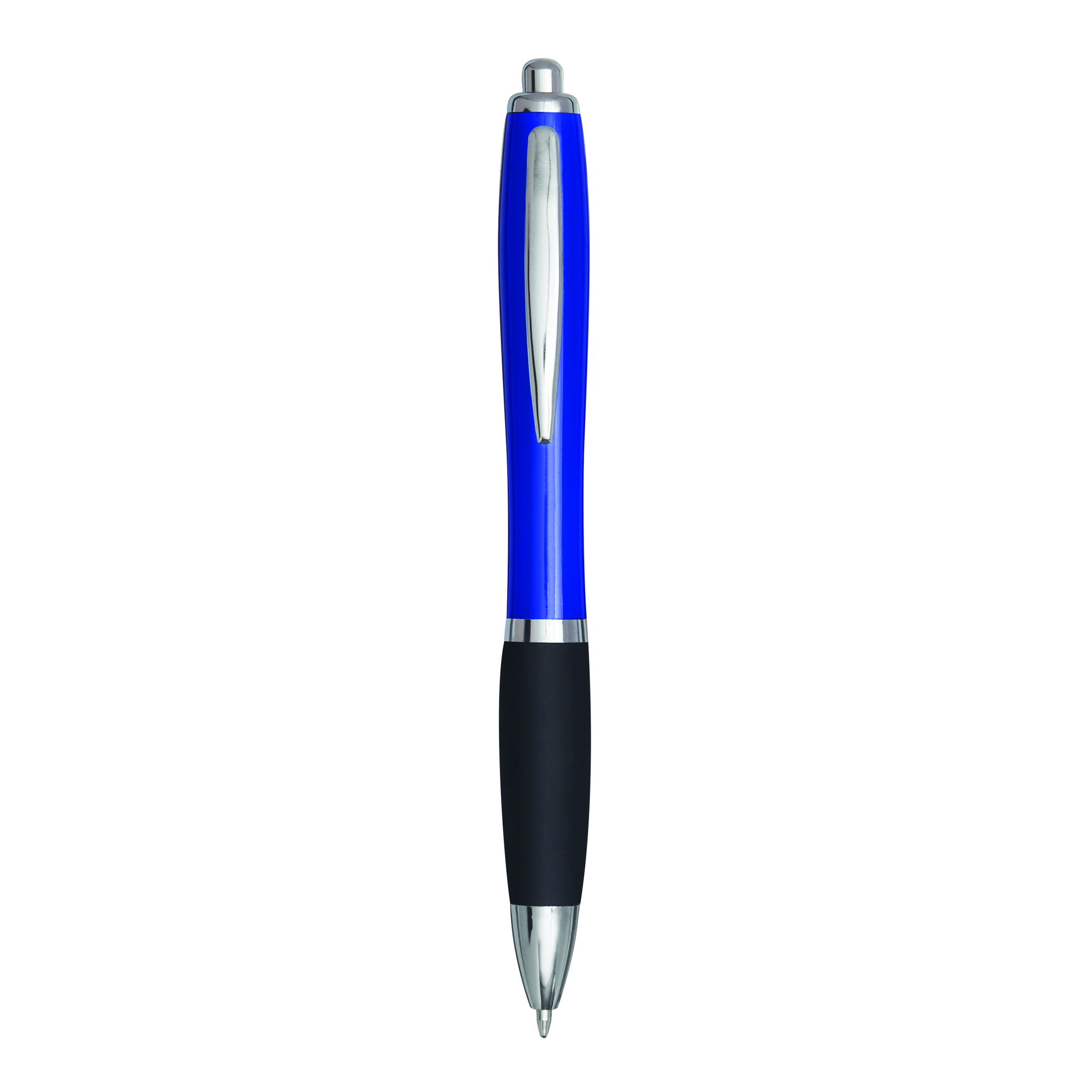 Długopis SWAY z profilowanym trzonem, mechanizmem na przycisk, niebieski wkład.