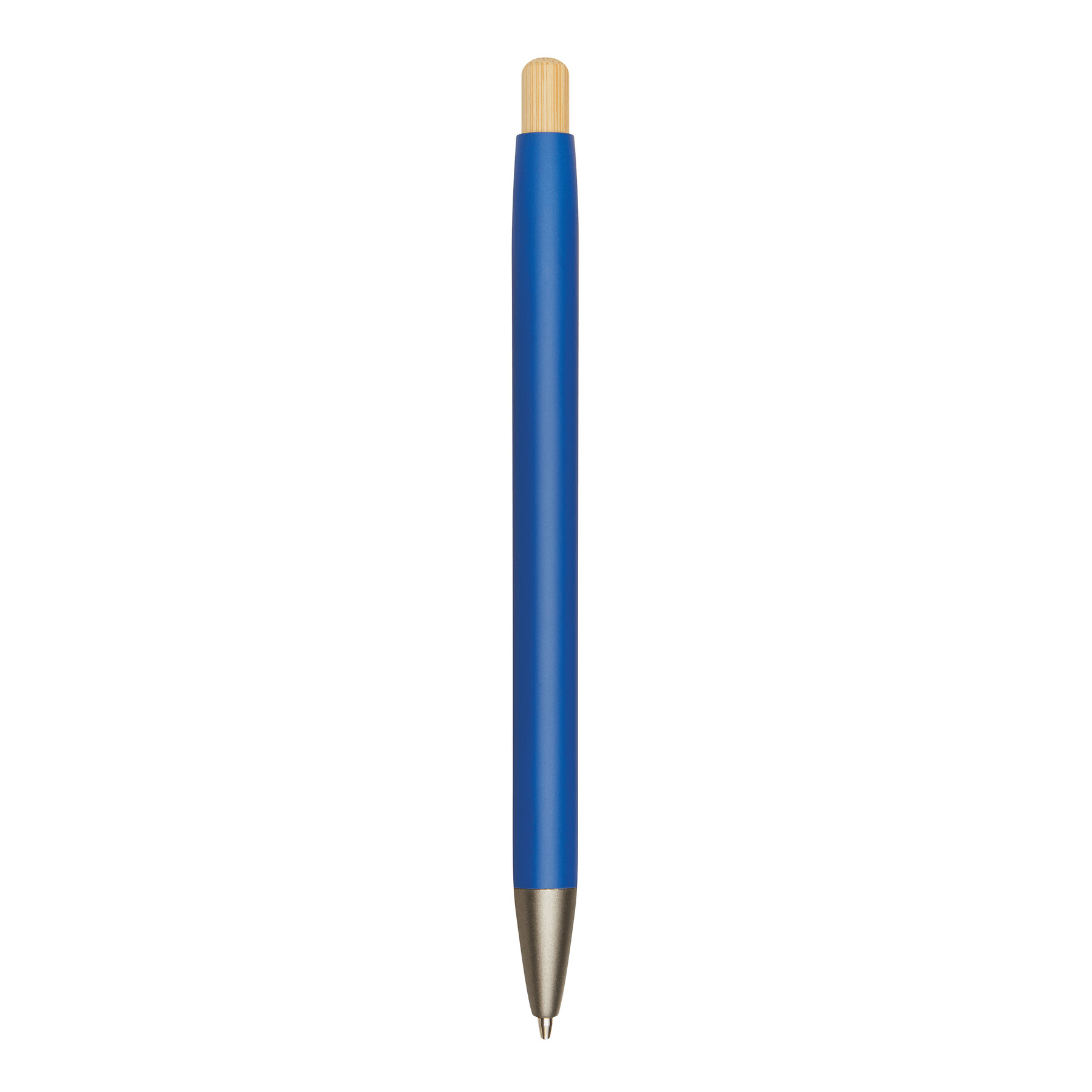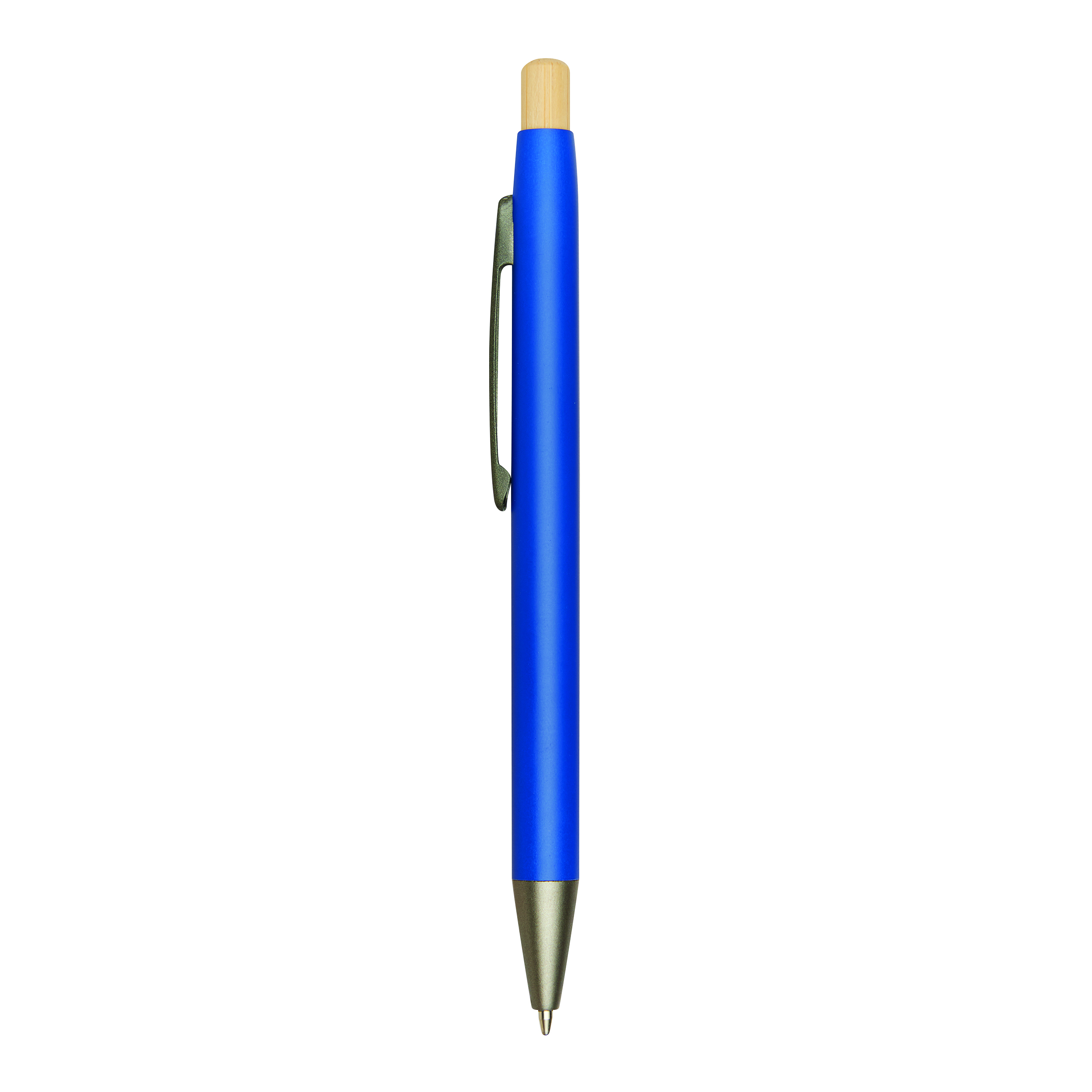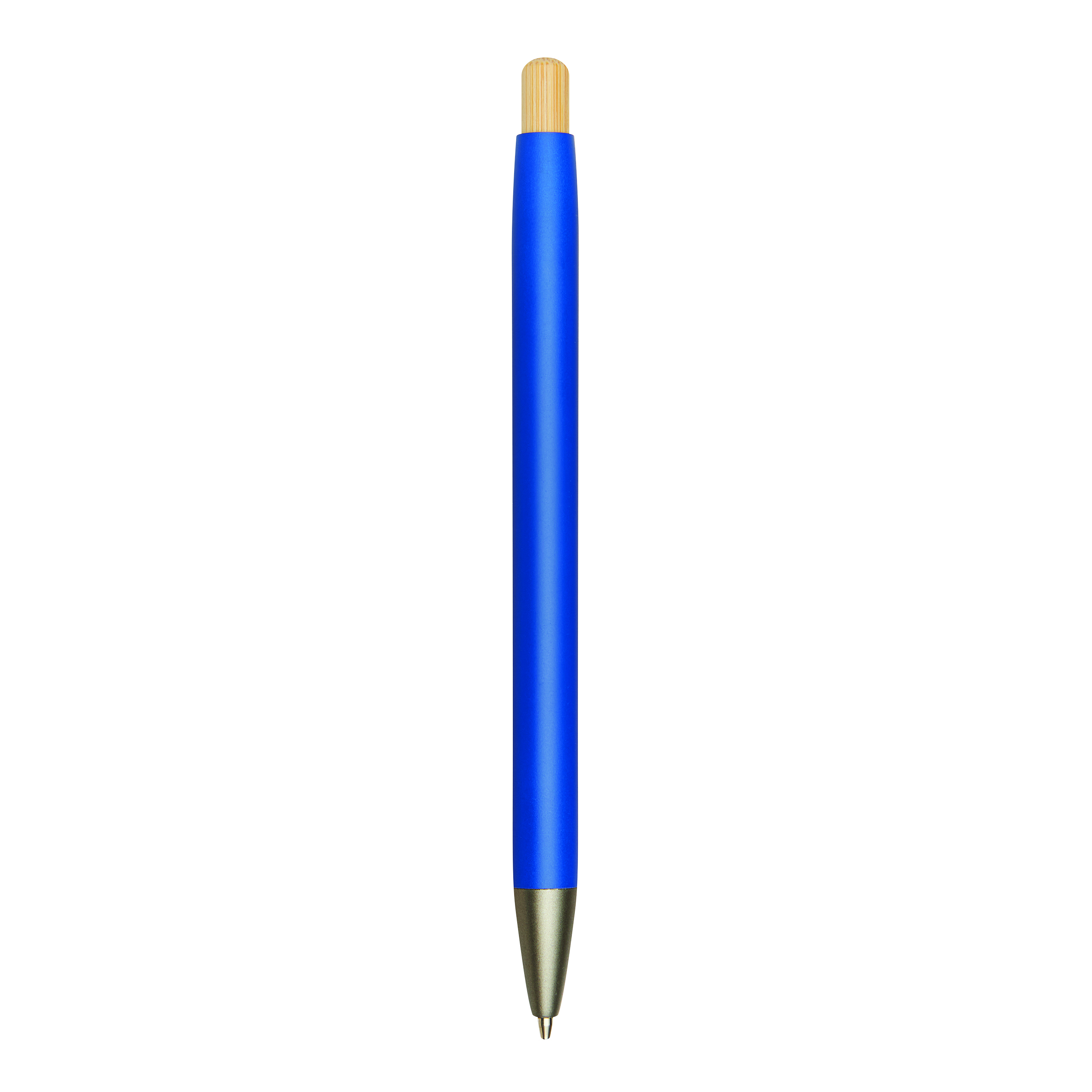 Długopis aluminiowy BAMBOO PUSHER z matowym metalowym korpusem wykonanym z aluminium pochodzącego z recyklingu. Posiada mechanizm naciskowy z bambusowym przyciskem i niebieski tusz.