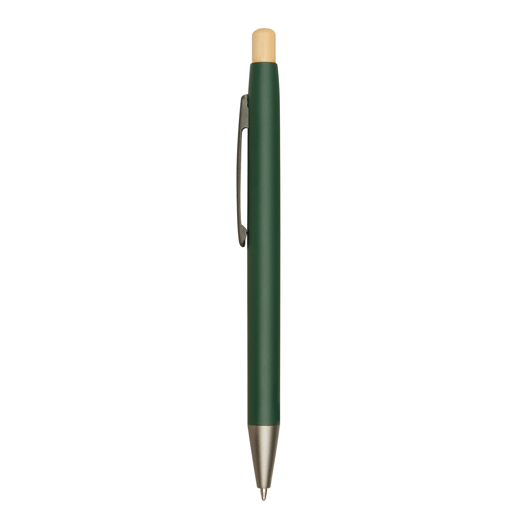 Długopis aluminiowy BAMBOO PUSHER z matowym metalowym korpusem wykonanym z aluminium pochodzącego z recyklingu. Posiada mechanizm naciskowy z bambusowym przyciskem i niebieski tusz.