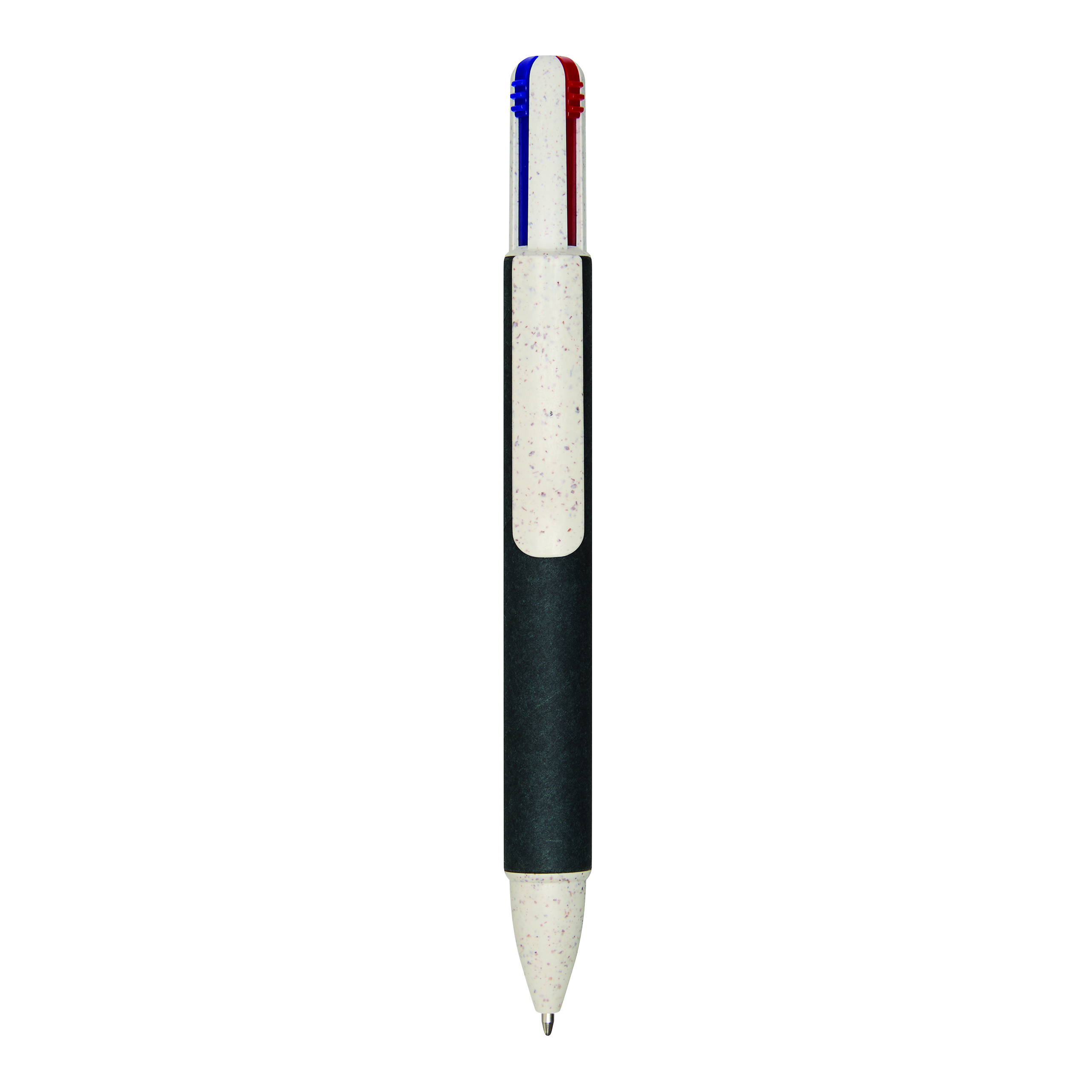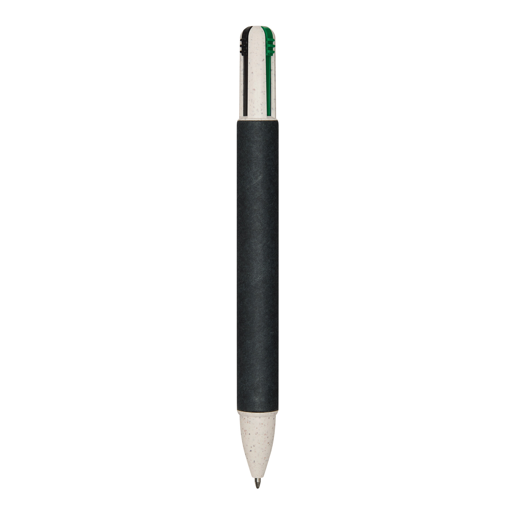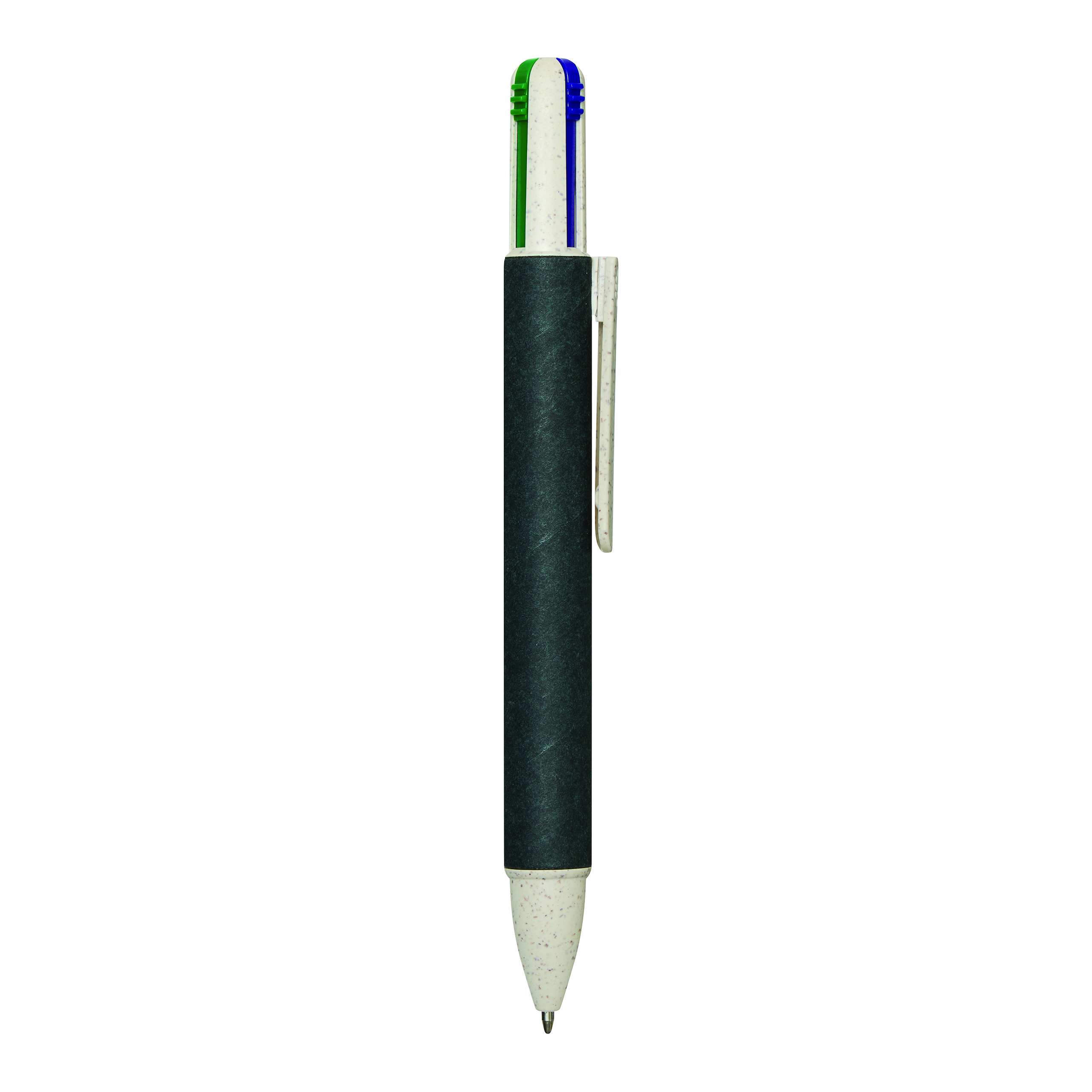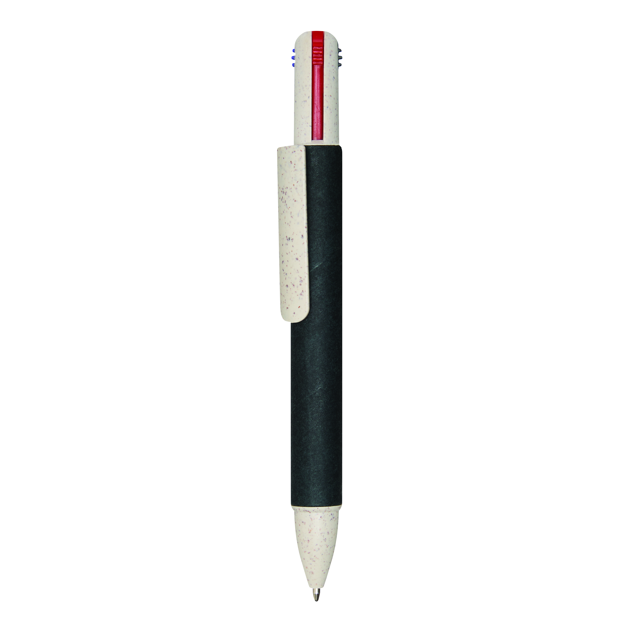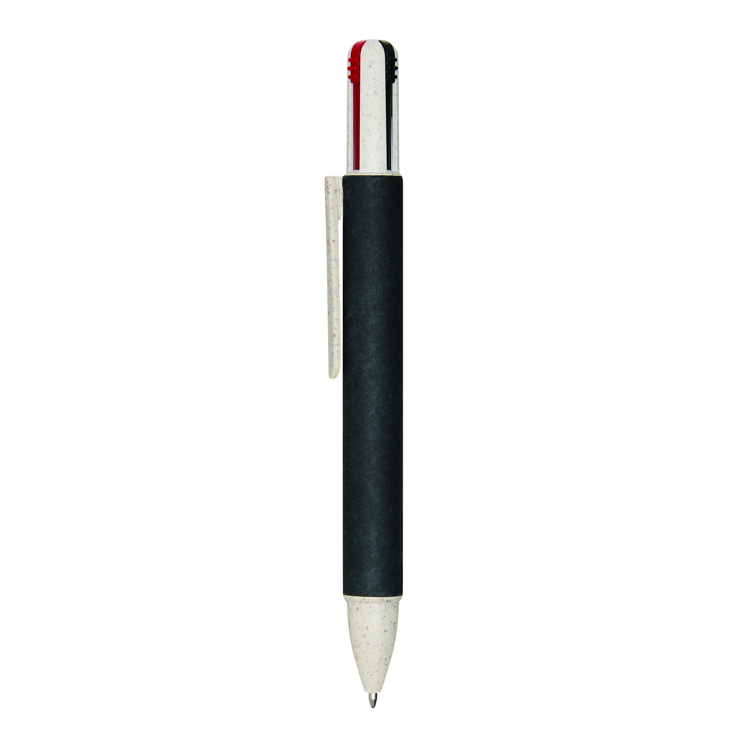 Długopis MUCO z czterema kolorami tuszu. Wykonany jest ze słomy pszenicznej i ABS, korpus pokryty został kartonem z recyklingu. Posiada mechanizm typu push i wkłady do długopisu w kolorach: czarnym, czerwonym, niebieskim i czerwonym.
