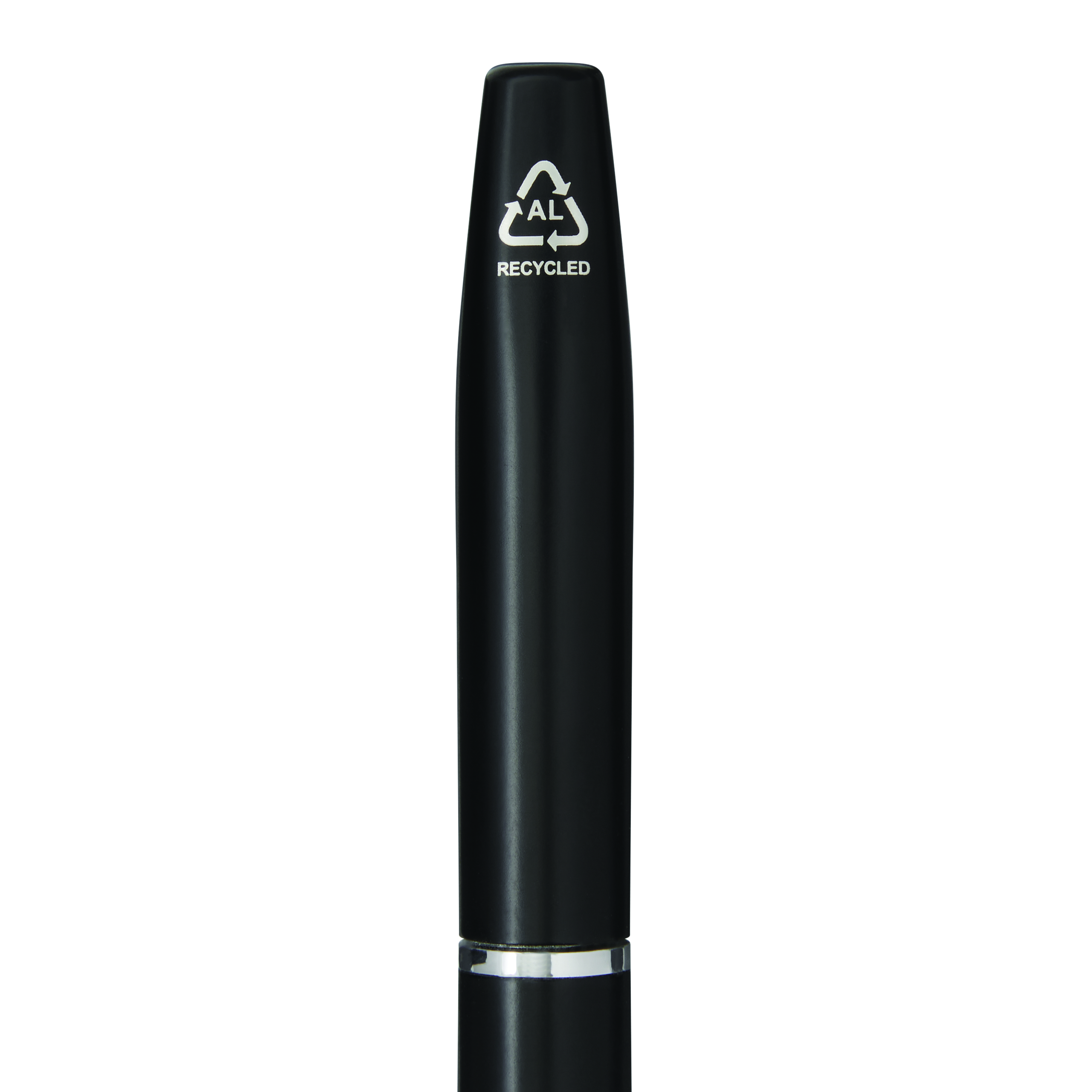 Aluminiowy długopis EXPRESSIVE. Ma matowy, metalowy korpus, wykonany z aluminium pochodzącego z recyklingu, mechanizm obrotowy oraz srebrny klips i pierścień. Górna część długopisu jest pokryta błyszczącą, srebrną warstwą umożliwiającą grawerowanie. Długopis posiada metalowy wkład i niebieski tusz. Zapakowany jest w pudełko.