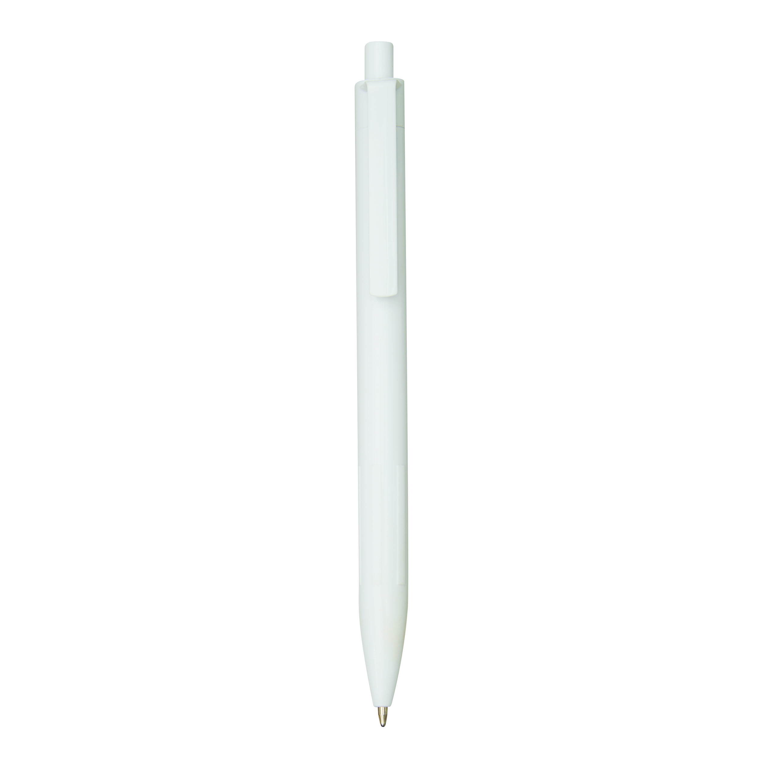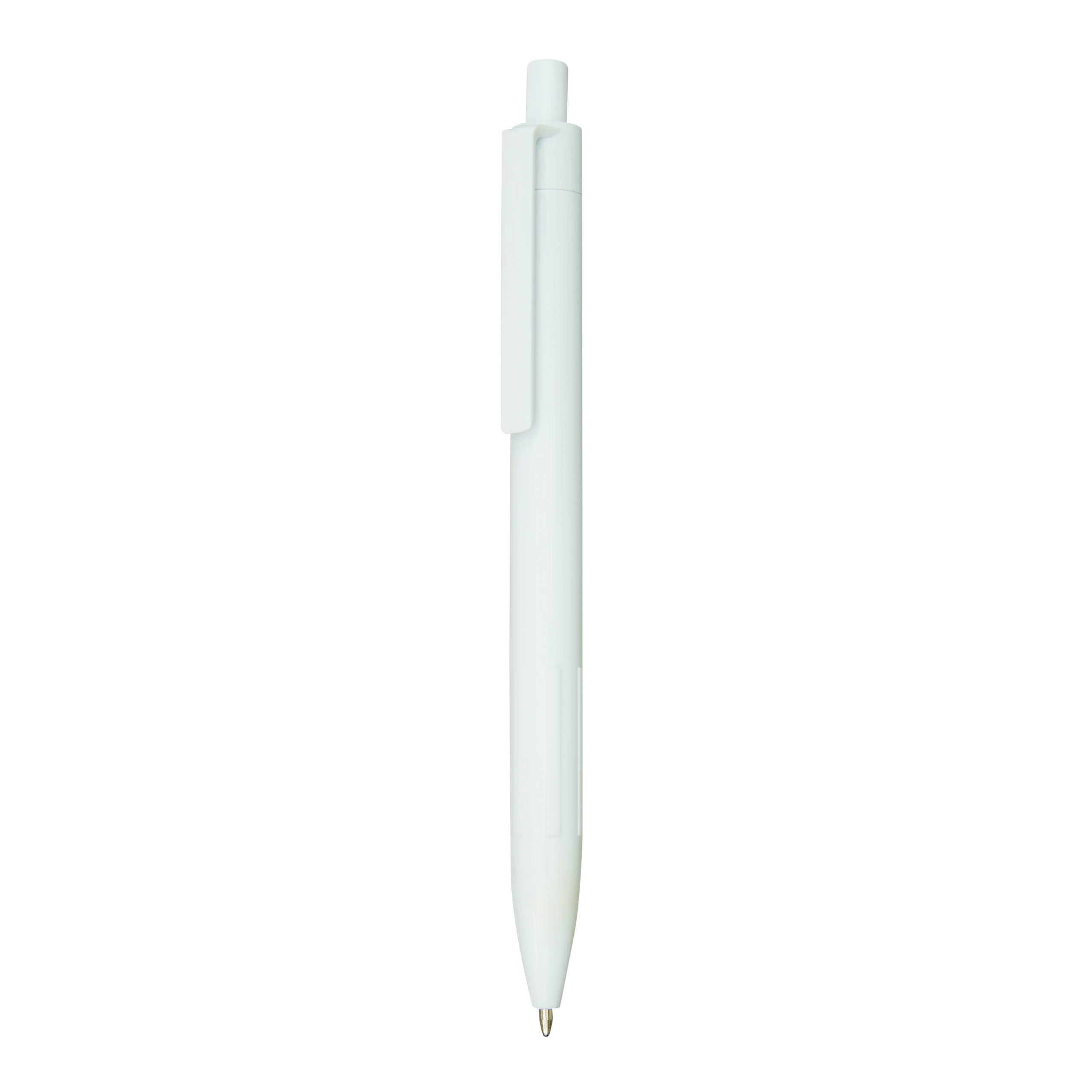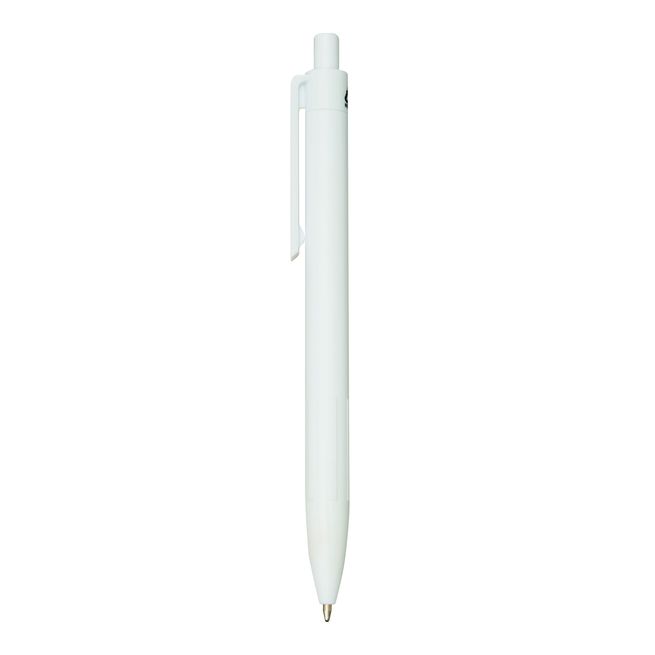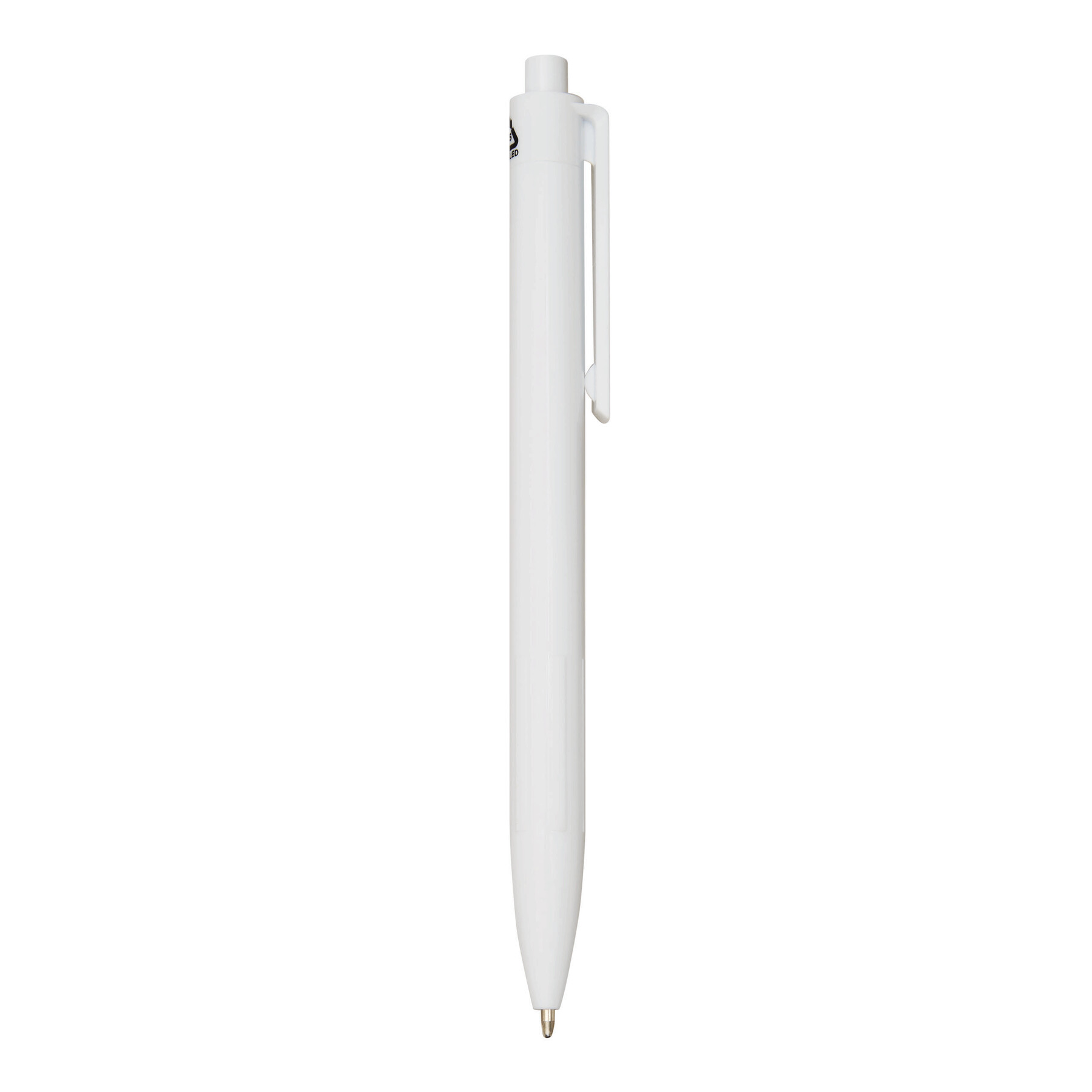 Długopis STACCATO. Korpus wykonany jest z plastiku z recyklingu. Posiada żłobioną strefę uchwytu, mechanizm naciskowy oraz niebieski tusz.
