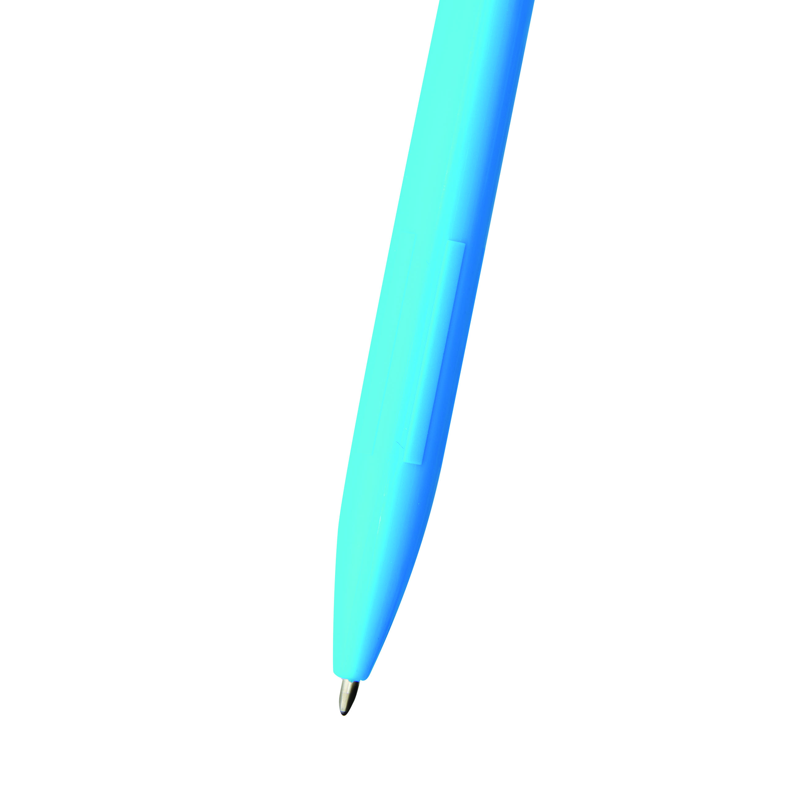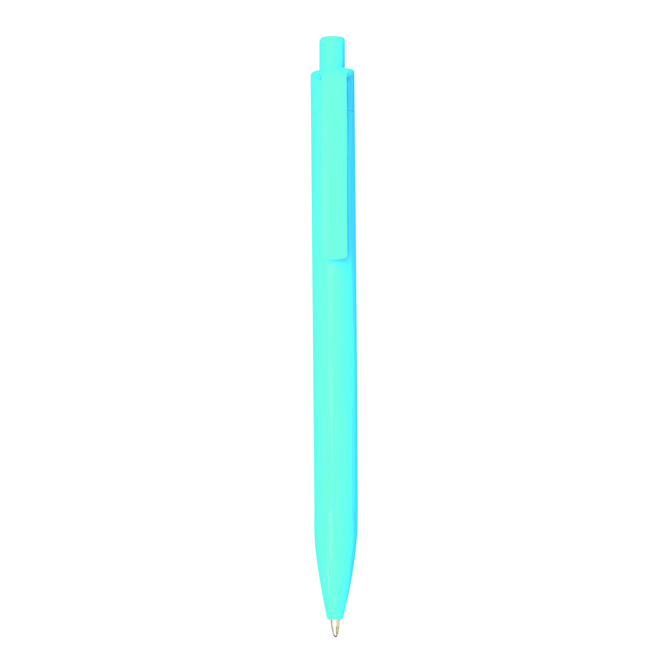 Długopis STACCATO. Korpus wykonany jest z plastiku z recyklingu. Posiada żłobioną strefę uchwytu, mechanizm naciskowy oraz niebieski tusz.