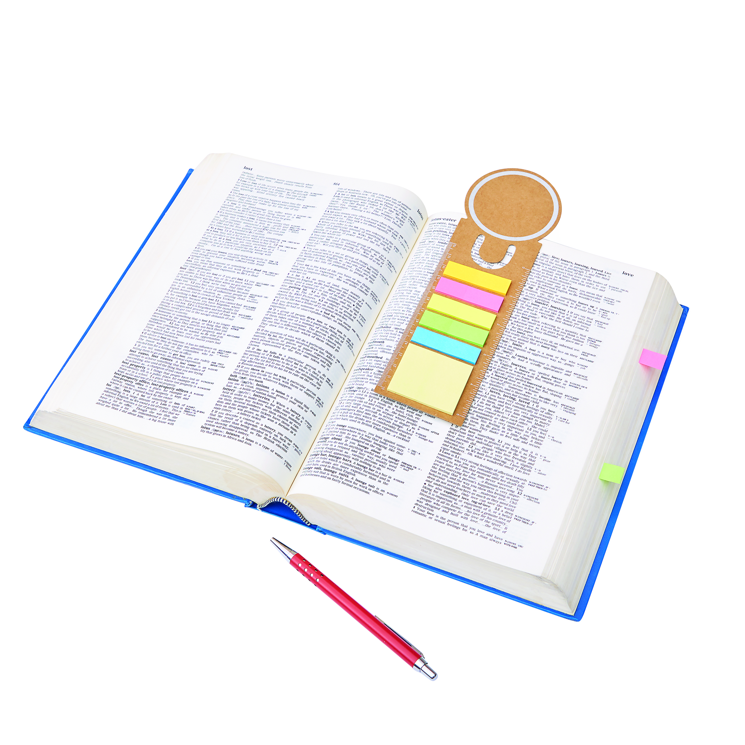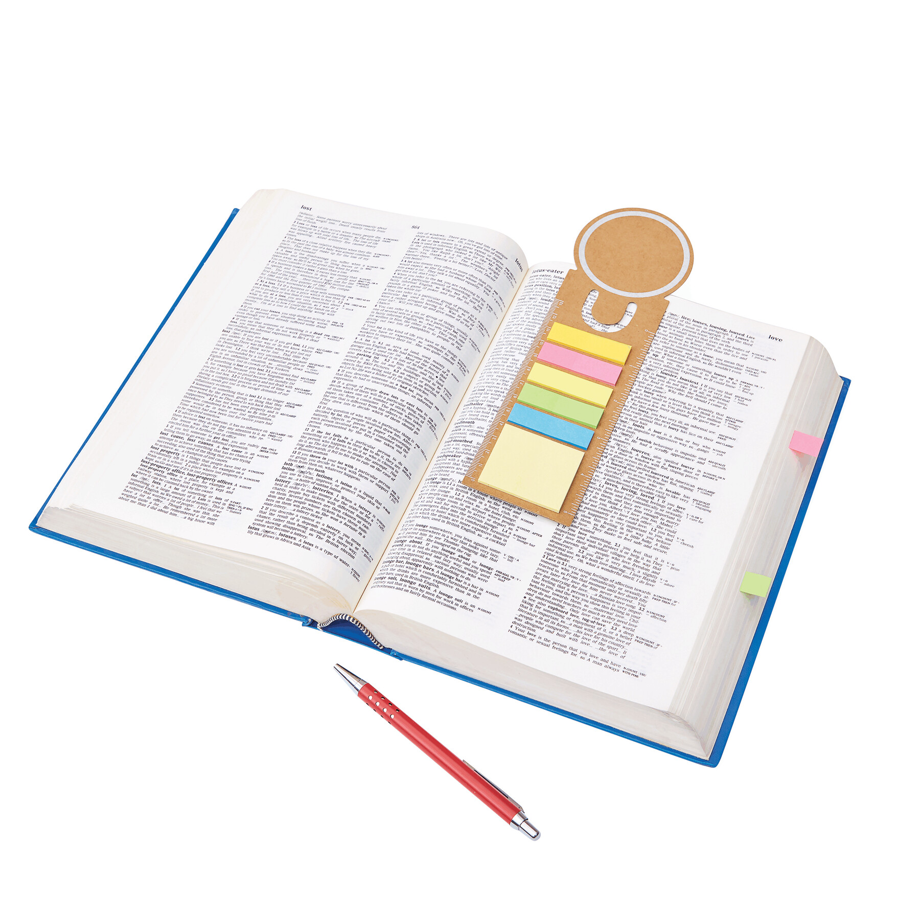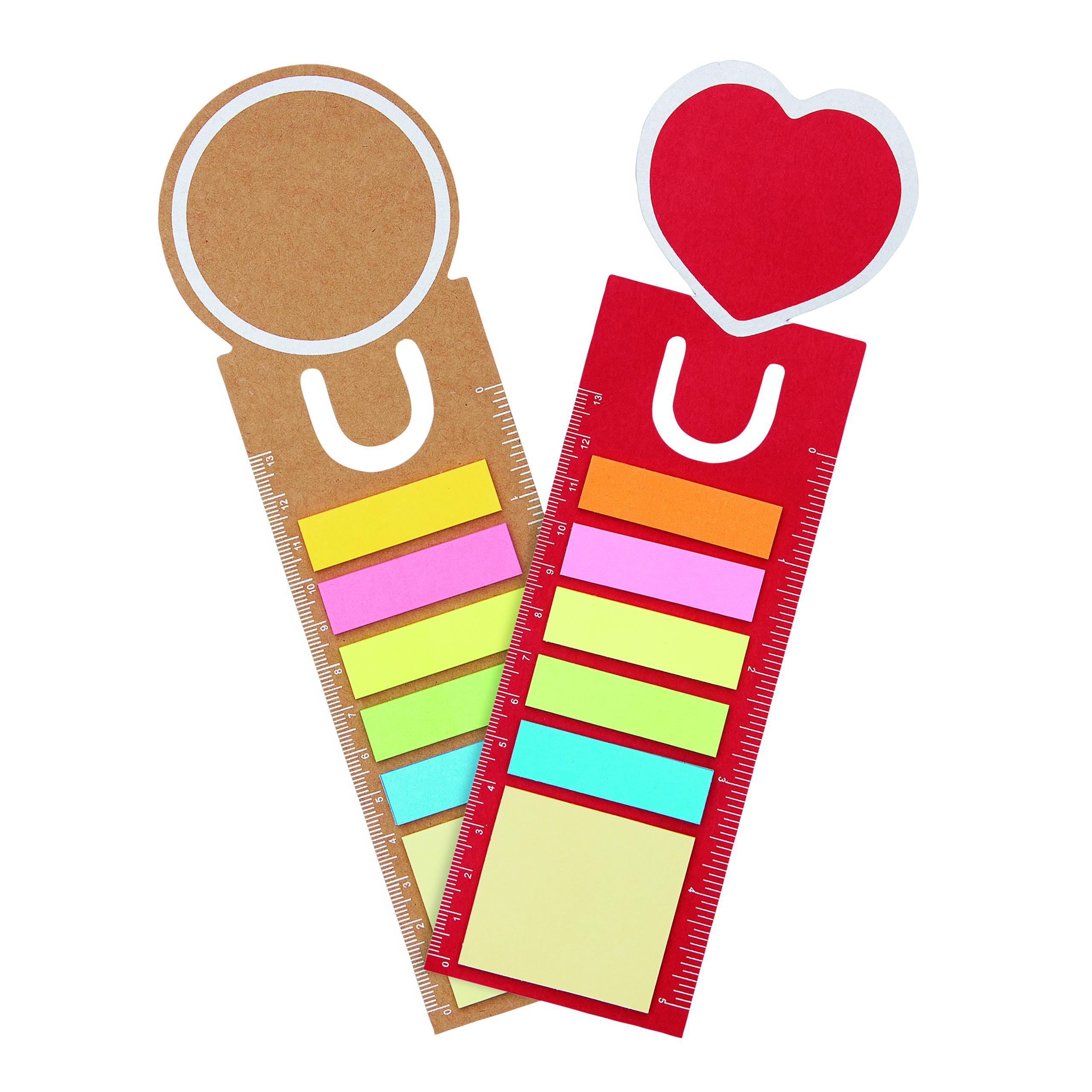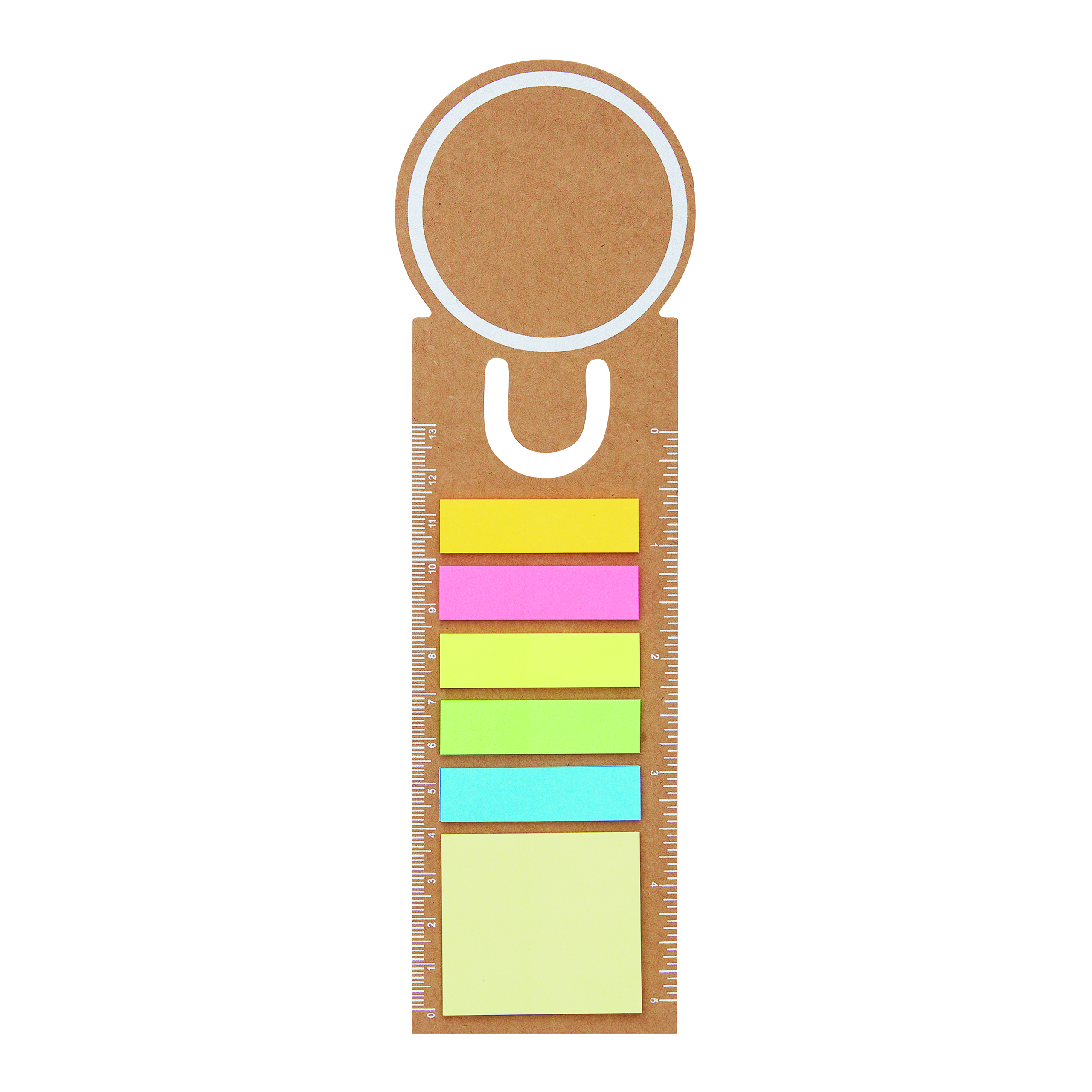 Zakładka CIRCULAR z samoprzylepnymi karteczkami w sześciu kolorach, z linijka z boku, nadająca się do recyklingu.