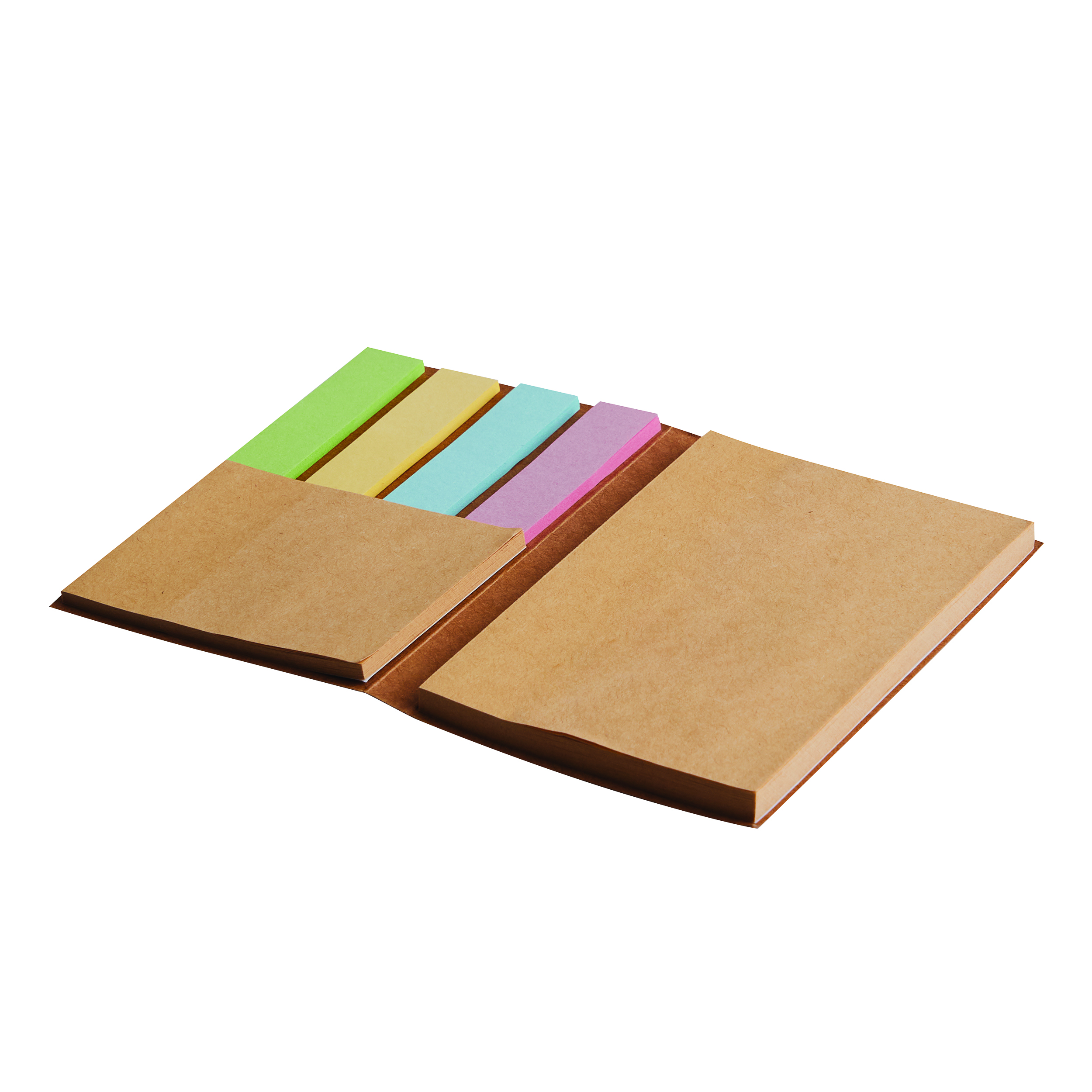 Notes ADHERE. W zestawie znajdują się 2 notesy samoprzylepne (50 dużych i 25 małych karteczek) oraz 4 różnokolorowe samoprzylepne znaczniki stron. Notes opakowany jest w ekologiczny papier.