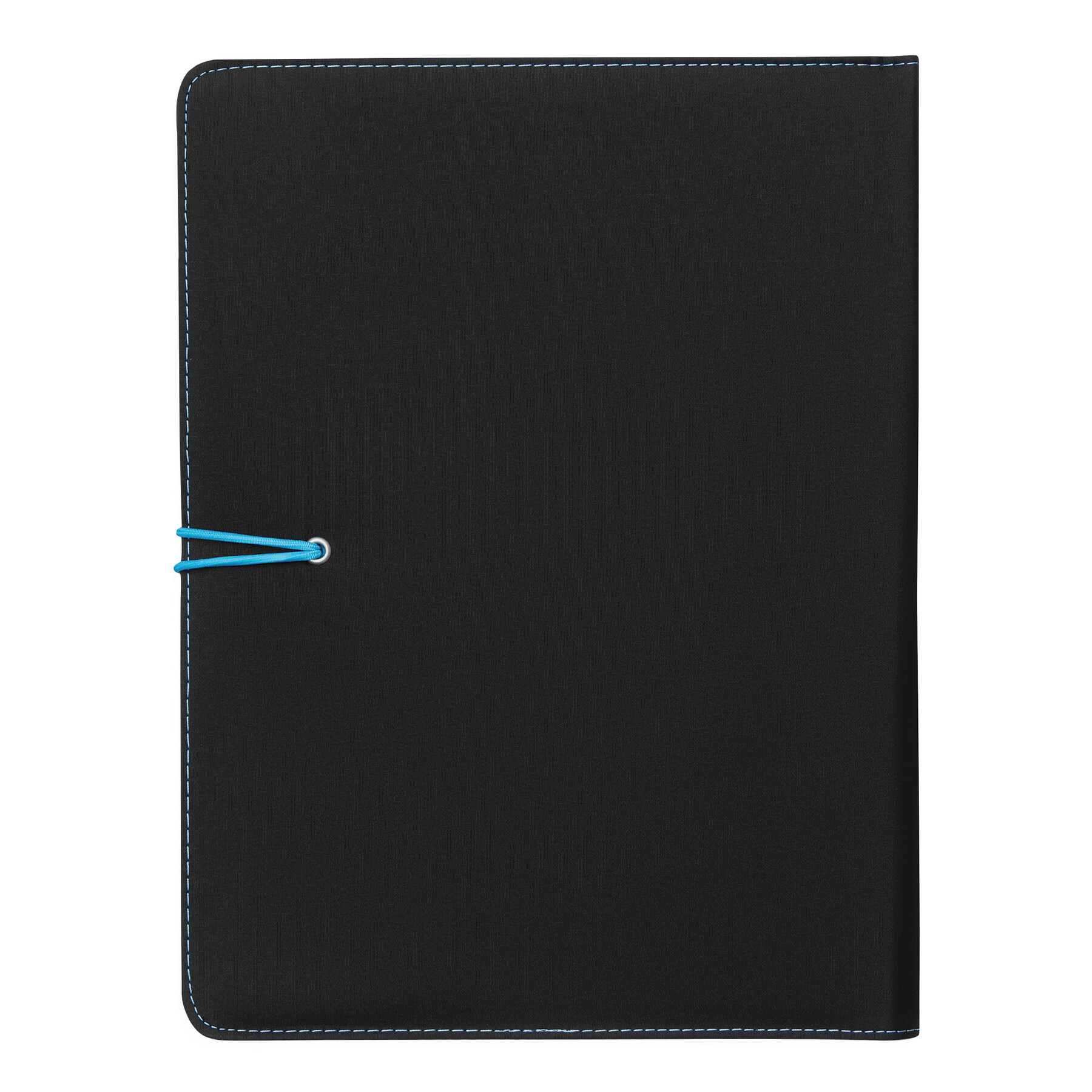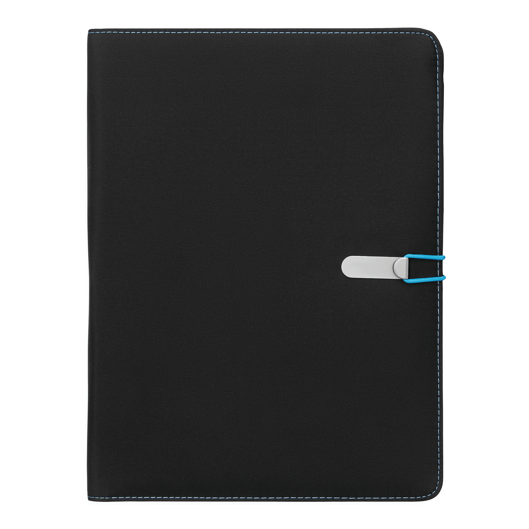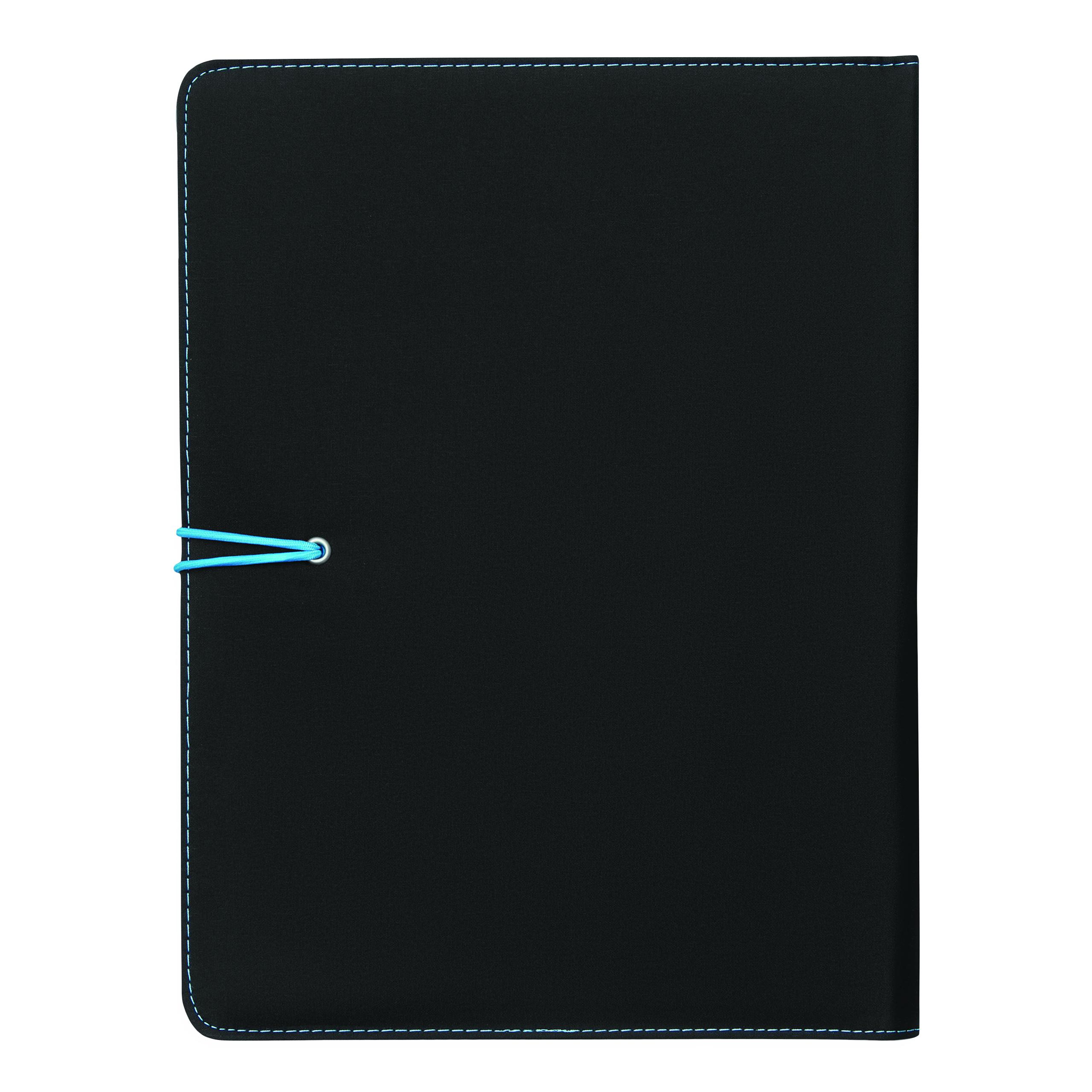 Portfolio SESSION w formacie A4, zawiera notes, pętelkę na przybory do pisania, różne wsuwane kieszenie, metalowy haczyk z kolorową gumką do zamknięcia.