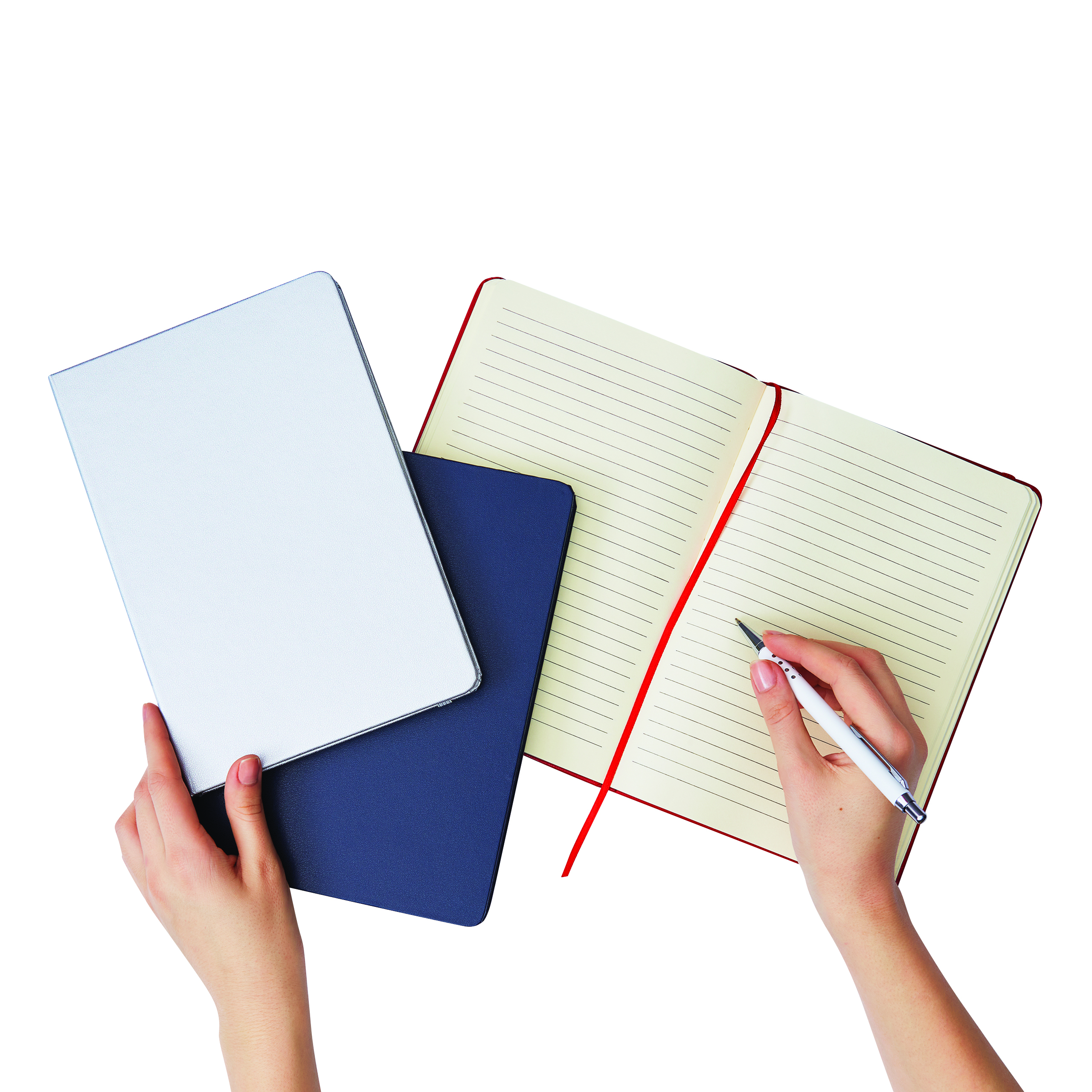 Notes ATTENDANT w formacie A5 z zaokrąglonymi rogami, zamykany gumką, z wszytymi zakładkami i dodatkową kieszenią z tyłu na notatki, 80 kartek w linie, gramatura ok. 80 g/m².