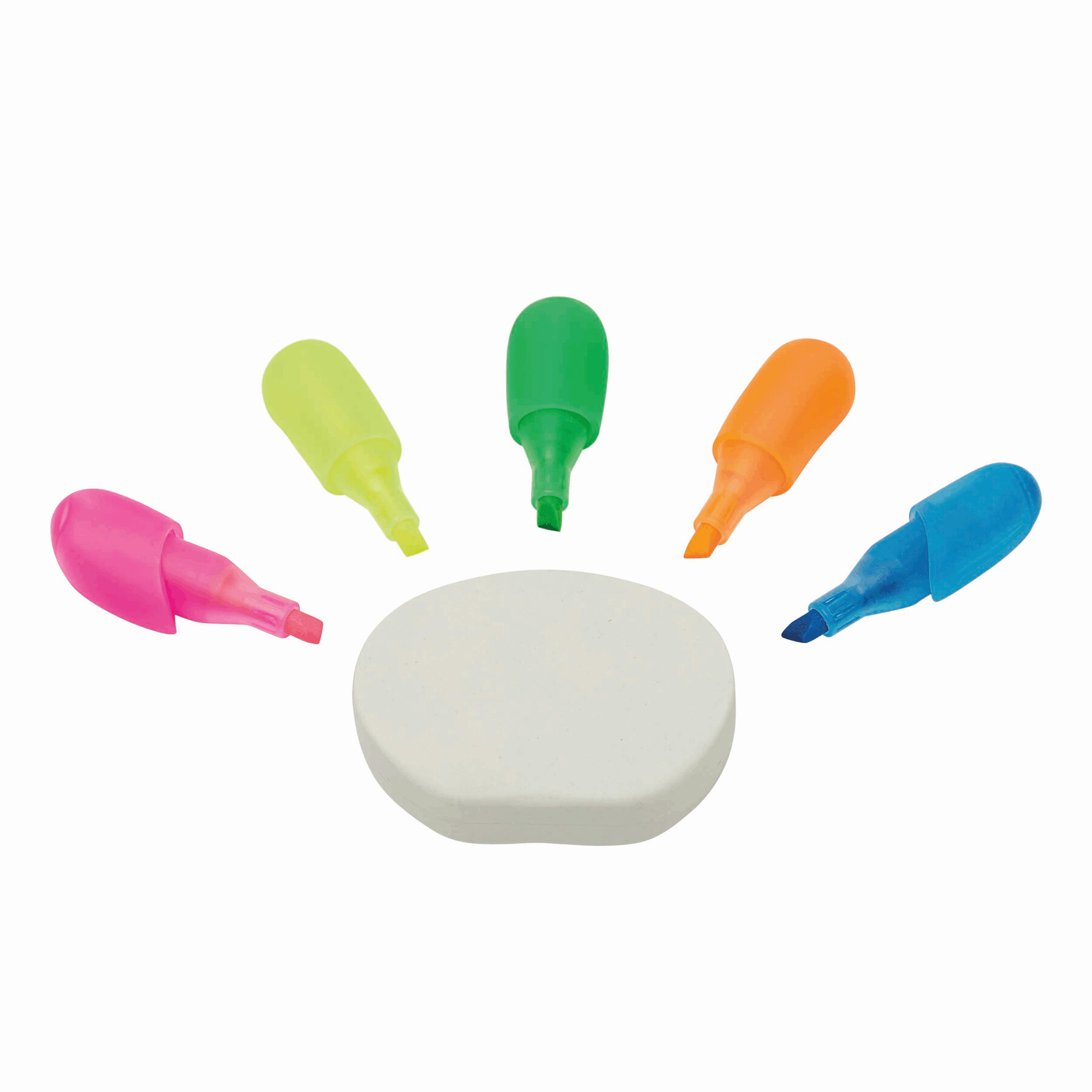 Zakreślacz HANDS UP: w 5 kolorach (różowy, żółty, zielony, pomarańczowy, niebieski), wykonany w 30% z kartonów po mleku pochodzących z recyklingu.