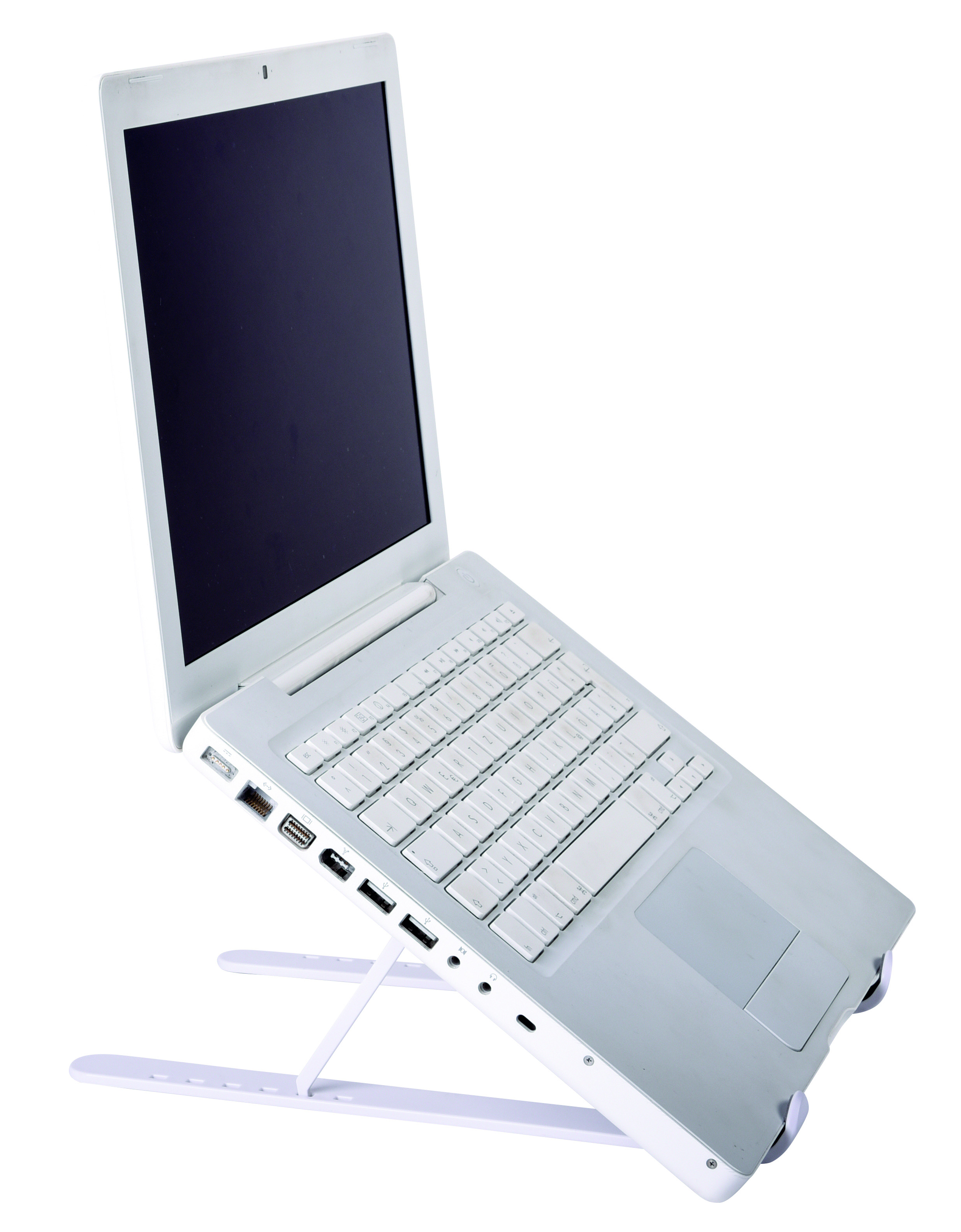 Stojak na laptop lub tablet TILT. Lekka, składana, antypoślizgowa podstawka z regulacją w zakresie 6 różnych kątów nachylenia. Otwarta konstrukcja zapewnia optymalną cyrkulację powietrza i rozpraszanie ciepła.