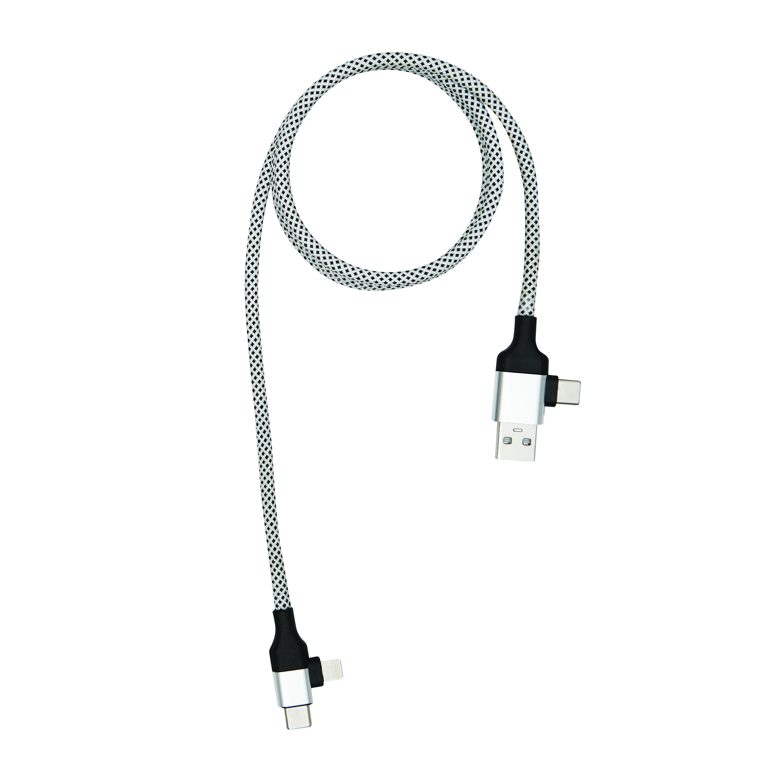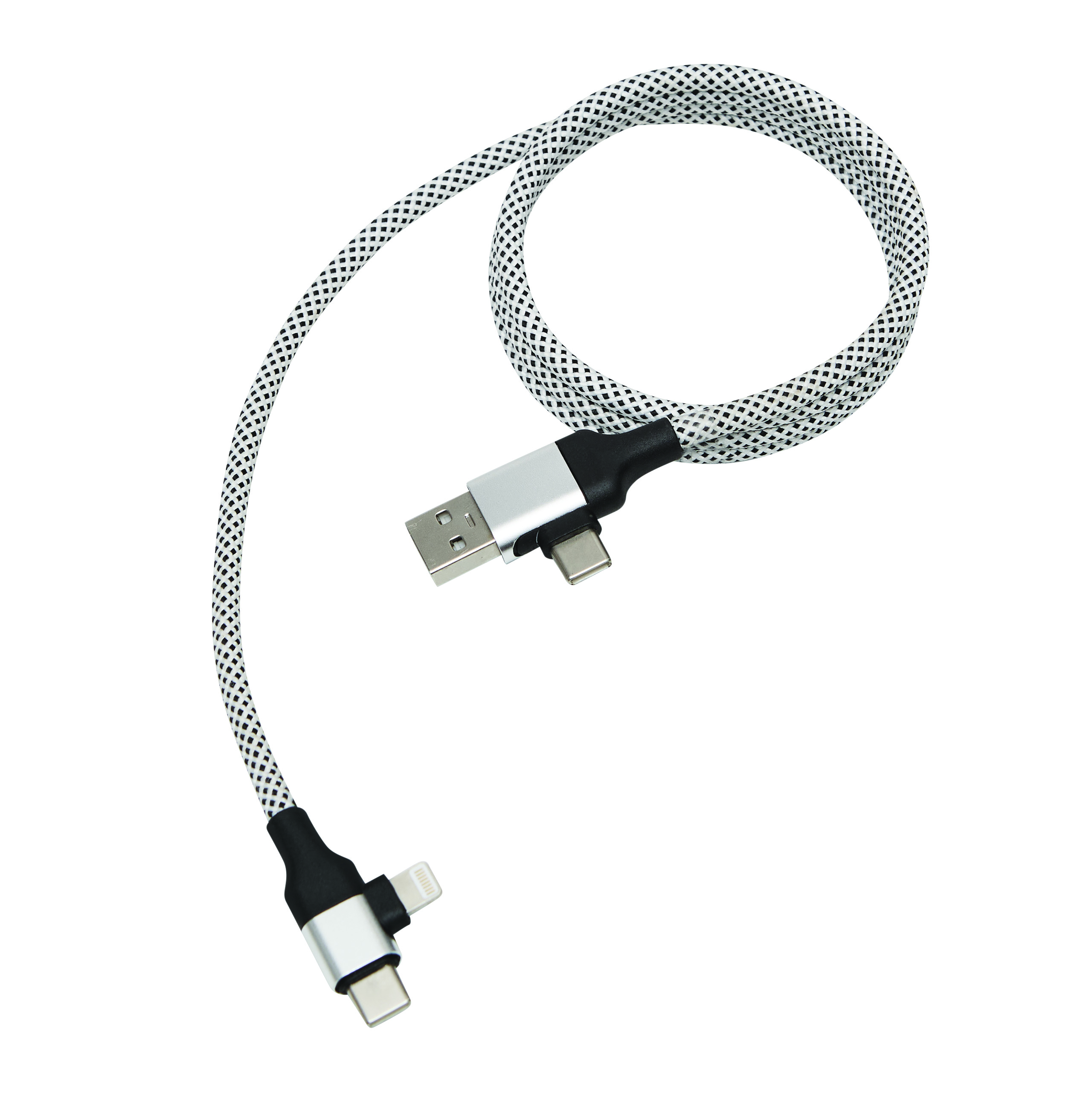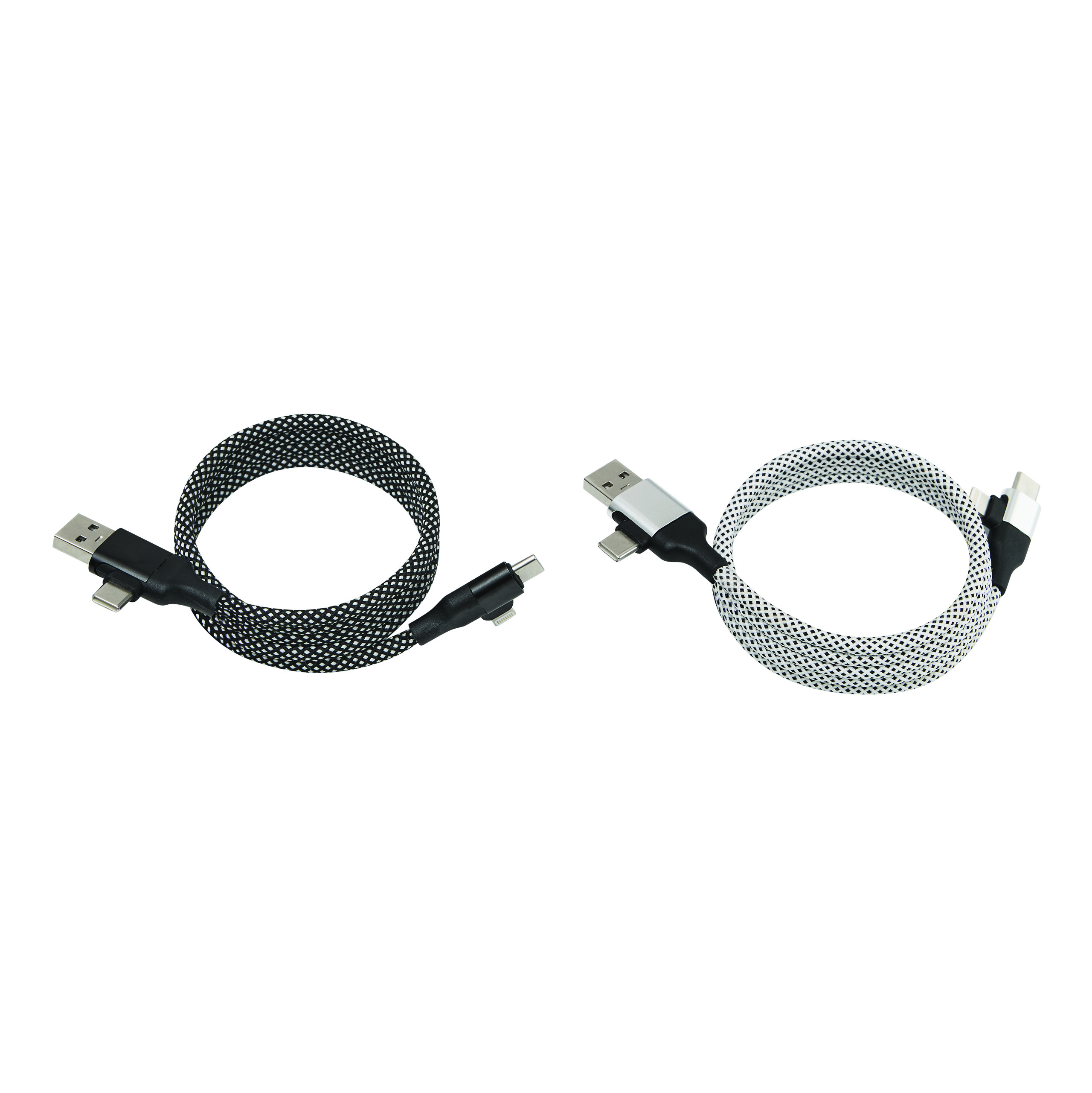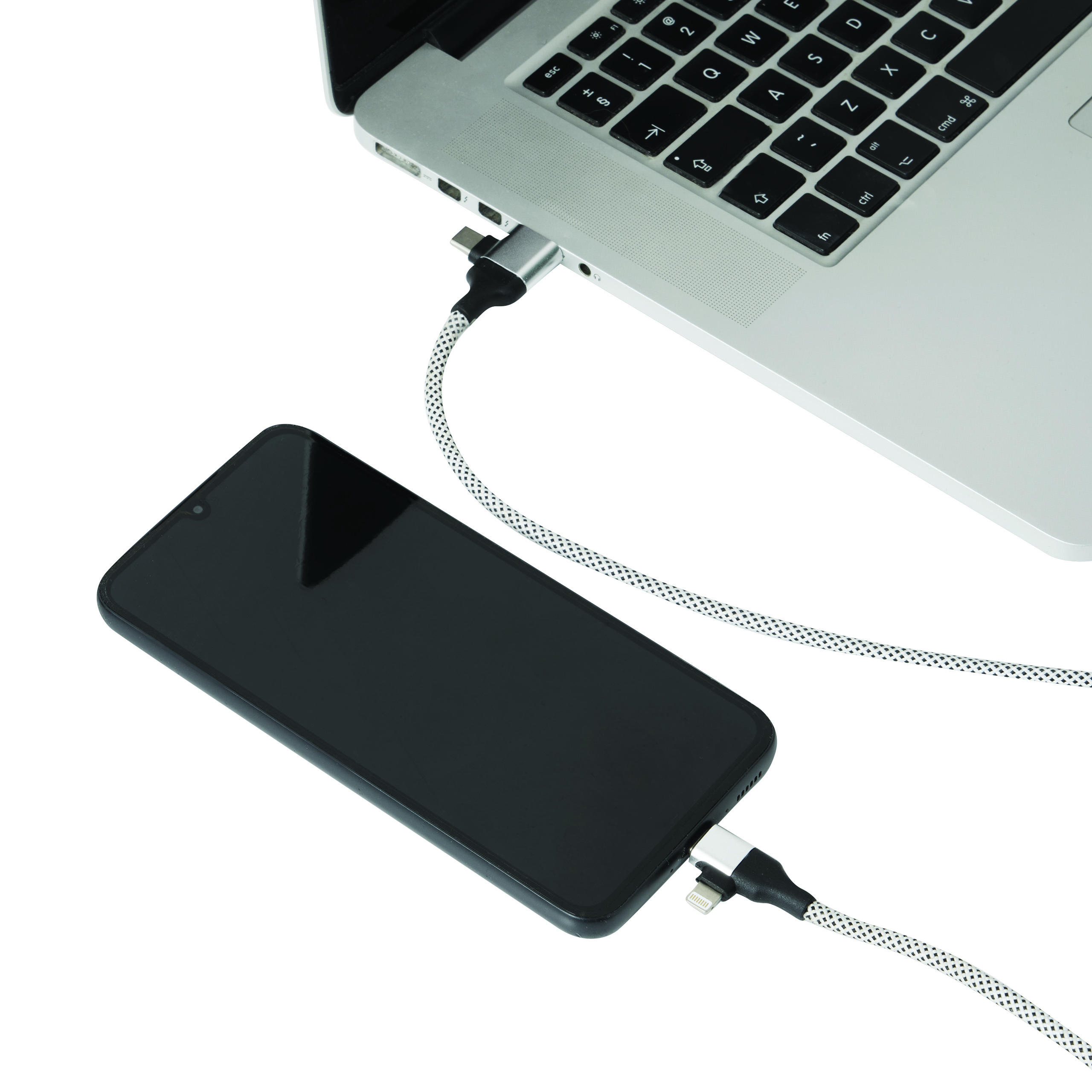 Kabel do ładowania i przesyłania danych SUPERMAG. Służy do ładowania smartfonów, urządzeń zasilanych przez USB i laptopów (moc wyjściowa 60 W), a także do przesyłania danych. Długość kabla to ok. 100 cm. Posiada 2 złącza ładujące (wtyczka combo USB-C/Lightning®, wtyczka combo USB-A/USB-C) oraz kabel magnetyczny, który można łatwo i schludnie zwinąć. Zapakowany jest w pudełko.