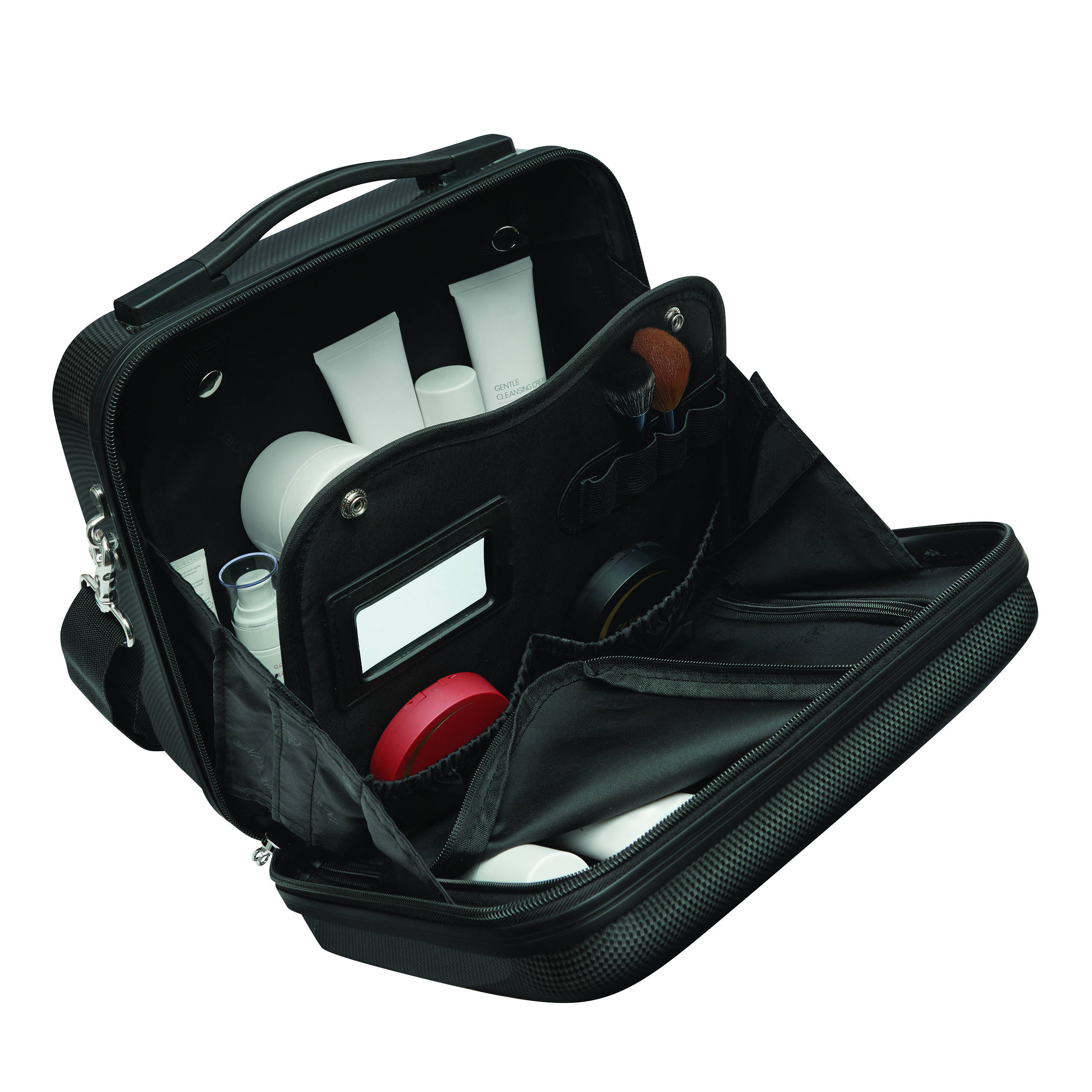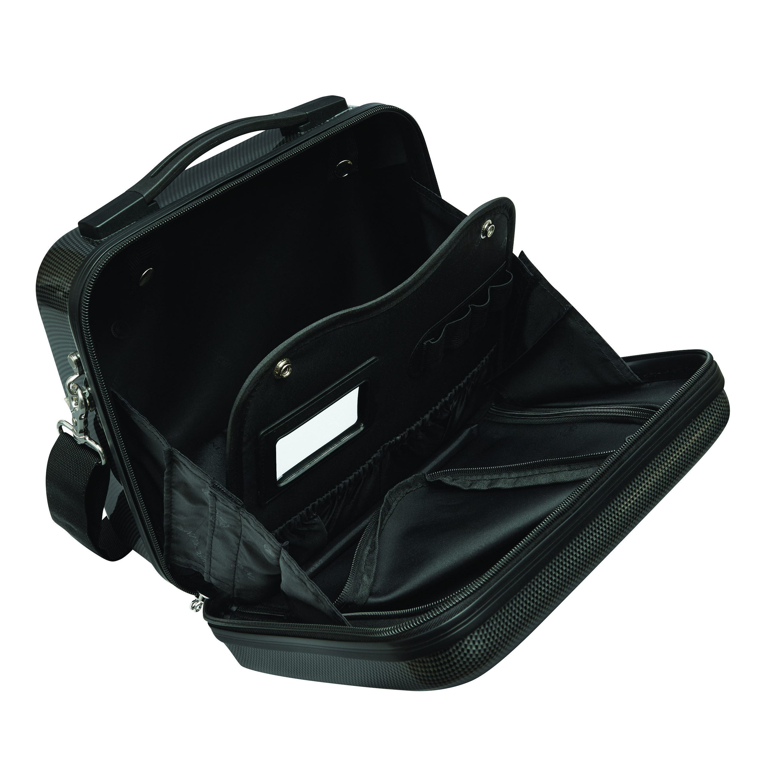 Kosmetyczka LONDON 2.0 to ekskluzywny design i praktyczne wyposażenie. Pakowana obustronnie, z elastyczną przegrodą w komorze głównej. Z lusterkiem, elastycznymi pętelkami i kieszeniami z tasiemkami. Odpinana kieszeń wewnętrzna z zamkiem błyskawicznym, odpinany i regulowany pasek na ramię. Możliwość przymocowania do uchwytu walizki. Zamek szyfrowy.