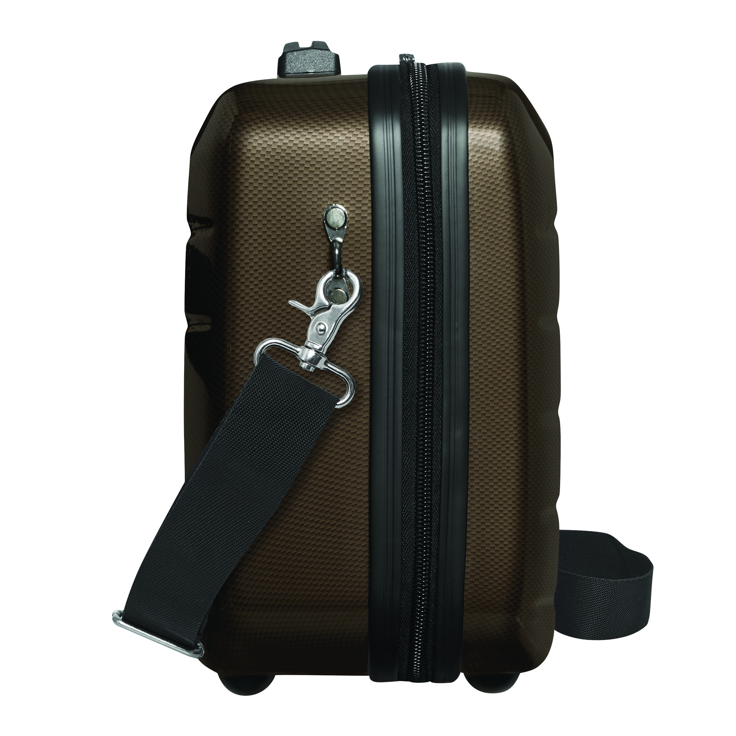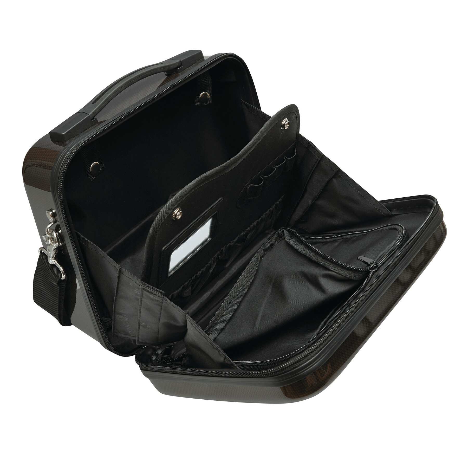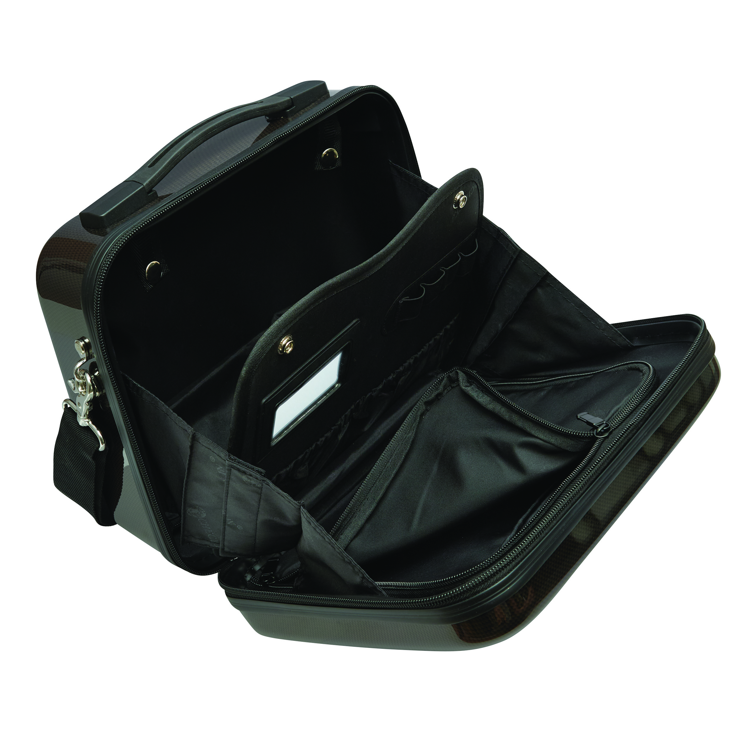 Kosmetyczka LONDON 2.0 to ekskluzywny design i praktyczne wyposażenie. Pakowana obustronnie, z elastyczną przegrodą w komorze głównej. Z lusterkiem, elastycznymi pętelkami i kieszeniami z tasiemkami. Odpinana kieszeń wewnętrzna z zamkiem błyskawicznym, odpinany i regulowany pasek na ramię. Możliwość przymocowania do uchwytu walizki. Zamek szyfrowy.