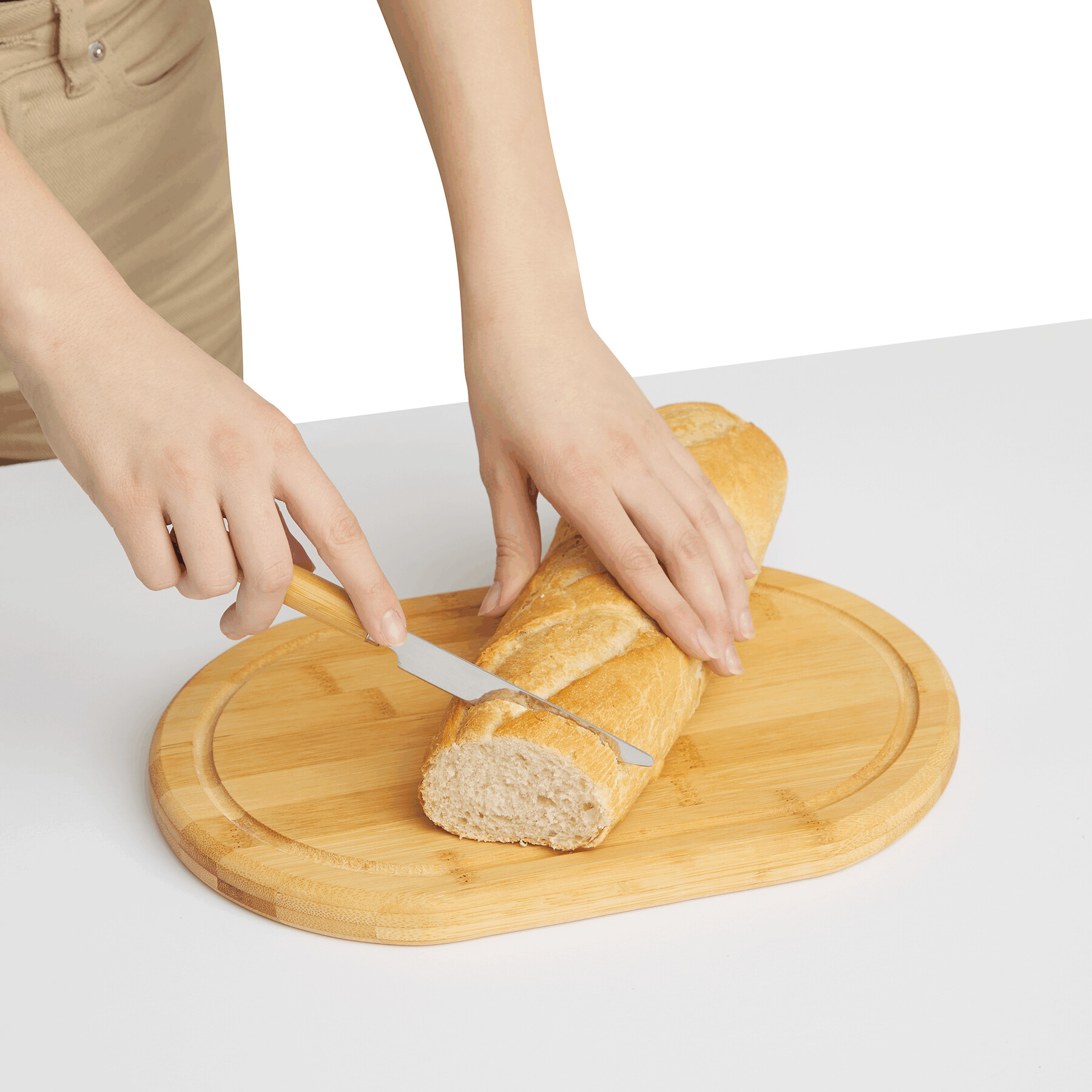 Deska do krojenia BAMBOO-ROUND z praktycznym wyżłobieniem krawędzi. Wykonana z drewna bambusowego.