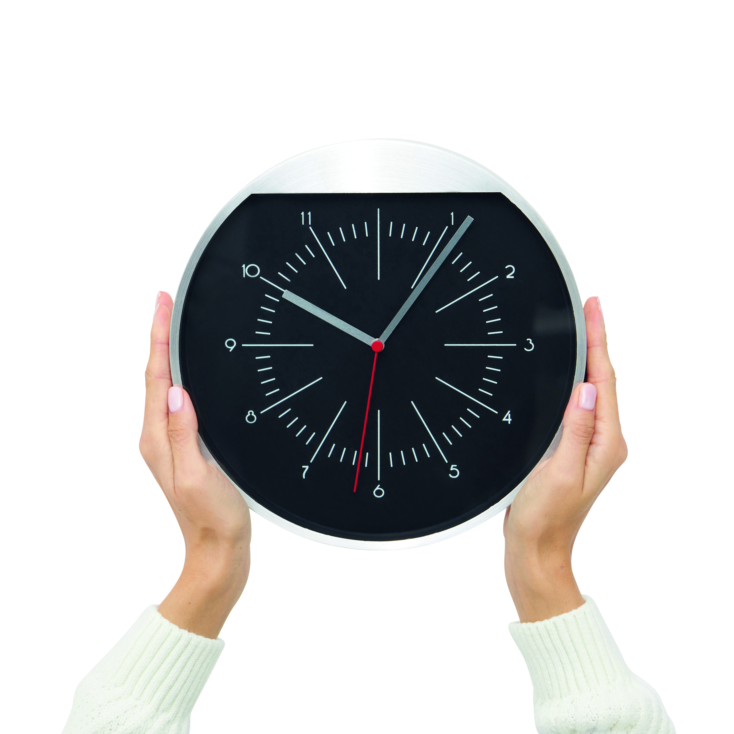 Zegar ścienny ROUNDABOUT. Aluminiowa rama i tarcza z szeroką krawędzią na Twoje logo.