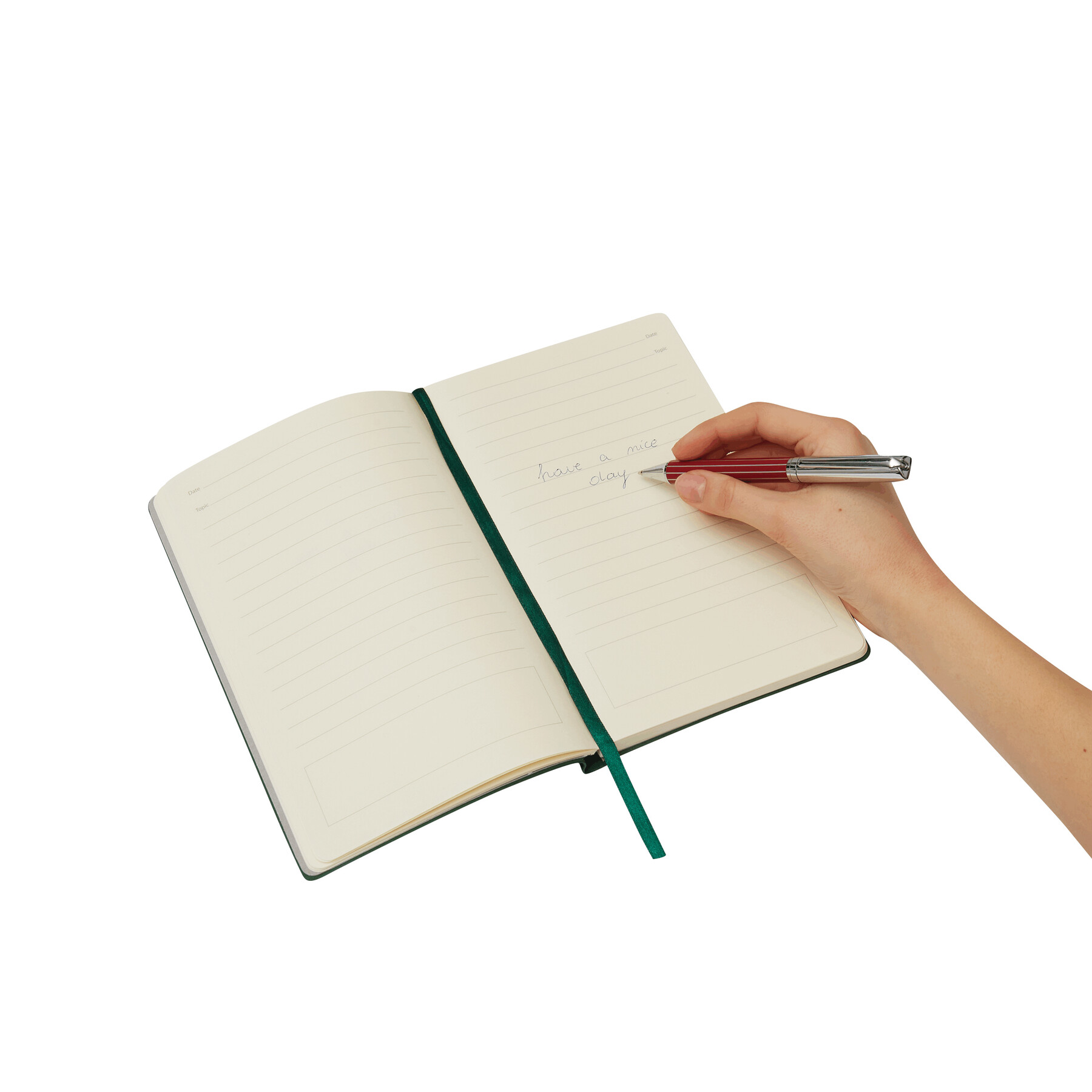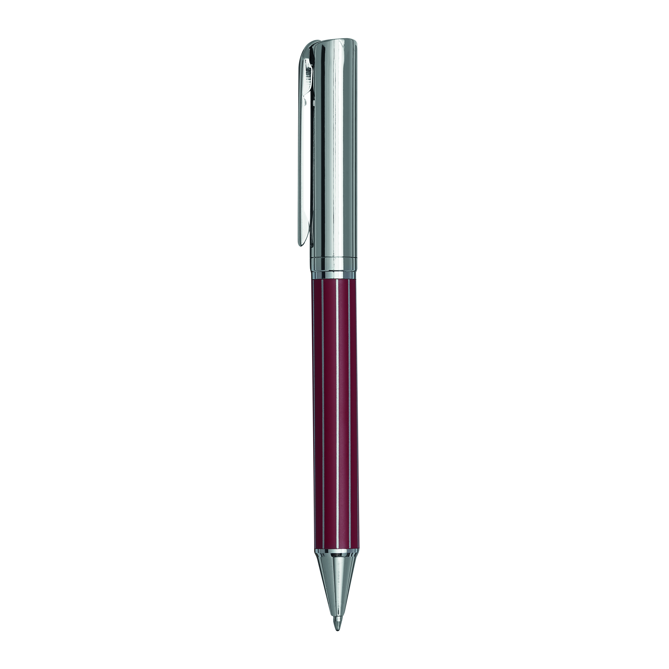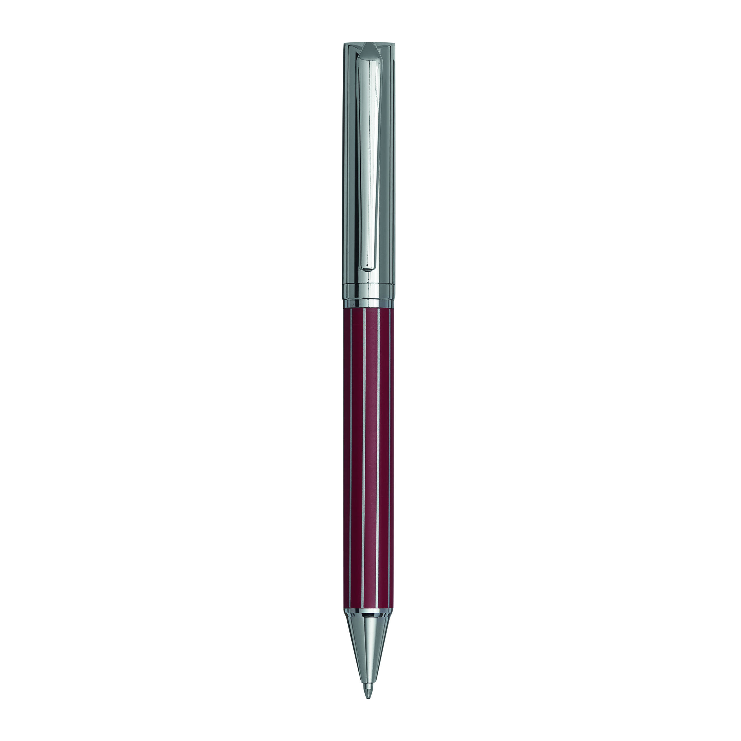Metalowy długopis AD0ORNO z mechanizmem obrotowym. Prążkowy wzór, niebieski tusz. W pudełku w prążki.