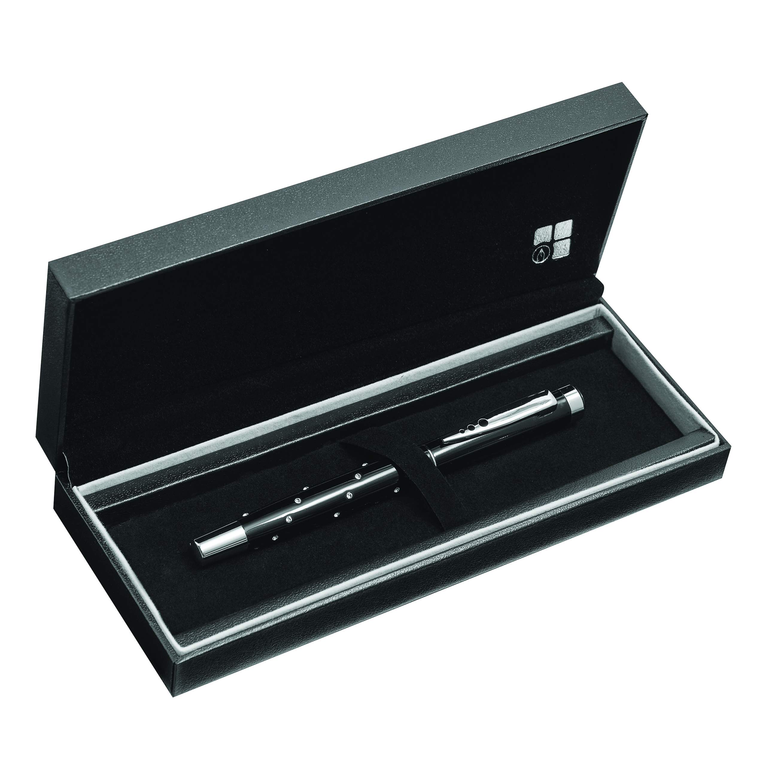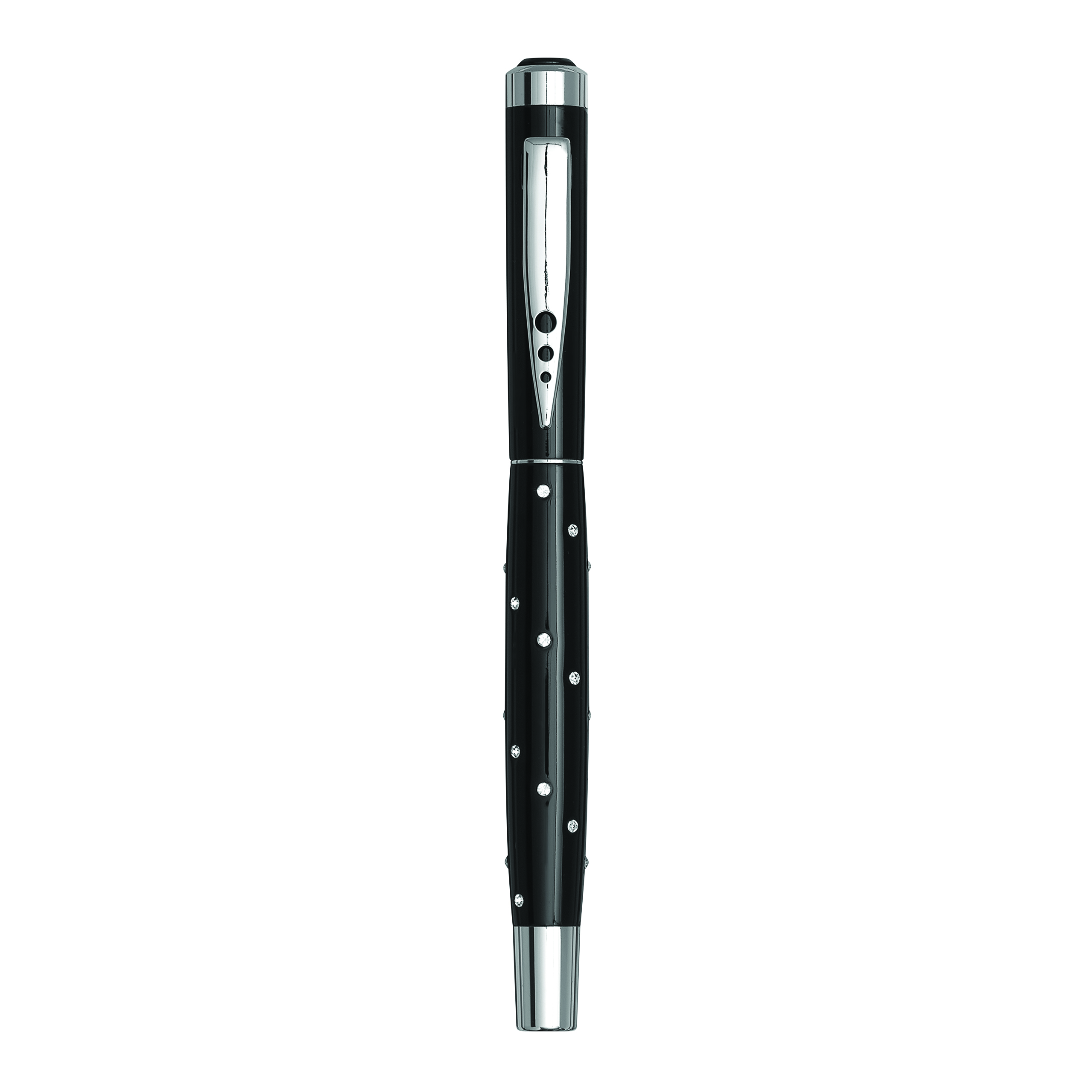 Metalowe pióro kulkowe RIGA z 24 kryształami z serii CRYSTALLIZED™ Swarovski Elements. Lśniąca czarna powierzchnia korpusu. W pudełku.