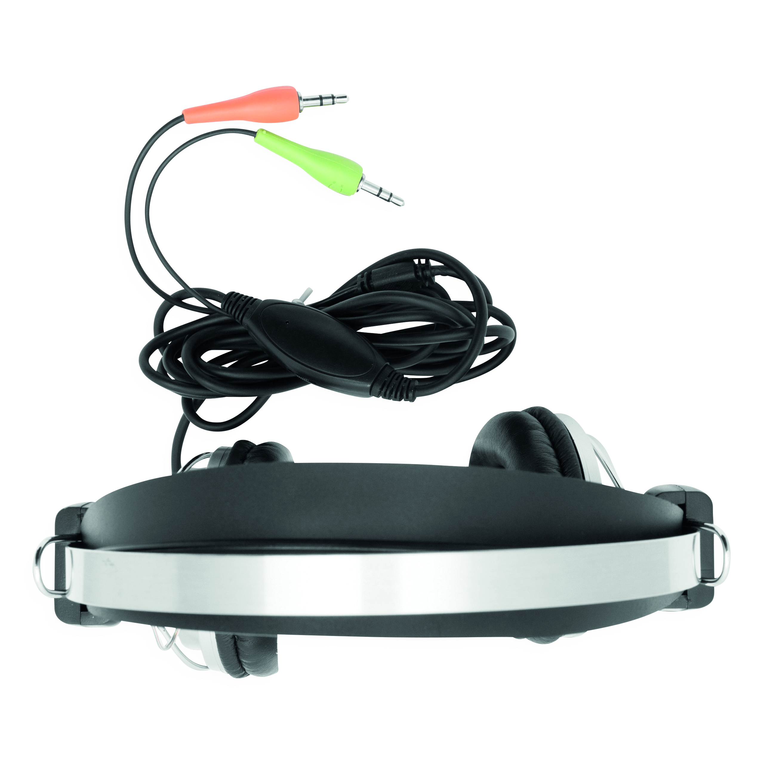 Zestaw słuchawkowy VIBORG. Miękkie wyściełane muszle, wbudowany mikrofon z regulacją głośności, 3,5 mm złącze telefonu, kabel o długość ok. 2,2 m. Zakres częstotliwości 8 - 22.000 Hz, poziom ciśnienia dźwięku 100 dB.