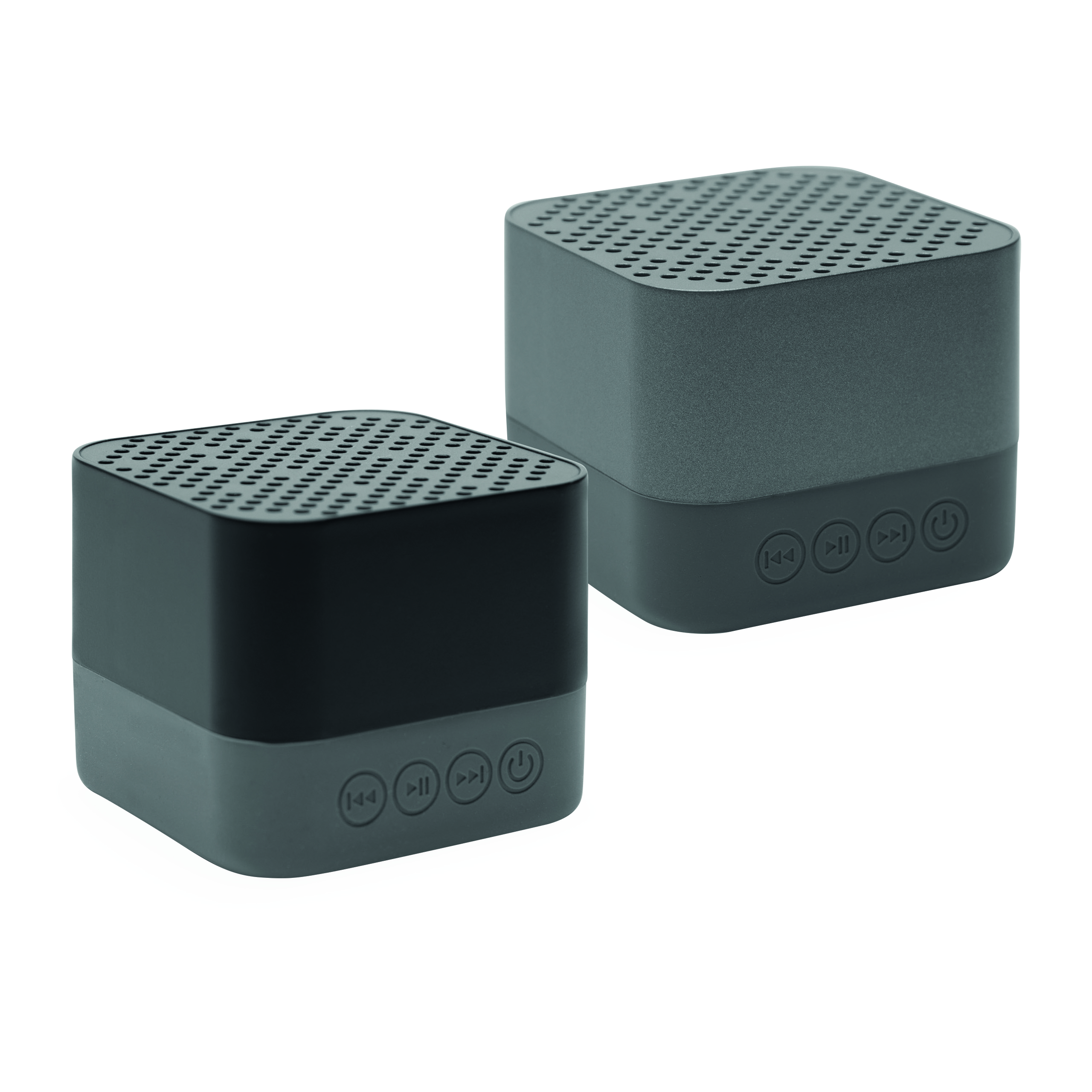 Głośnik bezprzewodowy CUBIC z wyjściem muzycznym 3 W. Do parowania z telefonem komórkowym, odtwarzaczem MP3 lub tabletem. Maksymalny zasięg ok. 10 m. Mocny akumulator o pojemności 400 mAh. Posiada kabel ładujący USB z Micro-USB i złączem line-in (3,5 mm gniazdo audio jack). Czas pracy ok. 2 godz., czas ładowania ok. 1,5 godz. Gniazdo kart Micro-SD, z funkcją AUX-IN, z funkcją radio FM.