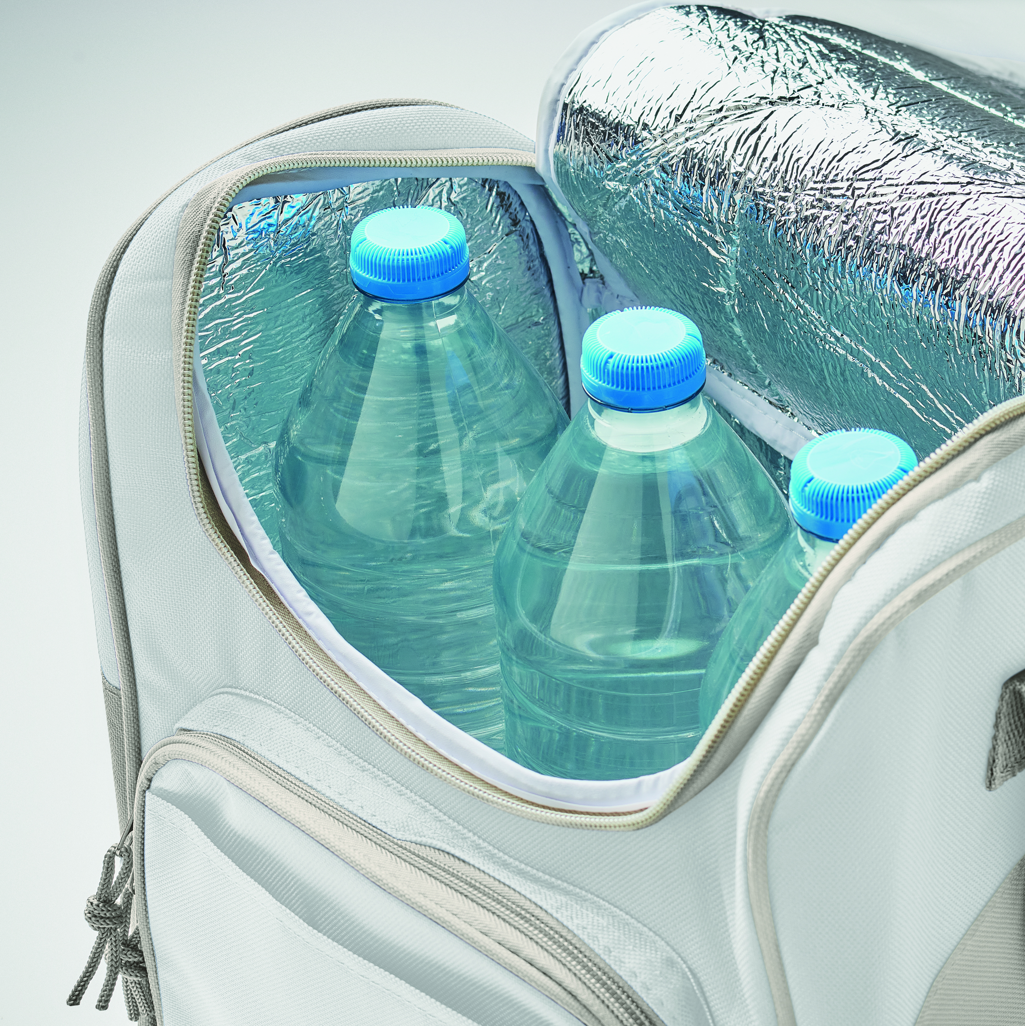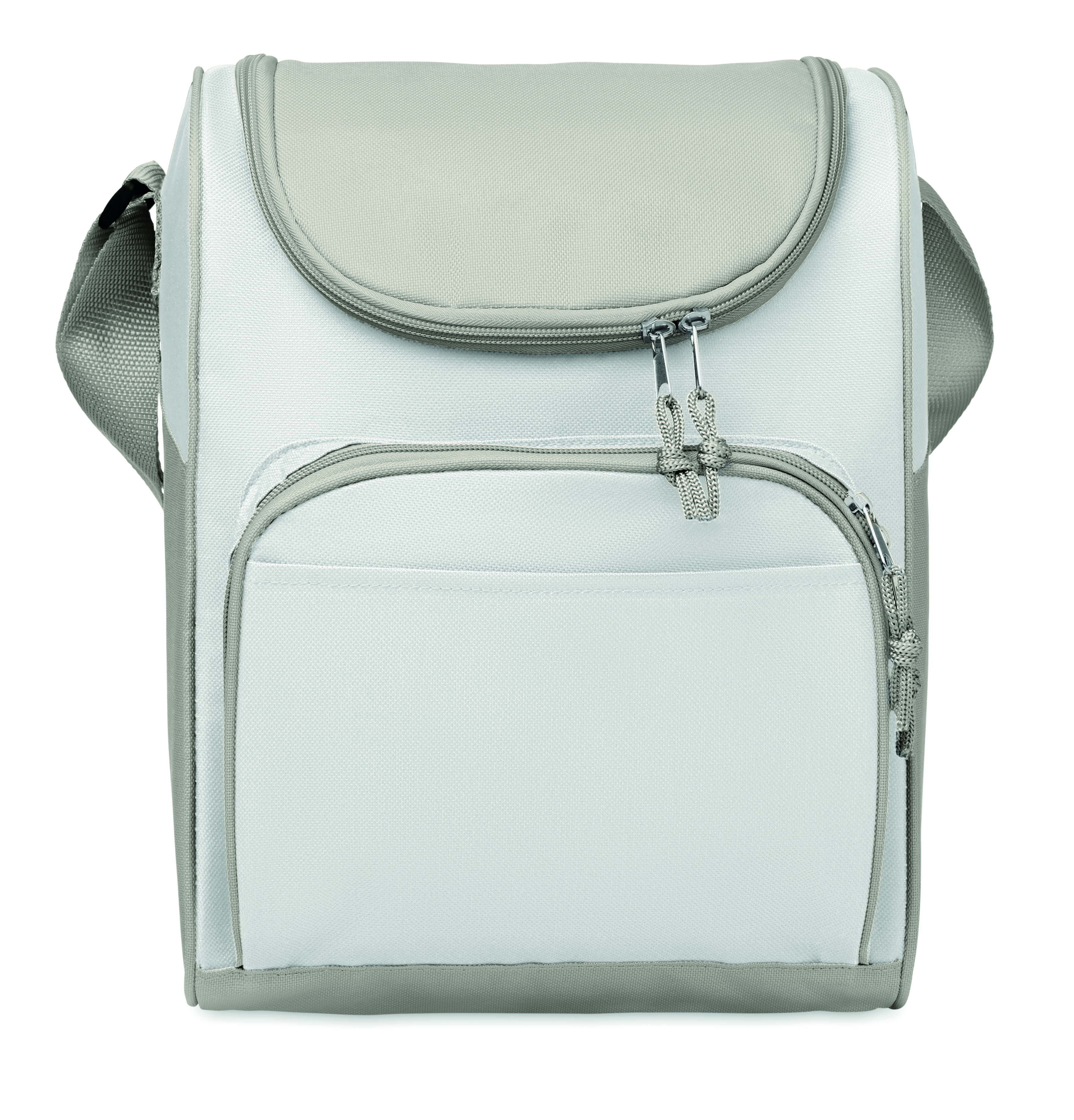 Torba izotermiczna z przednią kieszenią i dwoma suwakami. Materiał izolacyjny: Folia aluminiowa. Pojemność 13L.