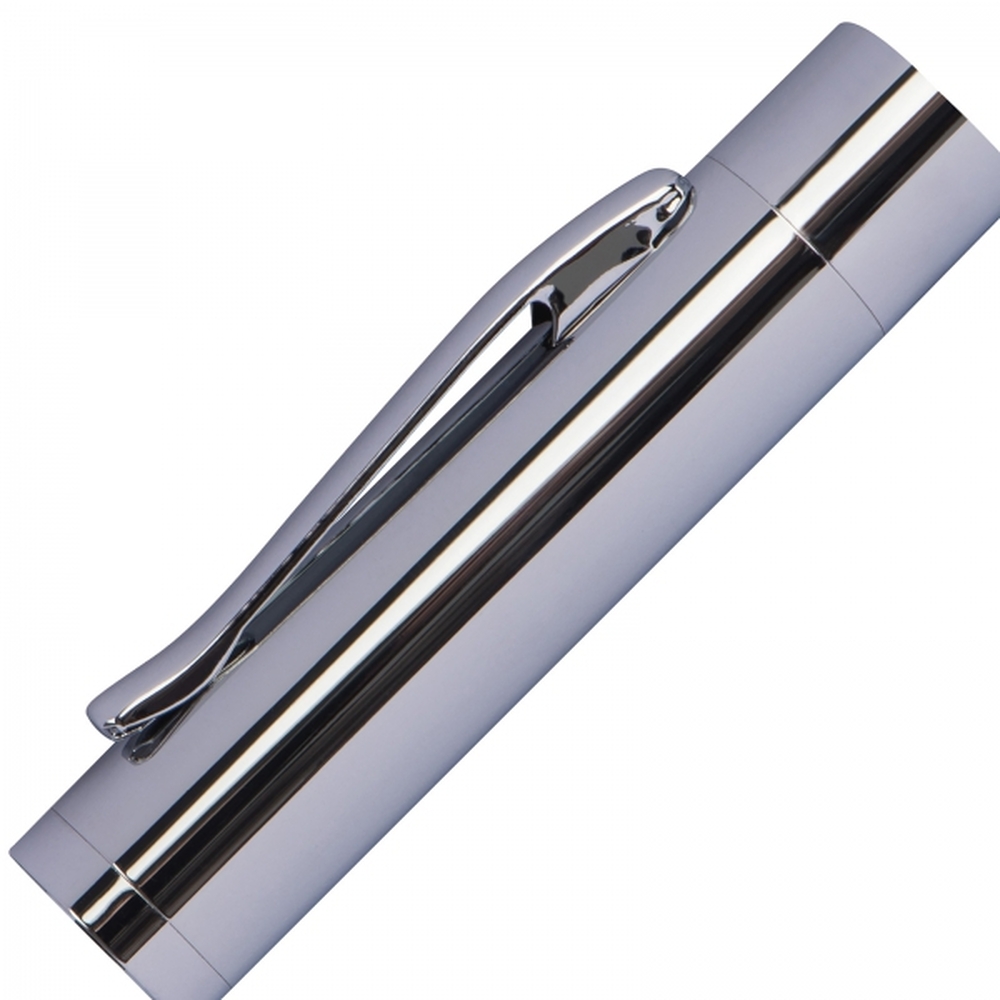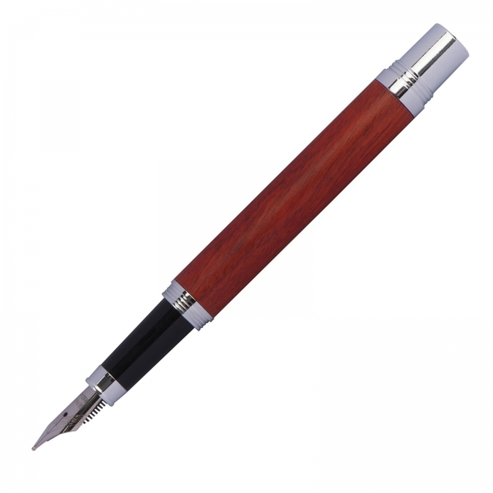 Zestaw piśmienniczy Mark Twain składający się z długopisu z dużym niebieskim wkładem i pióra wiecznego, wykonanego z metalu z drewnianym korpusem. Zestaw zapakowany jest w etui i czarne pudełko.